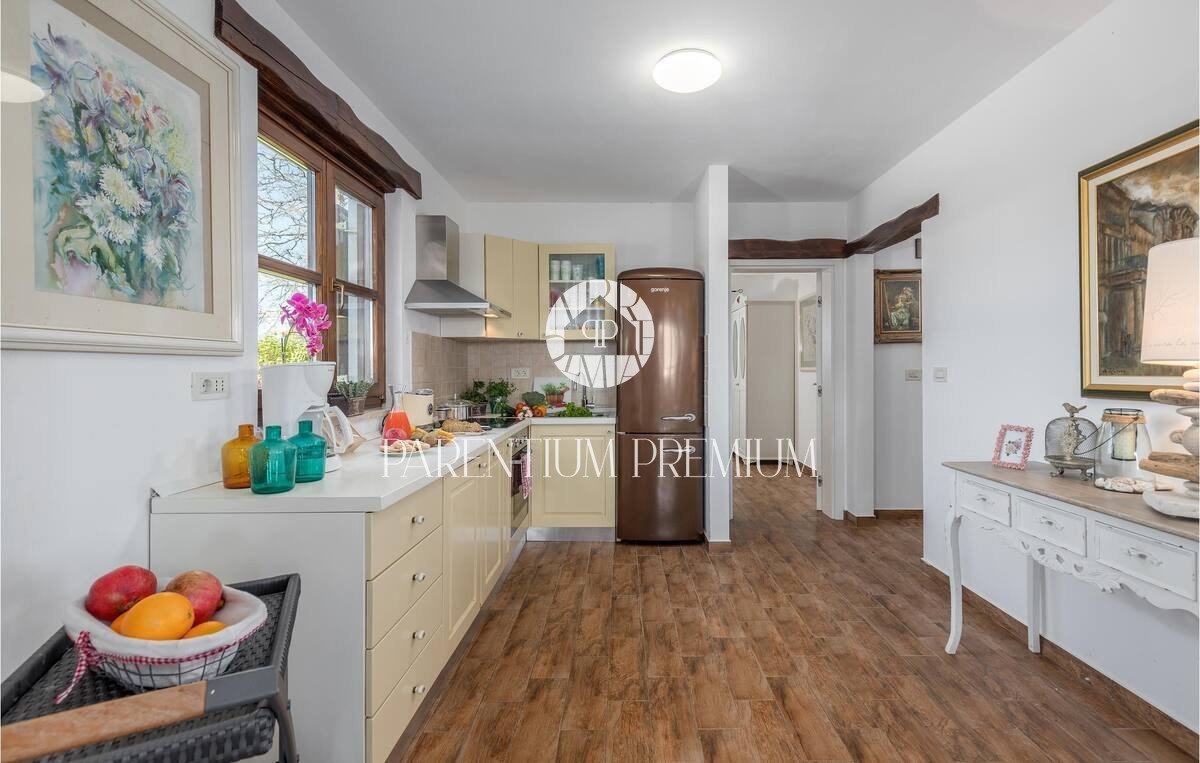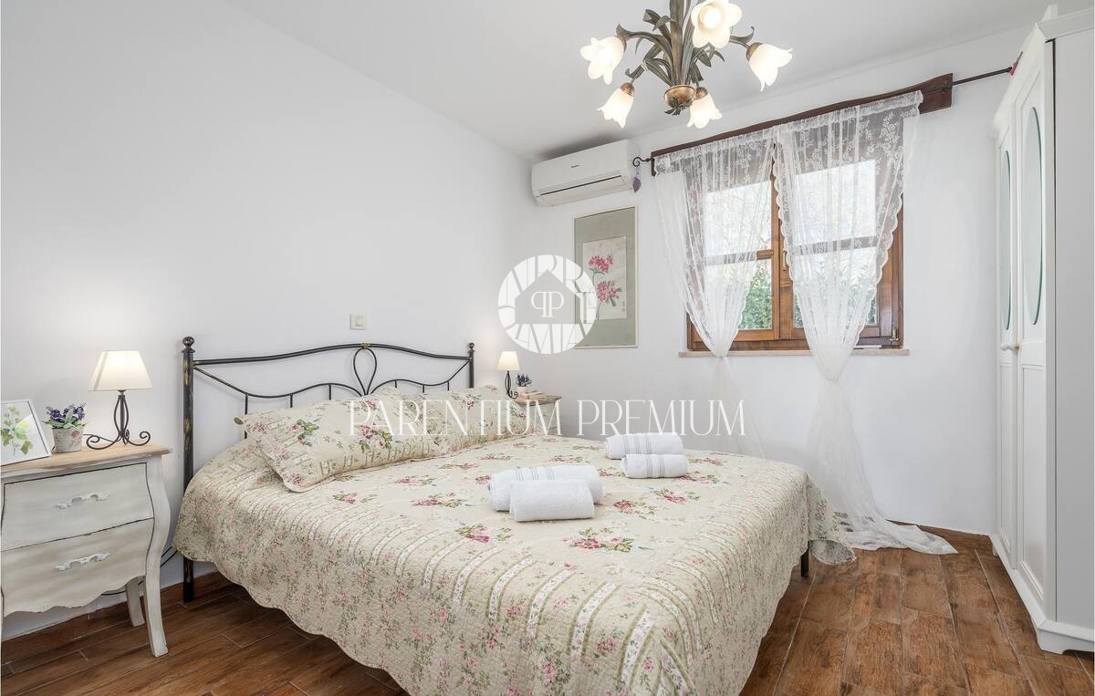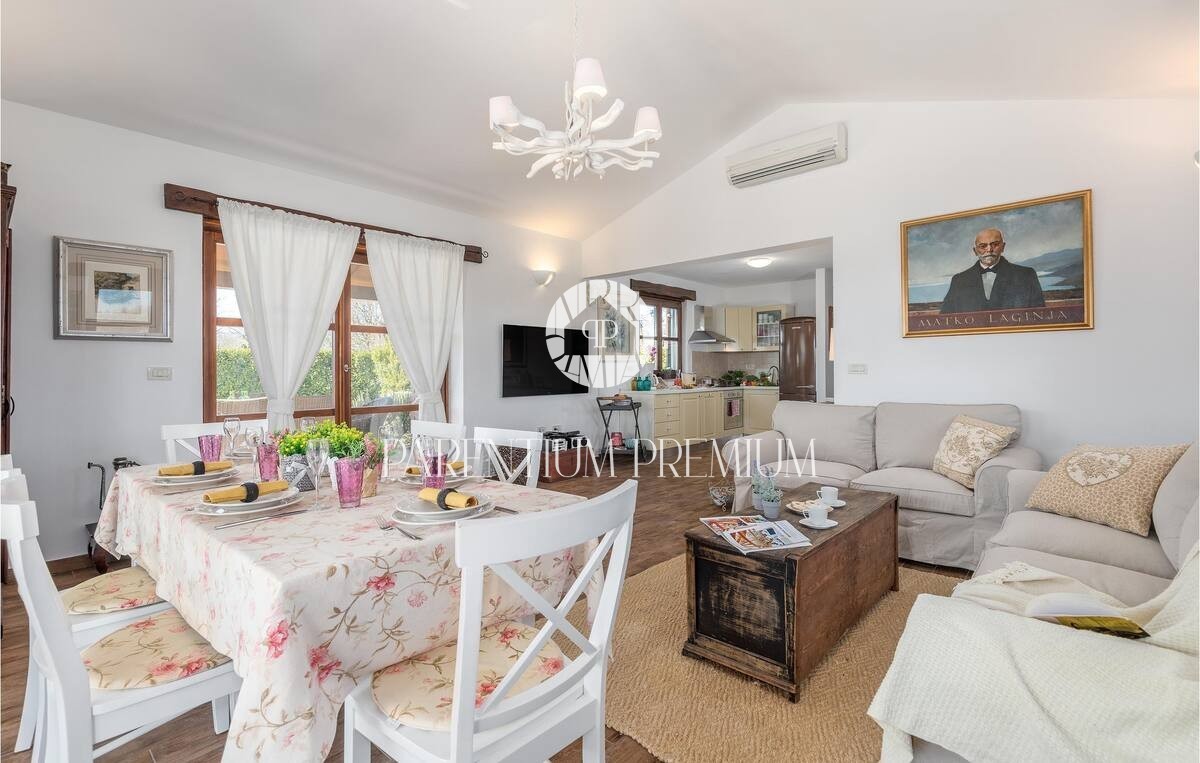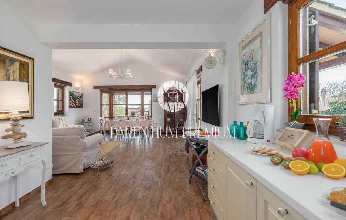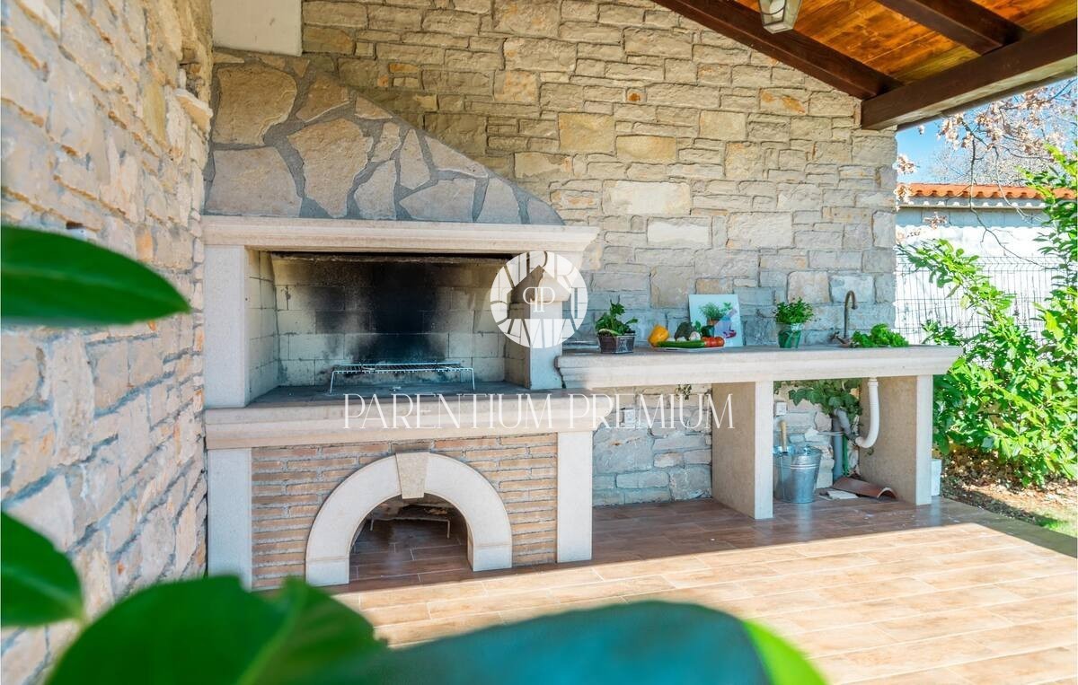 Istra, Poreč okolica Na zemljištu površine 788 m2, smjestila se ova prekrasna kuća površine 144m2. Prostire se na dvije etaže i sastoji se od prizemlja kojeg čini ulazni hodnik, ostava, jedna spavaća soba, gostinjski WC, dnevni boravak, kuhinja i blagova