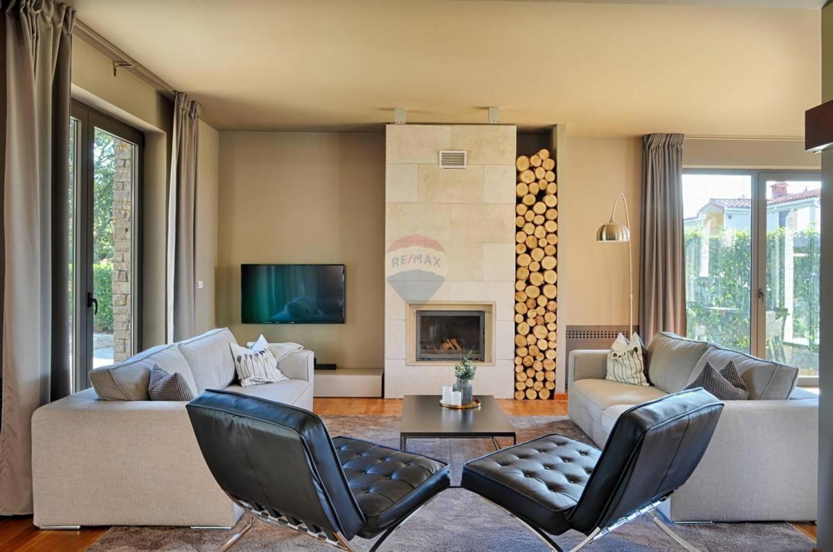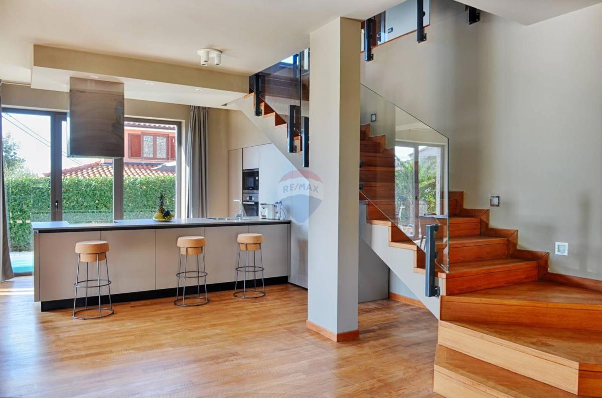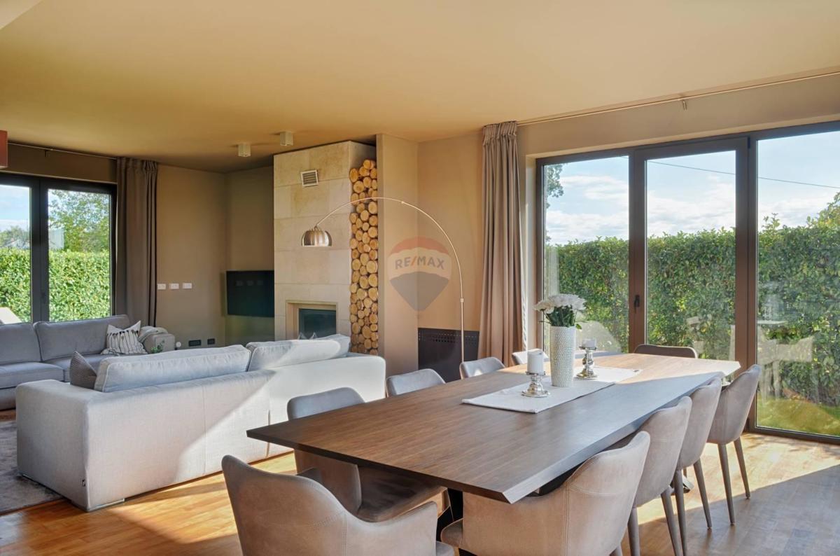 Remax Centar Nekretnina iz svoje ponude izdvaja modernu kuću na odličnoj lokaciji samo 5 minuta vožnje od Poreča i mora. Kuća ukupne kvadrature 375 m2 smještena je na zemljištu veličine 760 m2. U prizemlju su smješteni kuhinja i veliki dnevni boravak u op