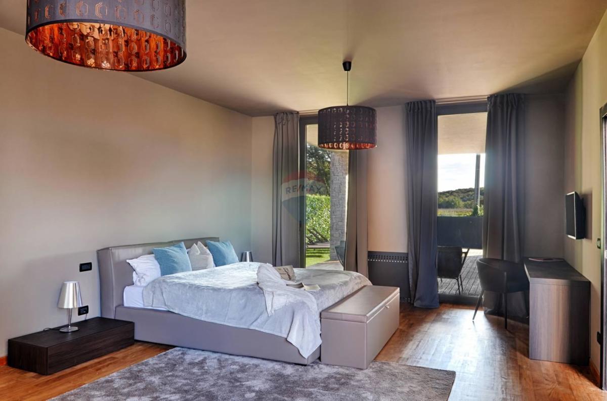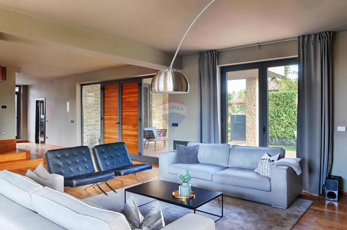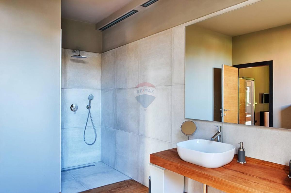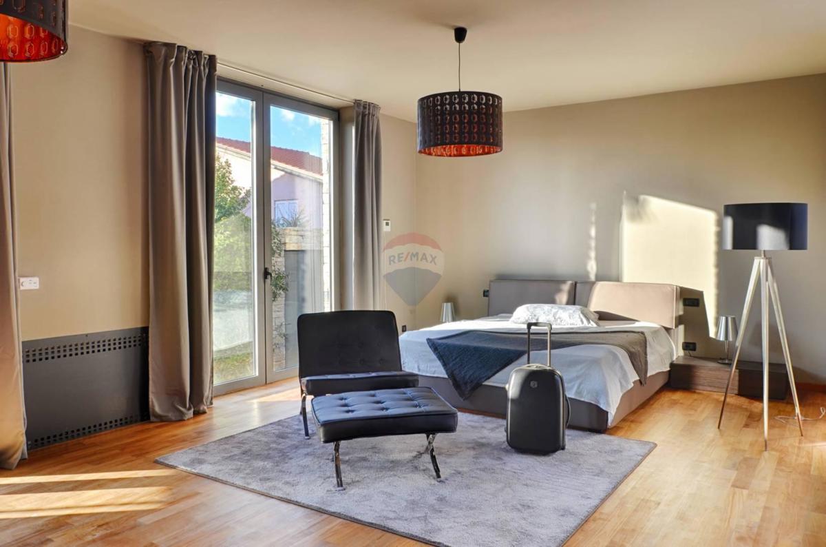 Remax Centar Nekretnina iz svoje ponude izdvaja modernu kuću na odličnoj lokaciji samo 5 minuta vožnje od Poreča i mora. Kuća ukupne kvadrature 375 m2 smještena je na zemljištu veličine 760 m2. U prizemlju su smješteni kuhinja i veliki dnevni boravak u op
