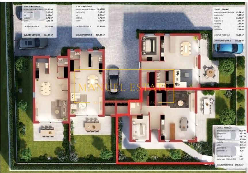 PREDIVNA MODERNA DVOJNA KUĆA 171 M² S KROVNOM TERASOM U POREČU - 2KM OD MORA, ISTRA!