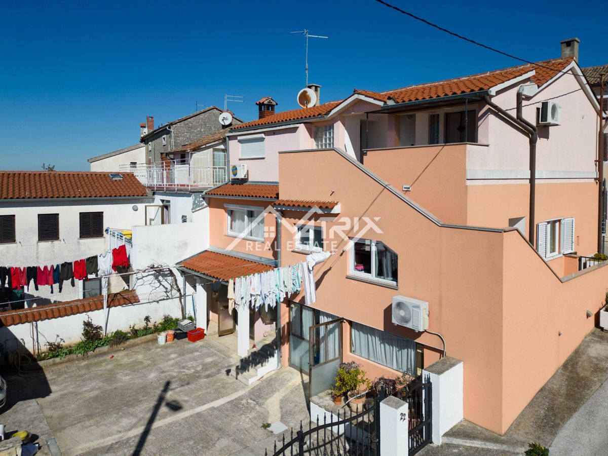 Na prodaju je atraktivna kuća s četiri stambene jedinice, smještena u šarmantnom mjestu u široj okolici Poreča. Ova nekretnina udaljena je svega 12 km od grada Poreča i njegovih predivnih plaža, te 14 km od slikovitog Vrsara. Kuća se prostire na tri etaž
