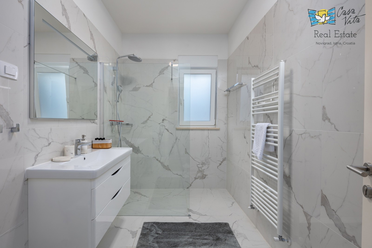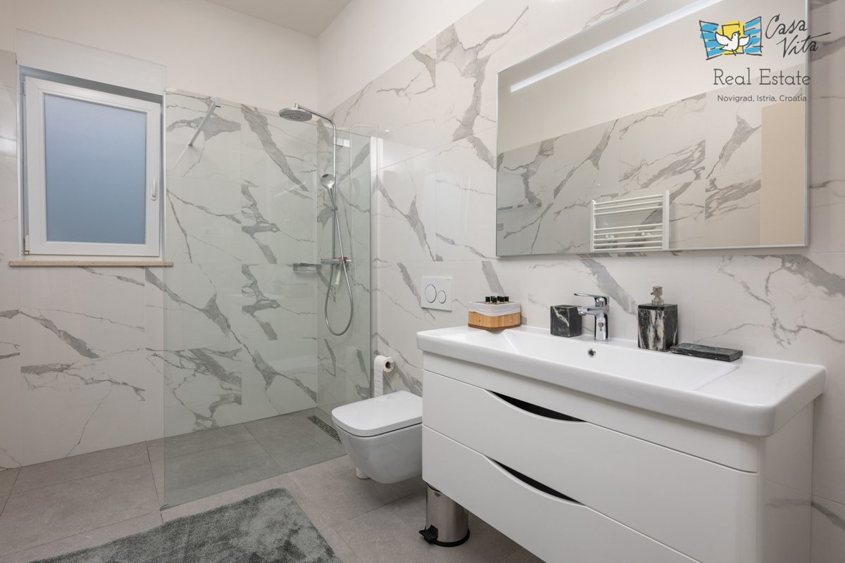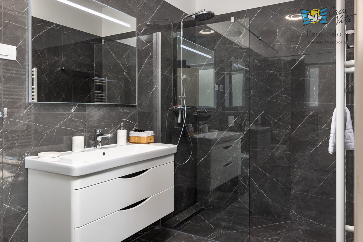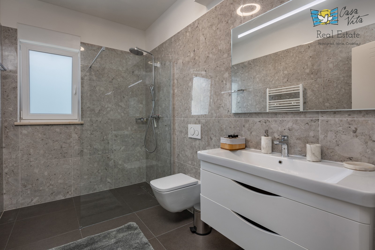 Istra, Poreč Prekrasna vila autentičnog izgleda, nalazi se na mirnoj lokaciji u jednom malom istarskog gradiću, nedaleko od mora (1 km). Svojom elegancijom i arhitekturom, odiše pomalo venecijanskom stilu. Izgrađena je 2022. godine. Sastoji se od tri e