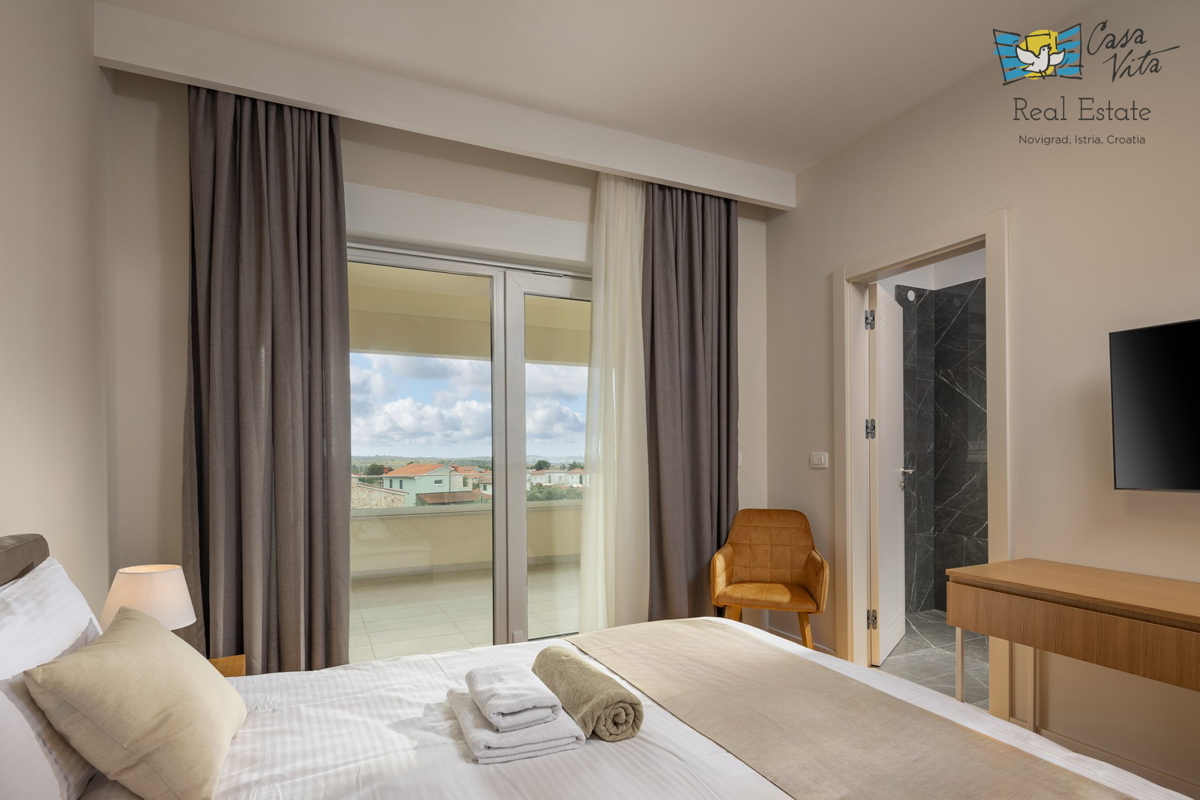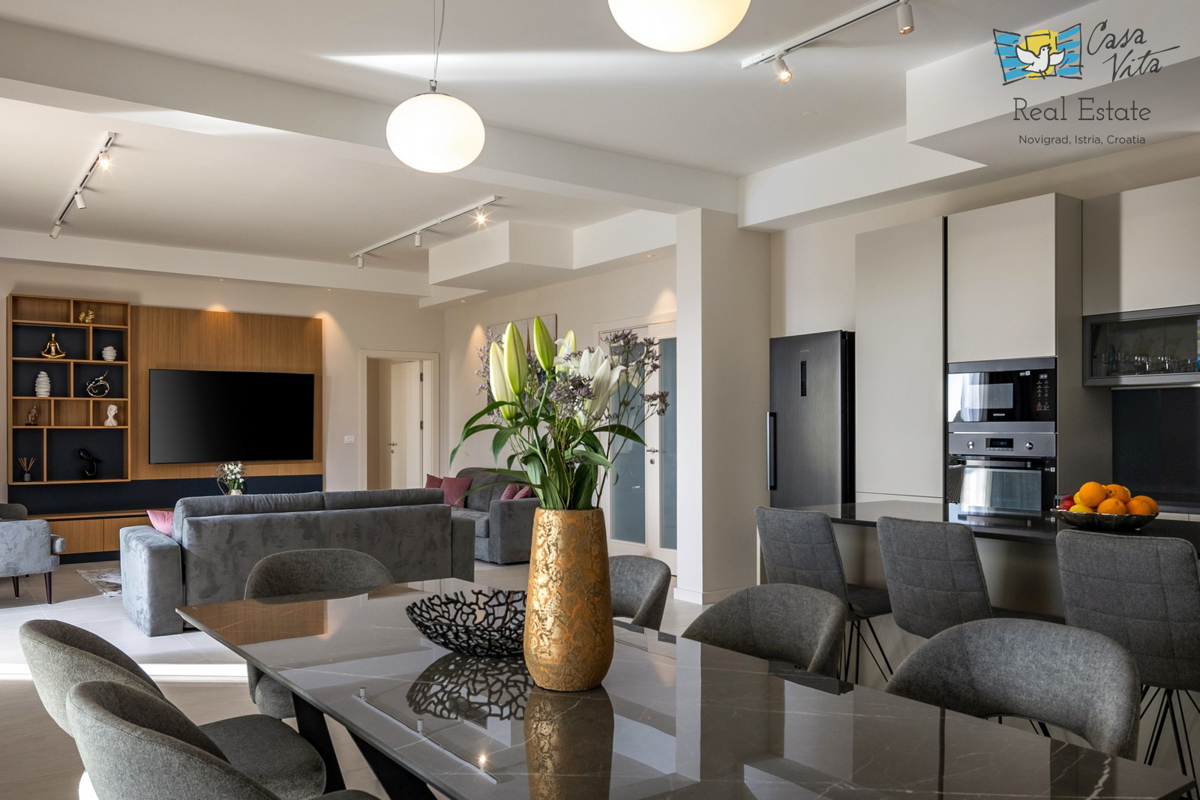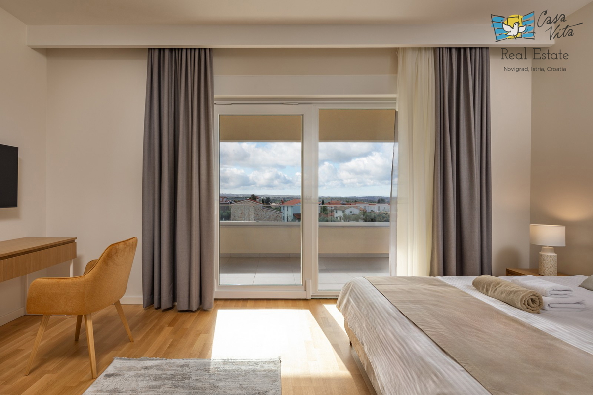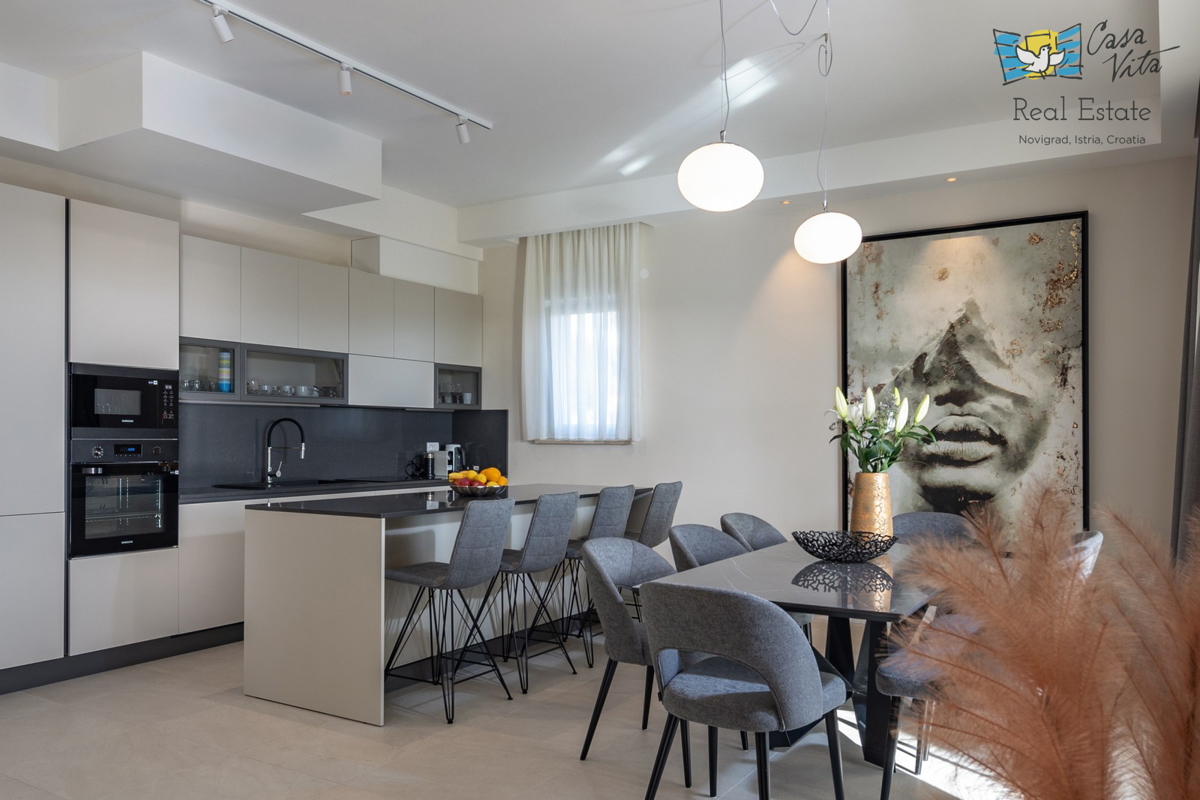 Istra, Poreč Prekrasna vila autentičnog izgleda, nalazi se na mirnoj lokaciji u jednom malom istarskog gradiću, nedaleko od mora (1 km). Svojom elegancijom i arhitekturom, odiše pomalo venecijanskom stilu. Izgrađena je 2022. godine. Sastoji se od tri e