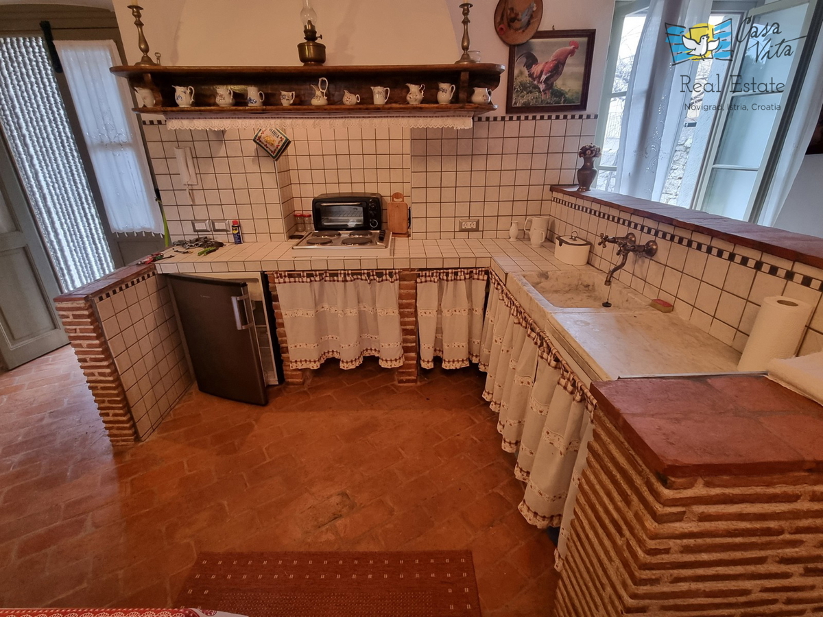 RIJETKOST NA TRŽIšTU!!! Prodaje se vrlo specifična neketnina, samostojeća kamena kuća sa dva odvojena stana koja odište vremenom prošlosti. Osjećaj je kao da ste negdje u Toscani dok boravite u njoj. A lokacija je Poreč, i to svega 1,5 km od uređenih p