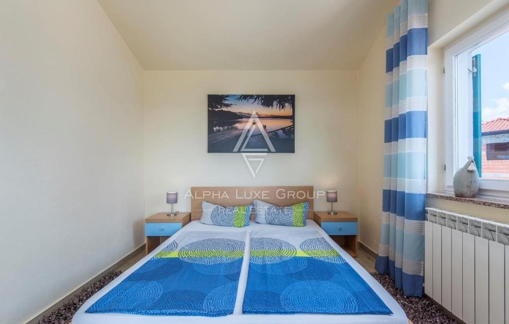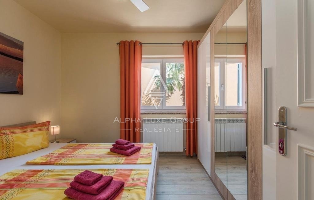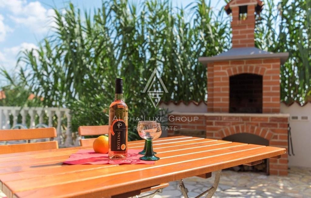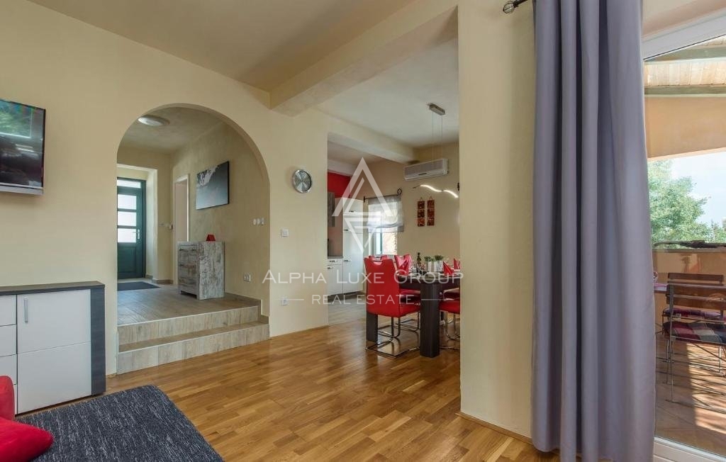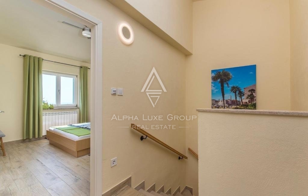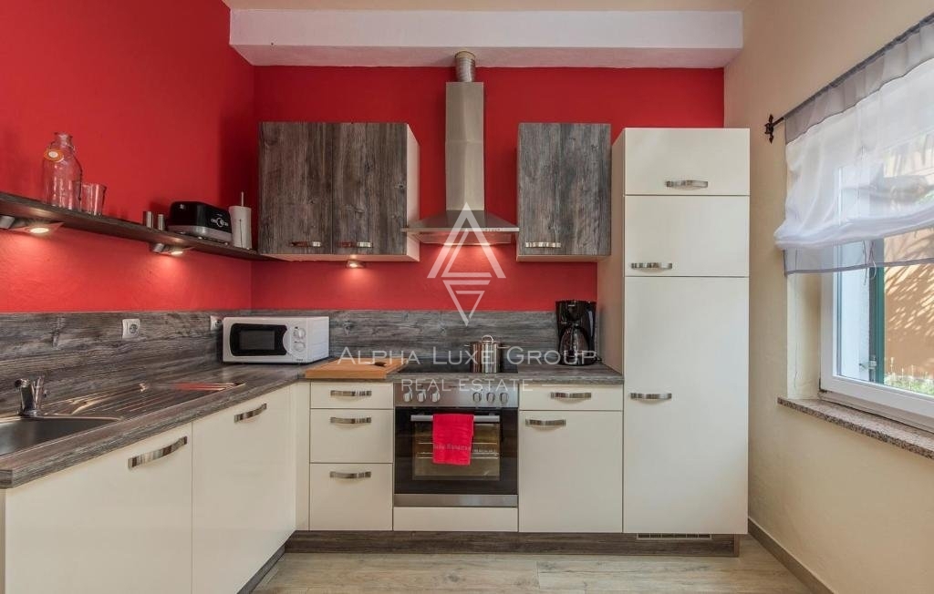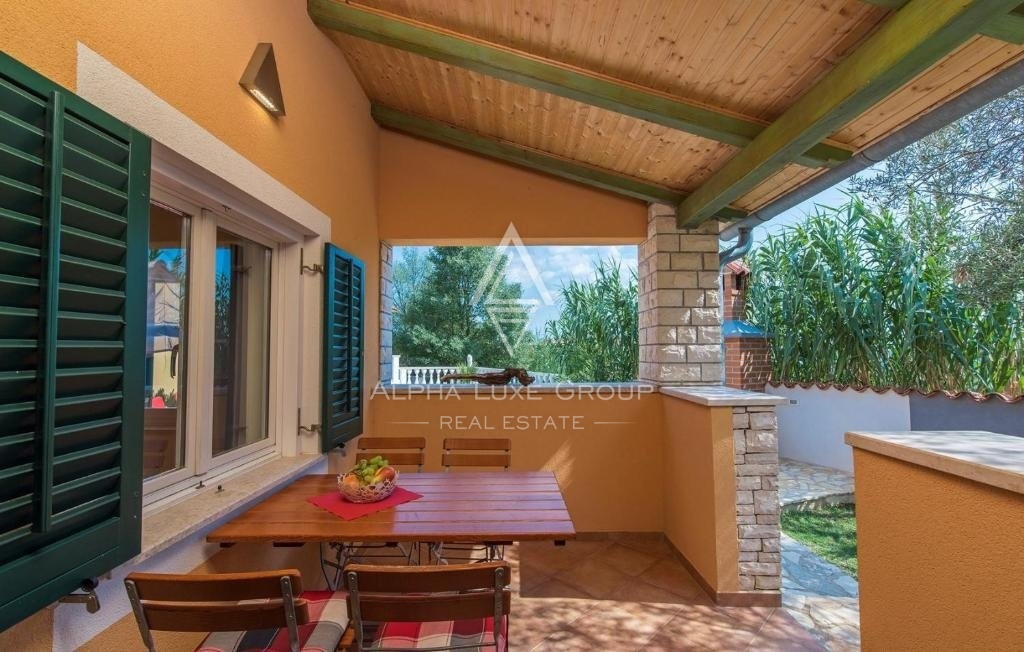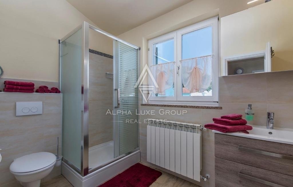 Smještena u mirnom području blizu Poreča, ova šarmantna rustikalna kuća u nizu nudi zadivljujući pogled na Jadransko more. S ukupnom površinom od 105 m², nekretnina spaja tradicionalni istarski šarm s modernim pogodnostima, čineći je idealnim izborom za o
