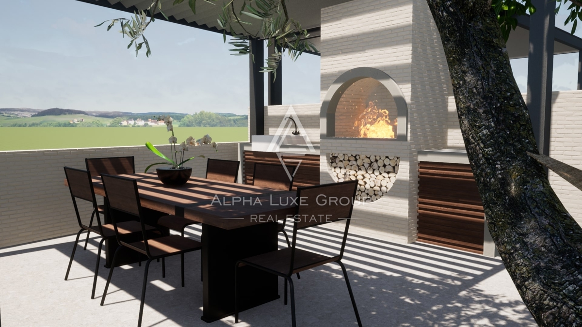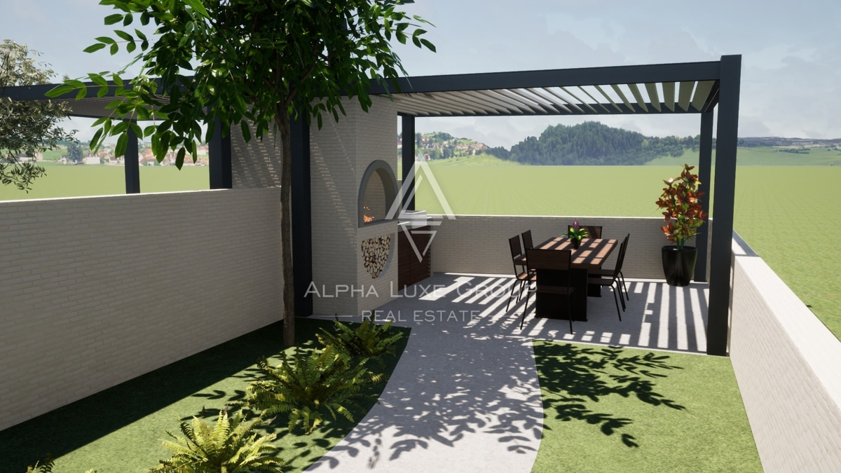 Otkrijte moderno življenje u ovoj novogradnji dvojnog objekta, smještenoj u blizini Poreča, jednog od najtraženijih obalnih gradova u Istri. Ova troetažna rezidencija s površinom od 126,40 m² nudi suvremen dizajn, udobnost i funkcionalnost, čineći je idea