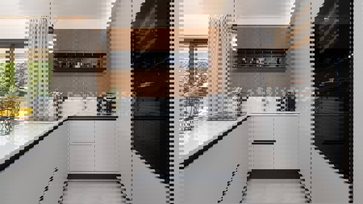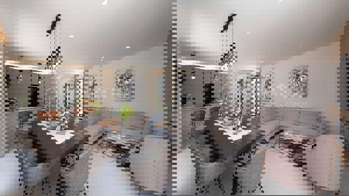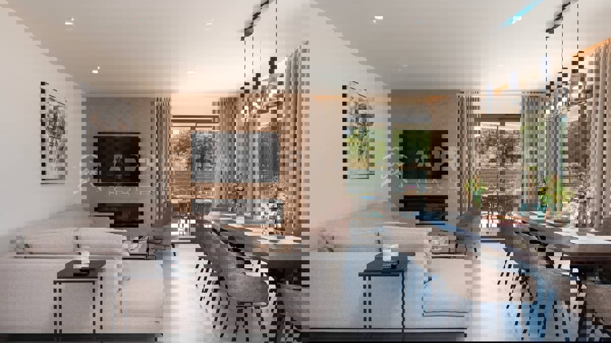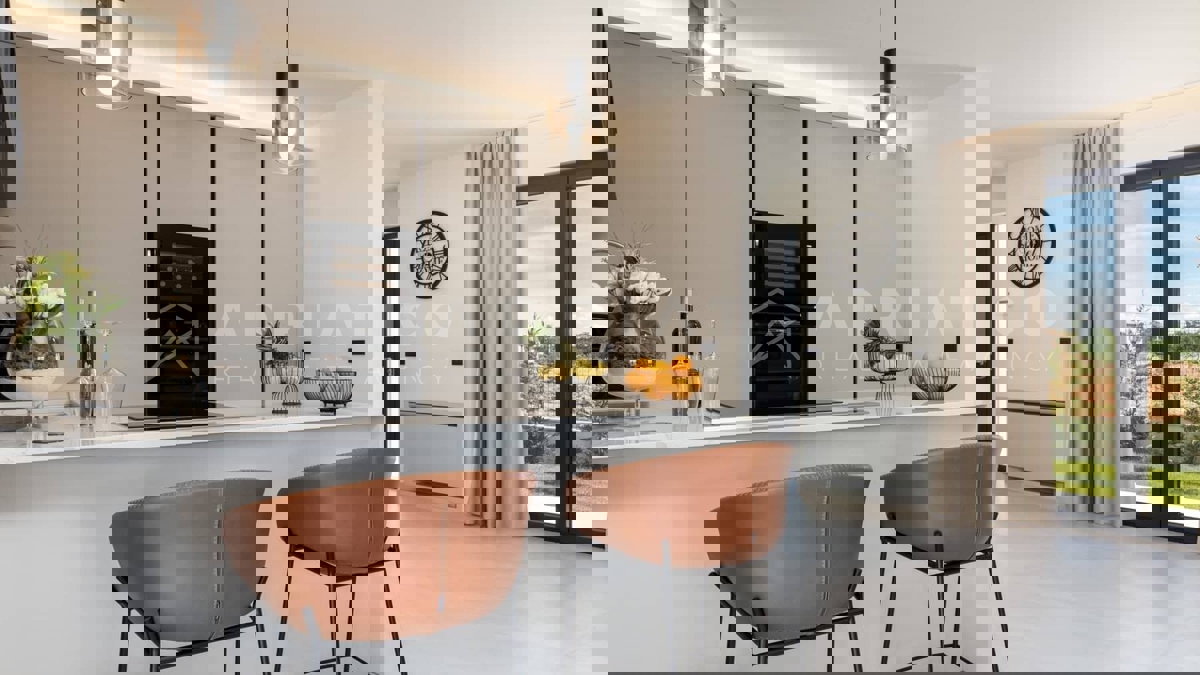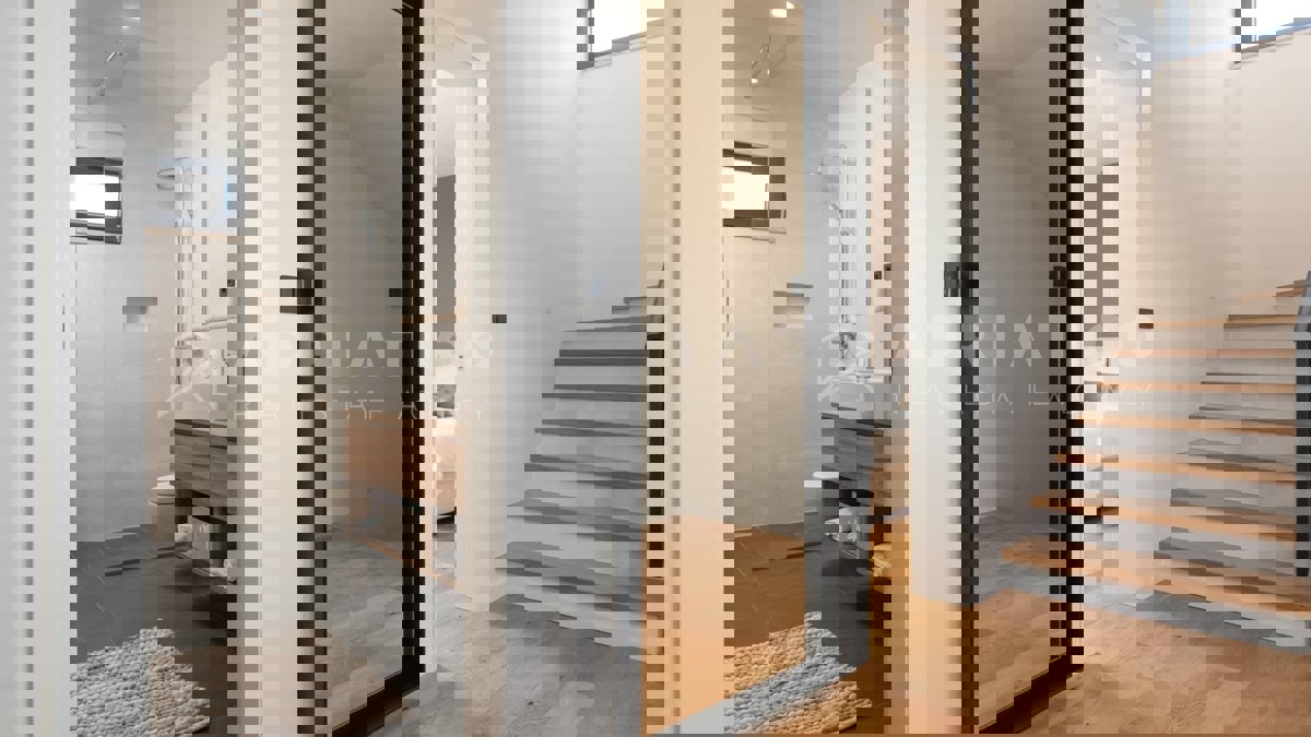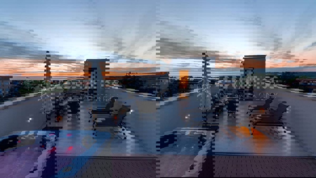 Moderna vila s bazenom i panoramskim pogledom na more – 5 km od Poreča Predstavljamo vam elegantnu i moderno uređenu vilu, smještenu u mirnom naselju, samo 5 km od Poreča i prvih plaža. Ova luksuzna kuća površine 220 m² nudi vrhunski komfor i privatnost,