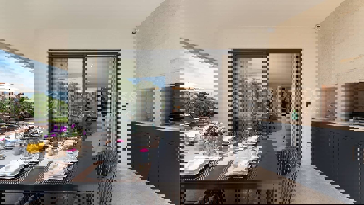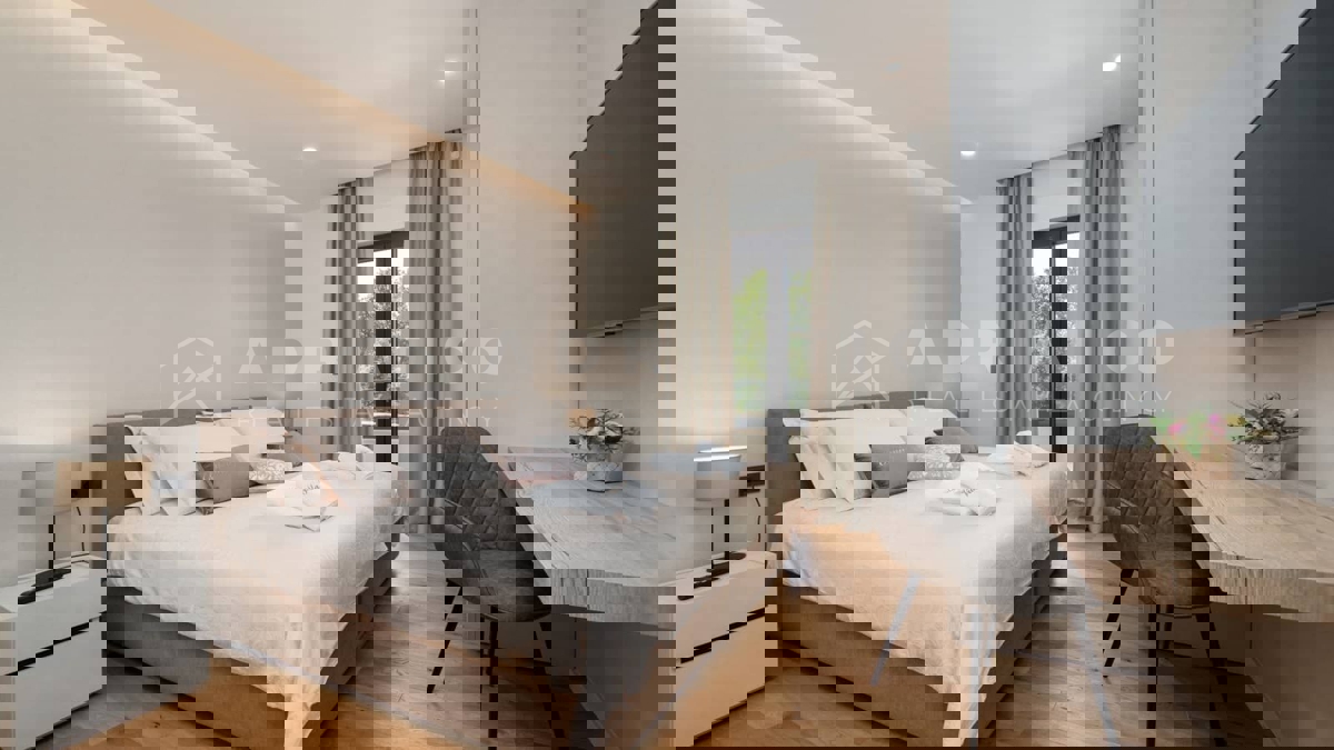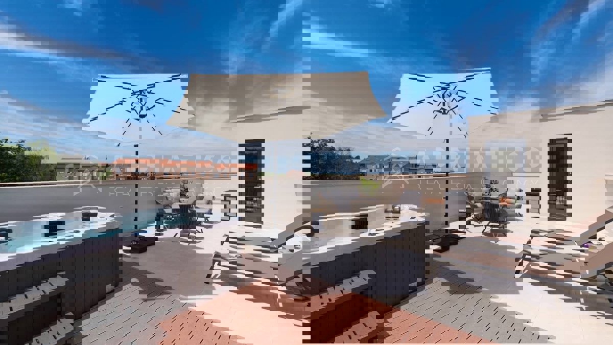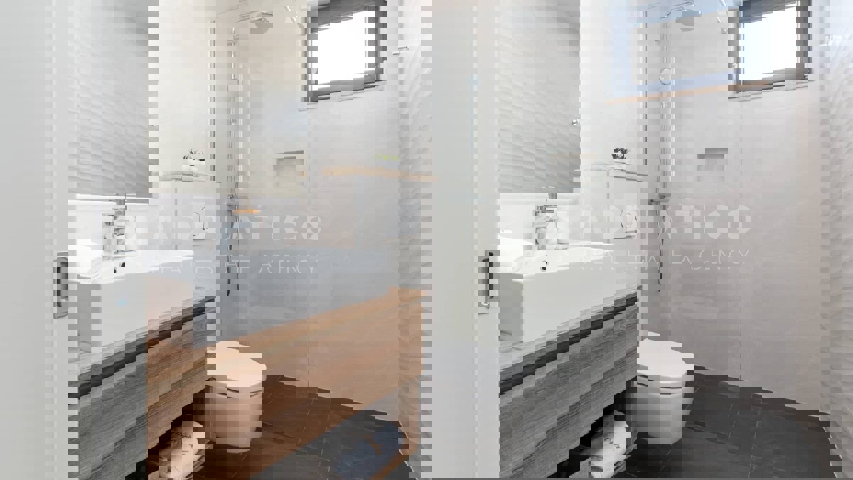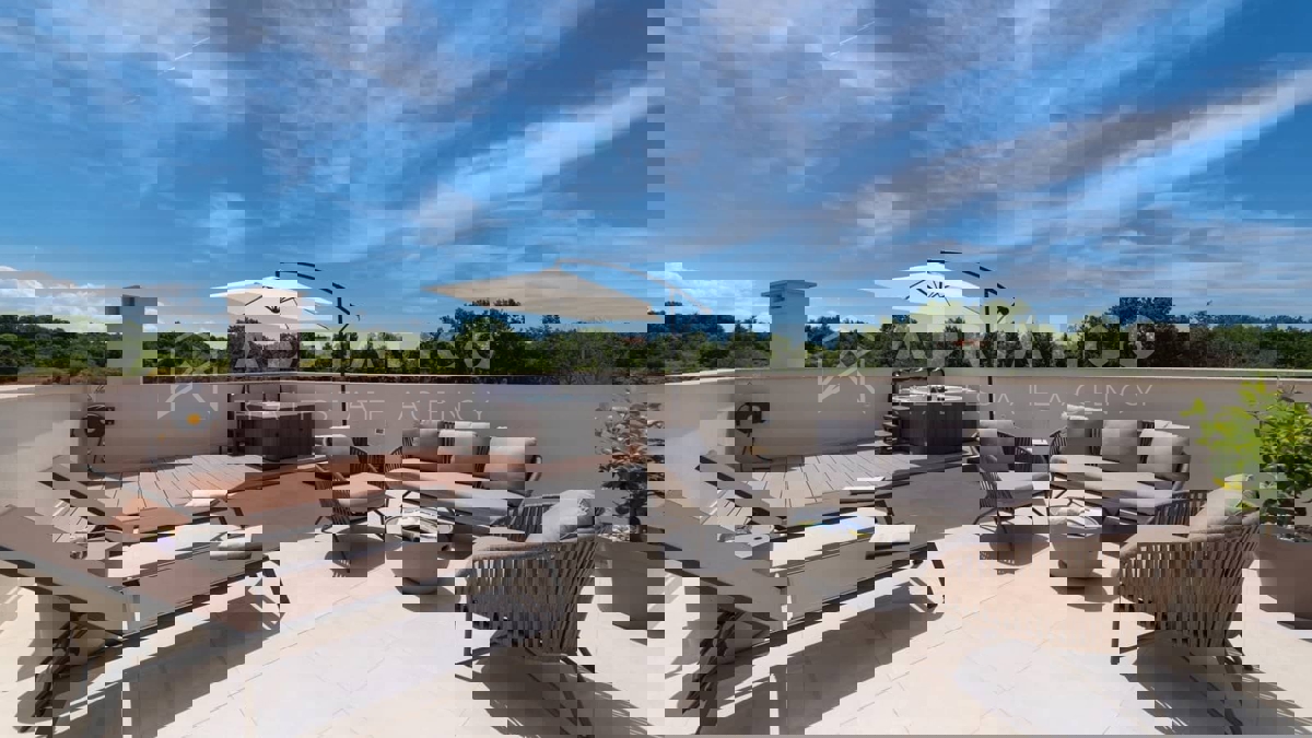 Moderna vila s bazenom i panoramskim pogledom na more – 5 km od Poreča Predstavljamo vam elegantnu i moderno uređenu vilu, smještenu u mirnom naselju, samo 5 km od Poreča i prvih plaža. Ova luksuzna kuća površine 220 m² nudi vrhunski komfor i privatnost,