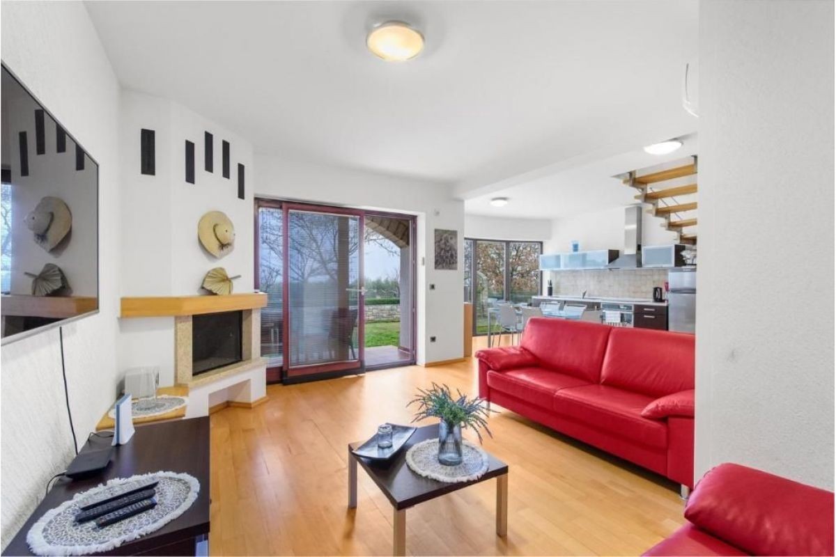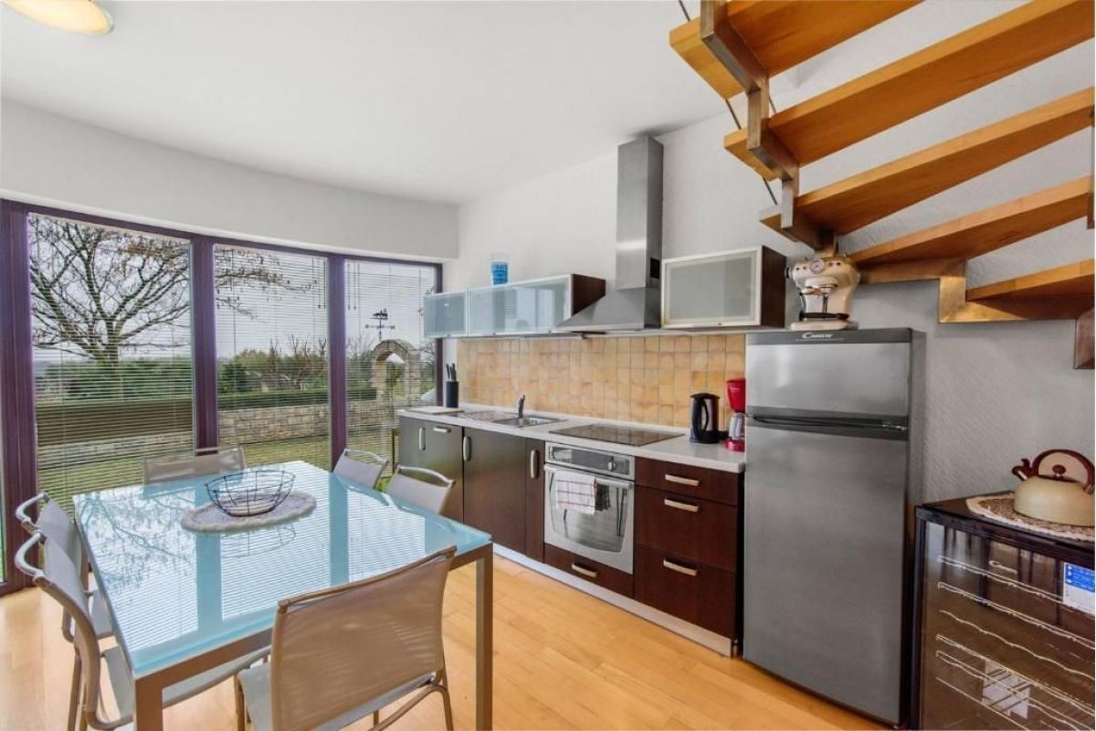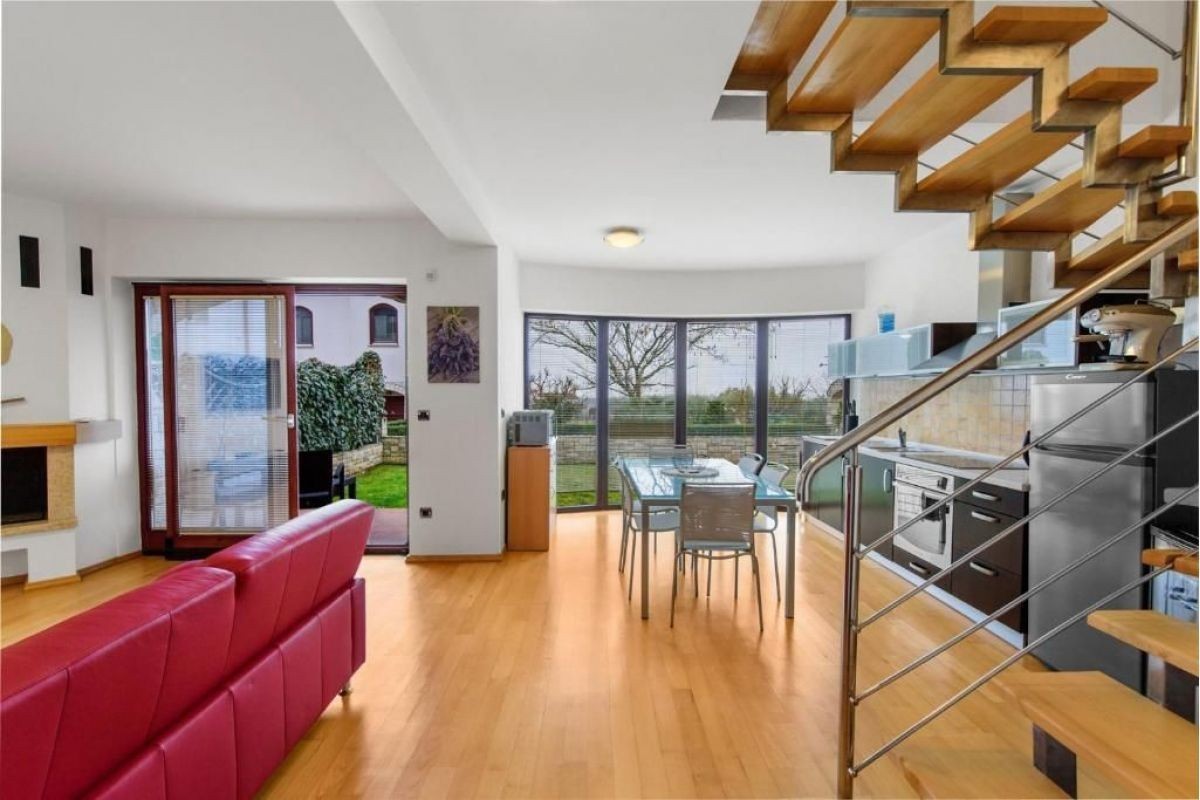 Nedaleko Poreča i mora prodaje se zadnja kuća u nizu sa pogledom na more. Kuća se u prizemlju sastoji od predprostora, kupatila, ostave, kuhinje sa blagovaonom i dnevnim boravkom sa kaminom i izlazom na terasu i dvorište.Na katu se nalaze tri spavaće sob