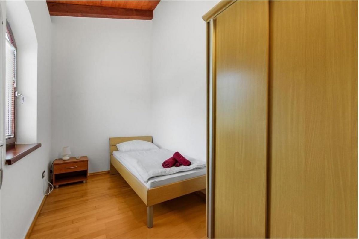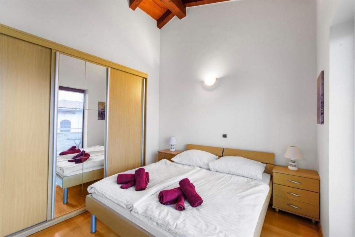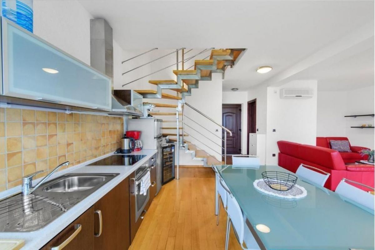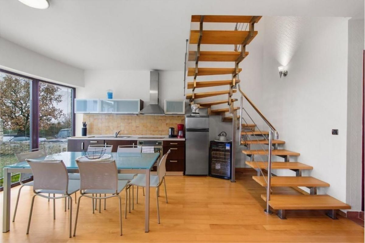 Nedaleko Poreča i mora prodaje se zadnja kuća u nizu sa pogledom na more. Kuća se u prizemlju sastoji od predprostora, kupatila, ostave, kuhinje sa blagovaonom i dnevnim boravkom sa kaminom i izlazom na terasu i dvorište.Na katu se nalaze tri spavaće sob