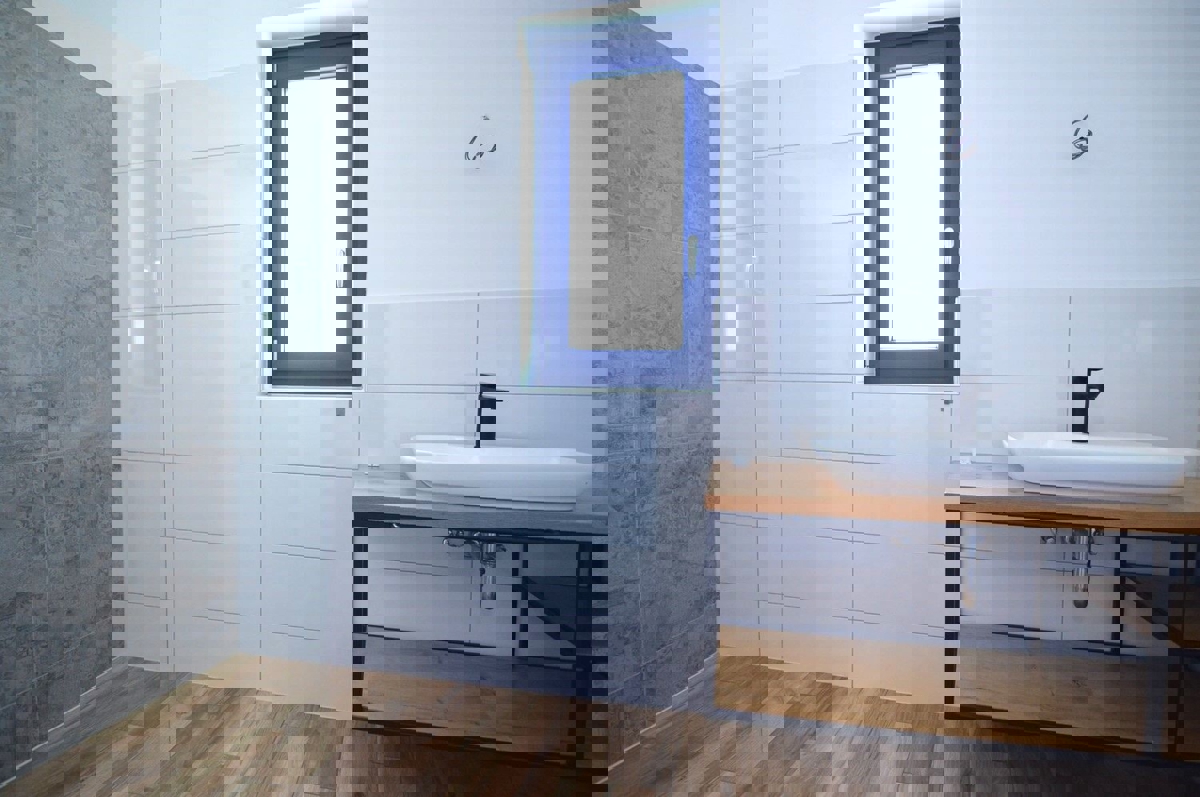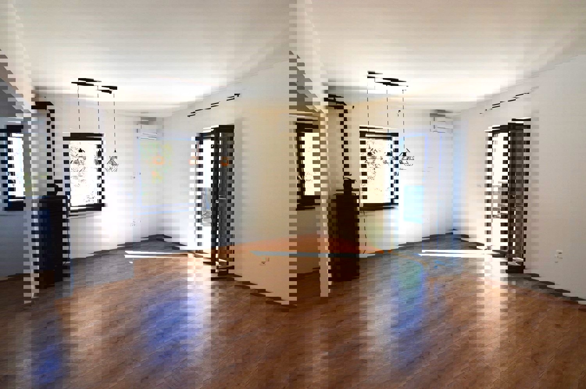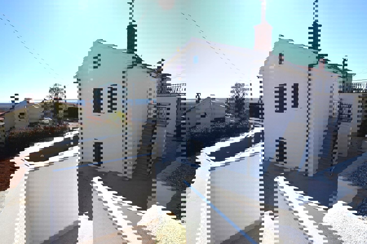 Prodaje se kuća nedaleko Poreča sa dva stana i bazenom u centru mjesta sa svim sadržajima. Prizemlje kuće se sastoji od predsoblja, kuhinje sa blagovaonom i dnevnog boravka, spremišta , dvije spavaće sobe sa kupaonicama.U dvorištu je smješten bazen sa pla