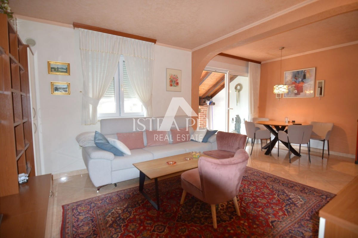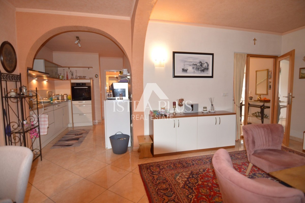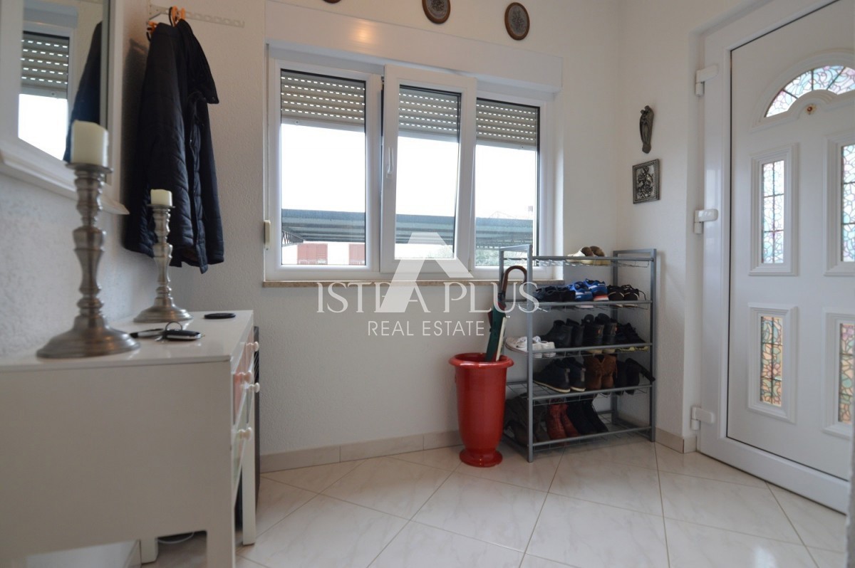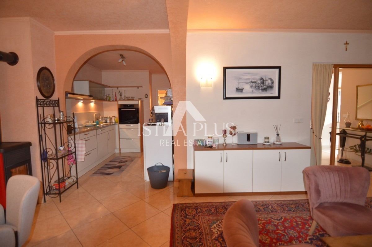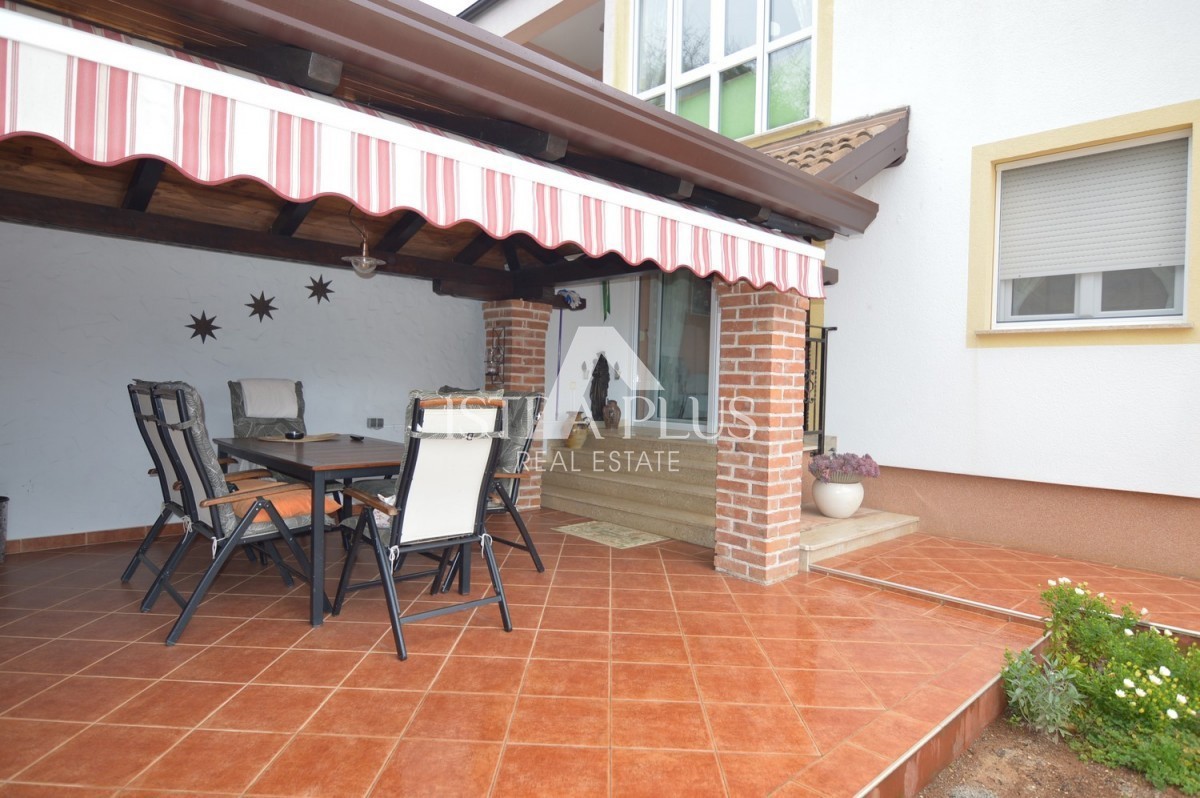 K279 Prekrasna obiteljska kuća sa dvorištem uz pregrađu Poreča, uređeno, mirno mjesto sa sadržajem poput dućana,cafea i restorana. Kuća se sastoji od 2 stana , svaki na jednoj etaži prizemlje: hodnik, ostava, dnevni boravak i blagovaonica sa kuhinjo