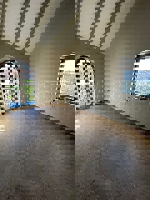 Prekrasna vila smještena na brežuljku sa otvorenim pogledom na brda centralne istre te Motovun i Grožnjan. Vila ima 276m2 stambenog prostora i 2.200m2 okućnice, bazen. Prizemlje ulaz, spavaća soba sa kupaonom, wc za goste, dnevni boravak, sa kaminom, kuh
