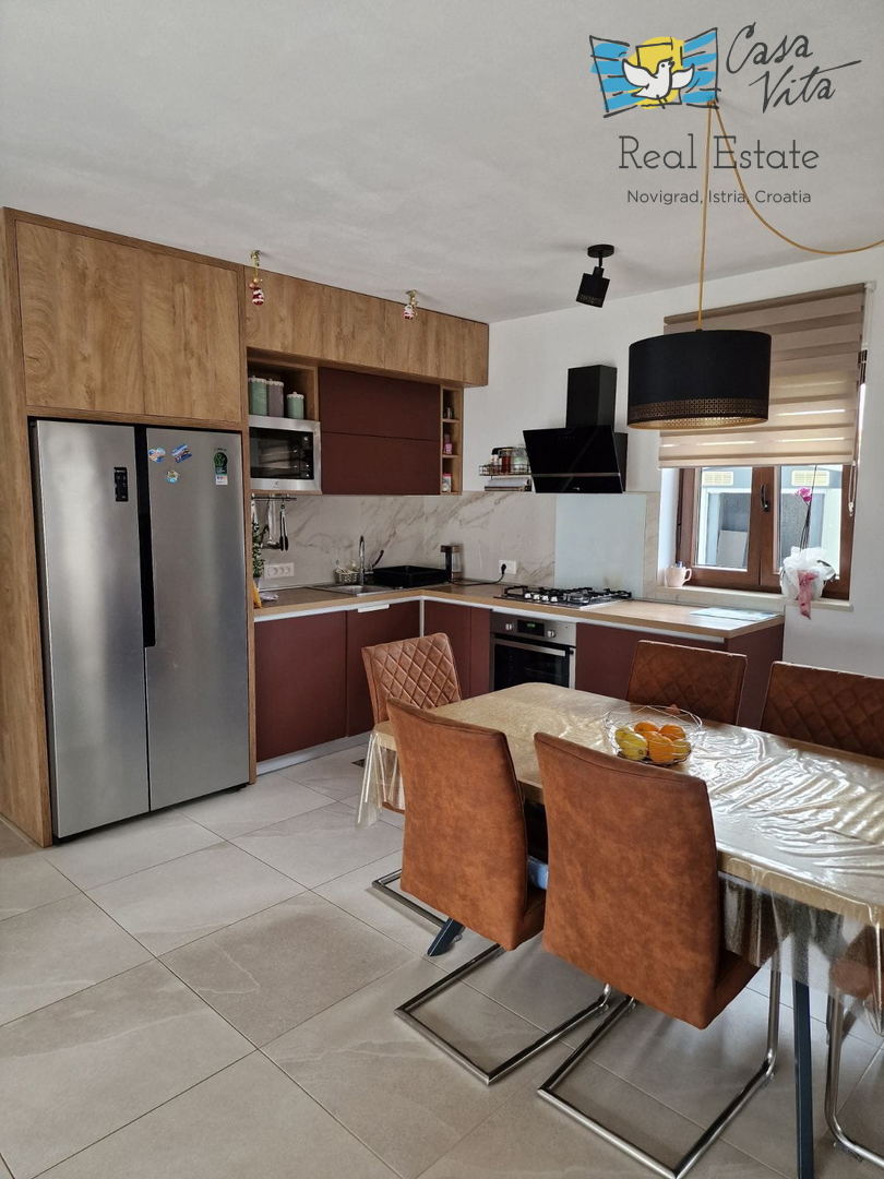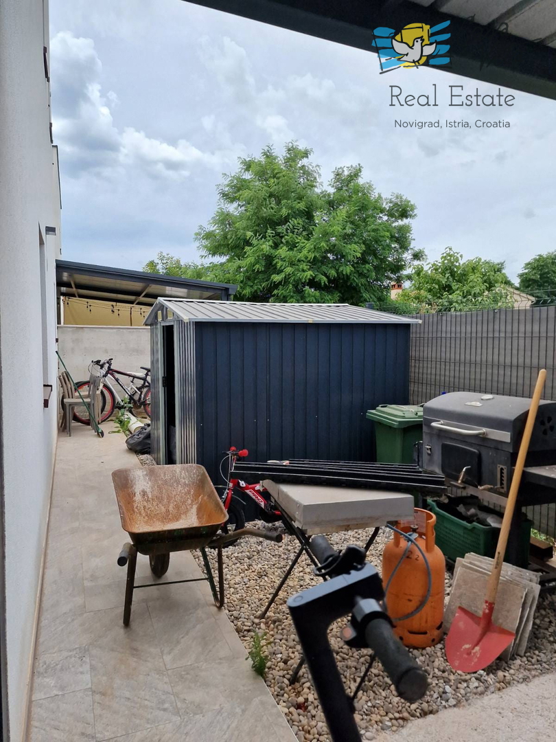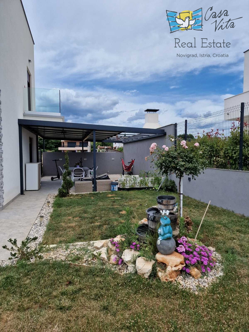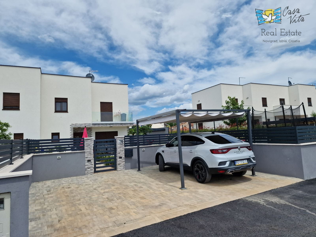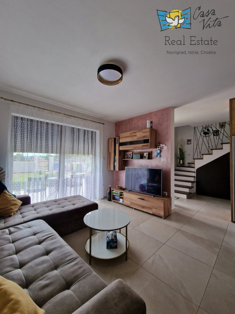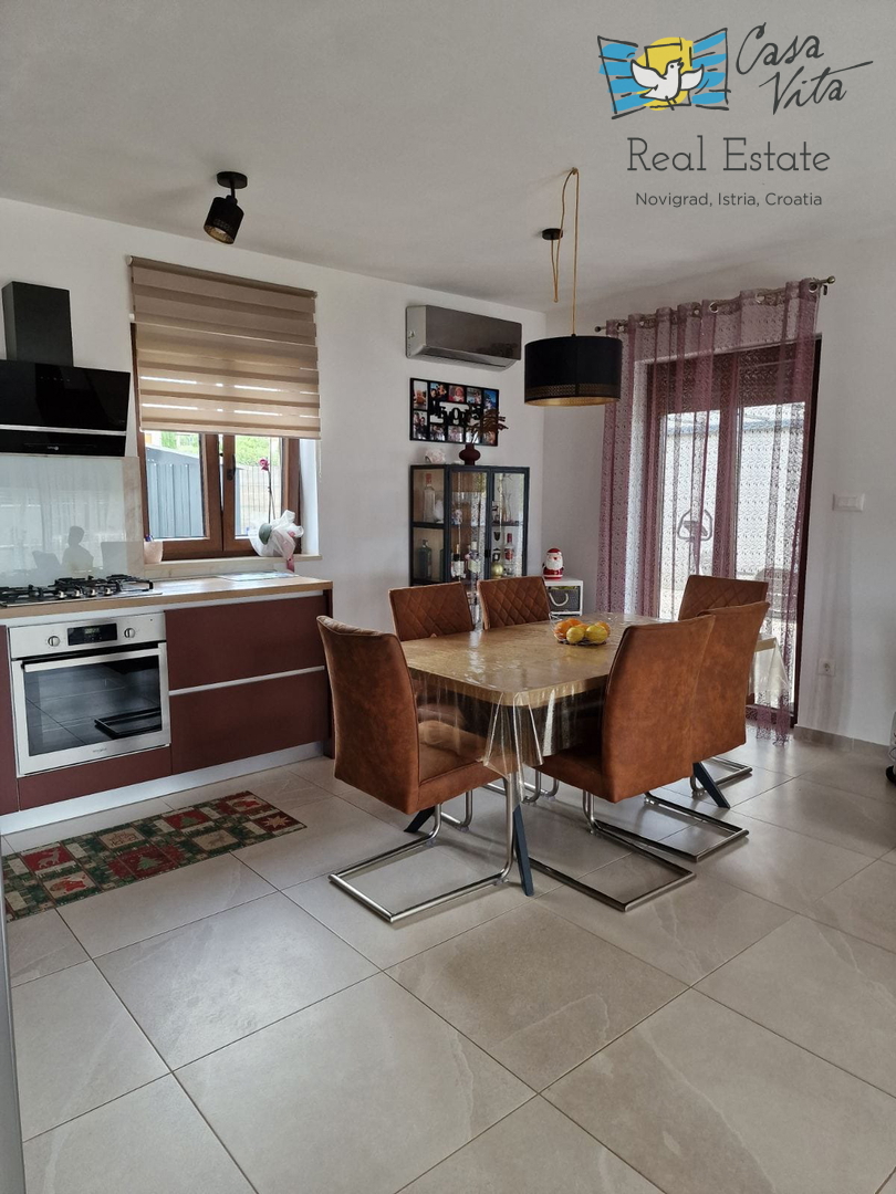 U okolici Poreča ( 10km ) prodaje se ova moderna kuća u nizu, izgrađena 2022. godine, koja nudi 110 m2 stambenog prostora. Smještena u mirnom okruženju, ova nekretnina nudi savršenu ravnotežu između modernog života i prirodne ljepote. Ova kuća s tri s