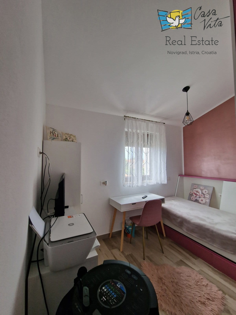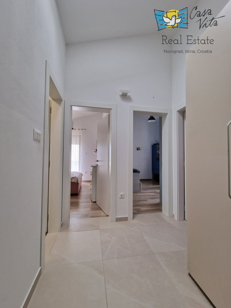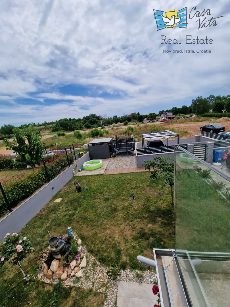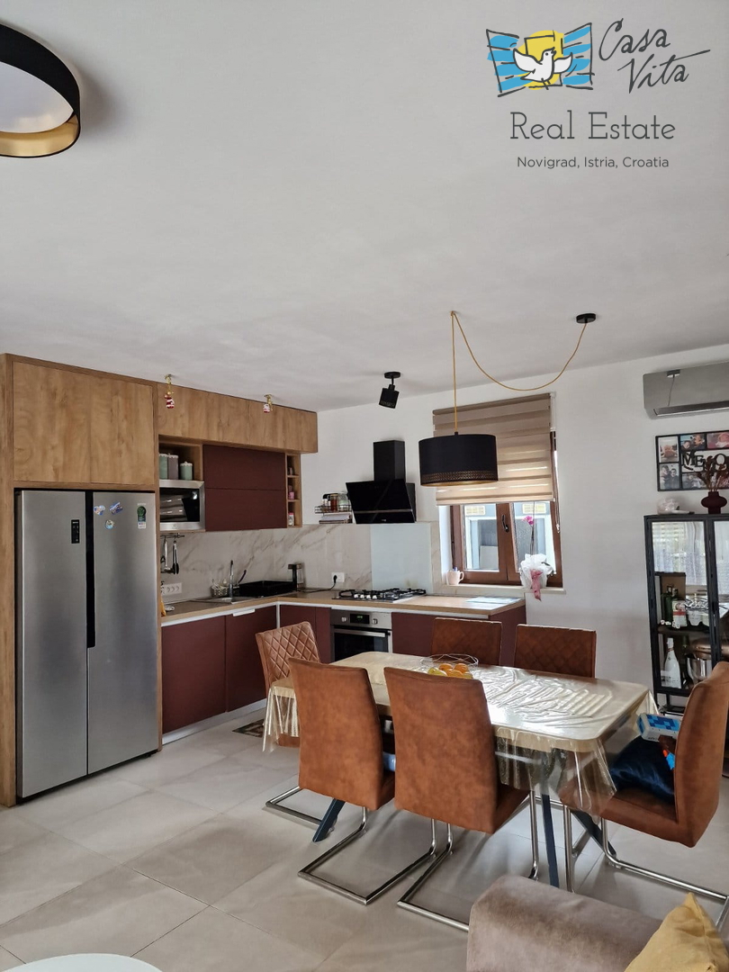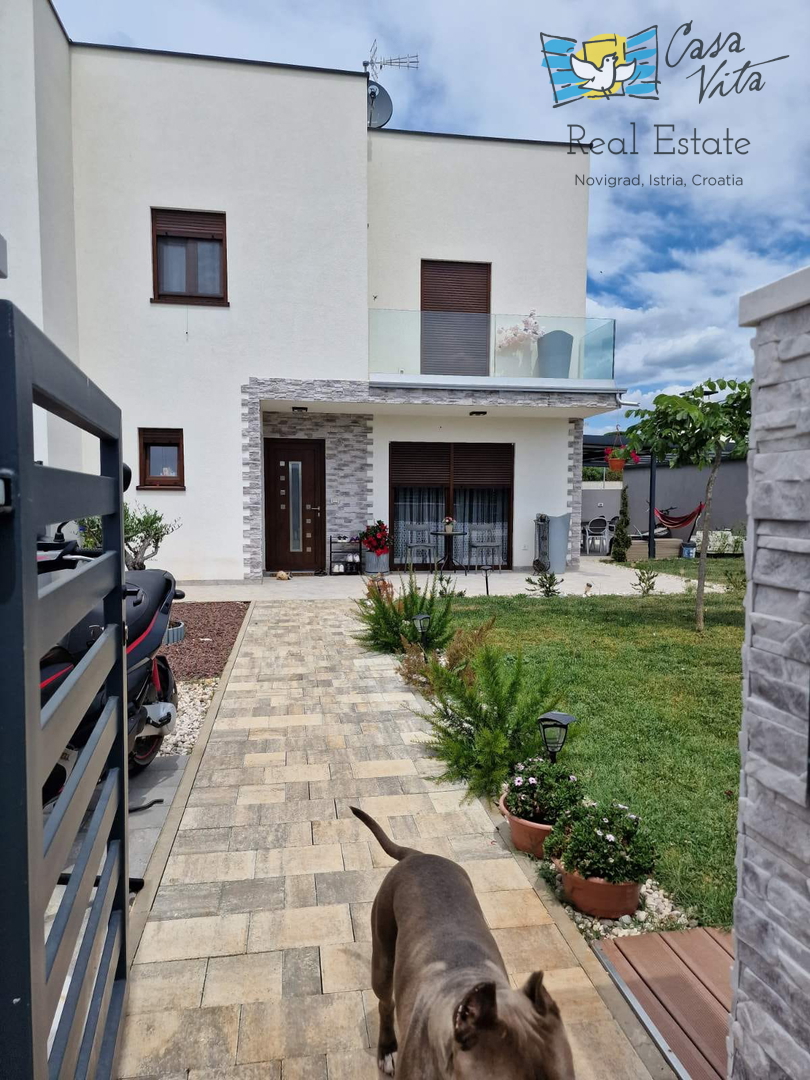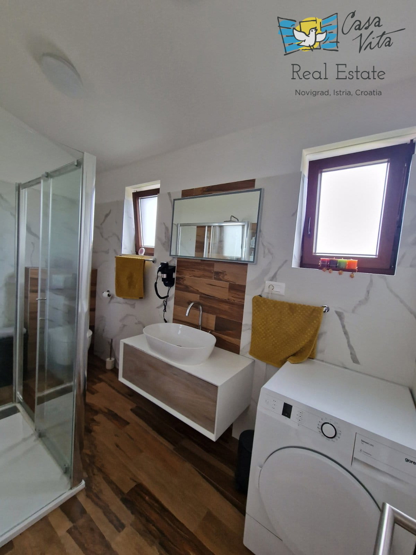 U okolici Poreča ( 10km ) prodaje se ova moderna kuća u nizu, izgrađena 2022. godine, koja nudi 110 m2 stambenog prostora. Smještena u mirnom okruženju, ova nekretnina nudi savršenu ravnotežu između modernog života i prirodne ljepote. Ova kuća s tri s