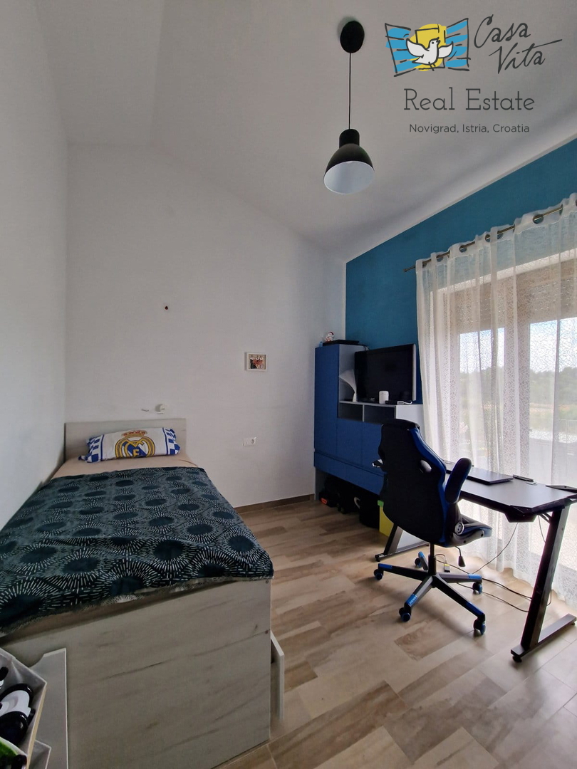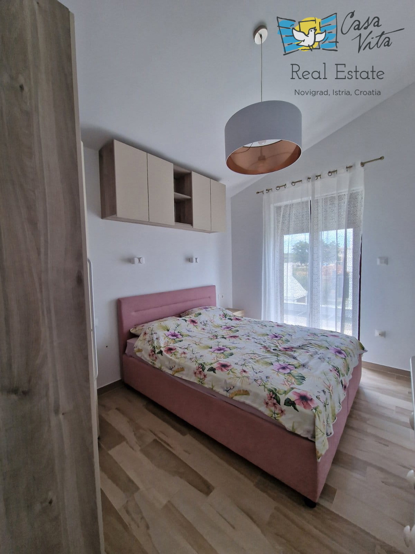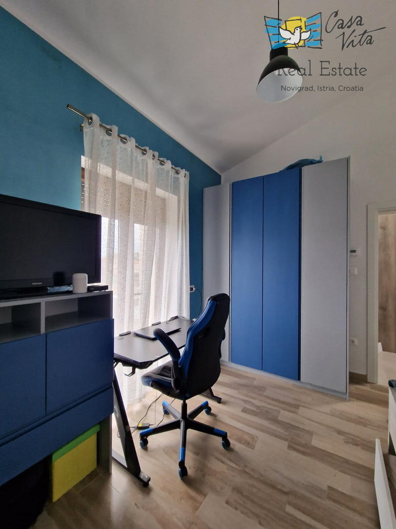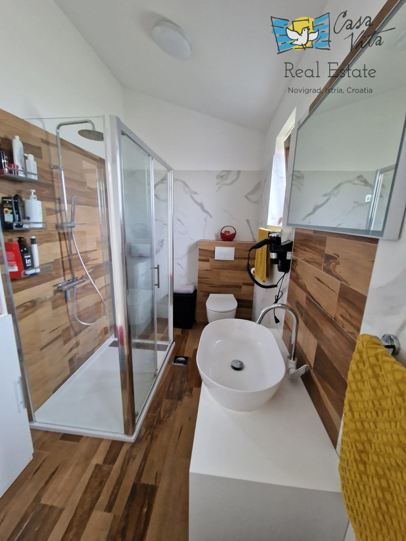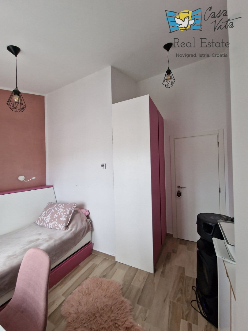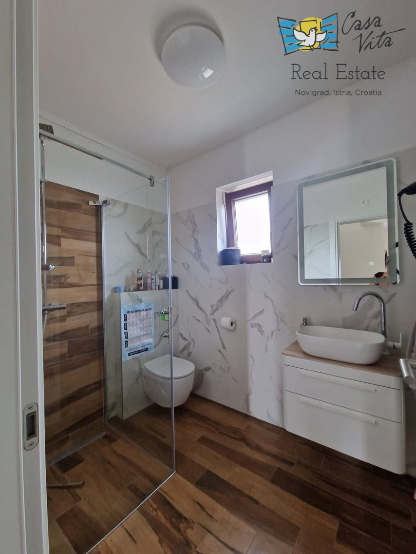 U okolici Poreča ( 10km ) prodaje se ova moderna kuća u nizu, izgrađena 2022. godine, koja nudi 110 m2 stambenog prostora. Smještena u mirnom okruženju, ova nekretnina nudi savršenu ravnotežu između modernog života i prirodne ljepote. Ova kuća s tri s