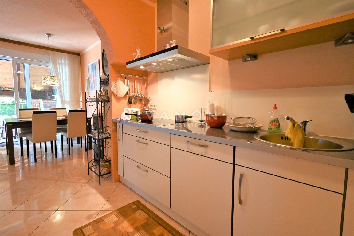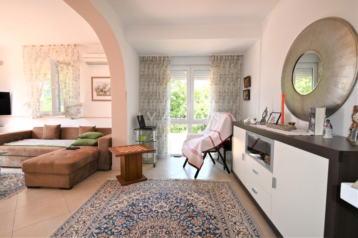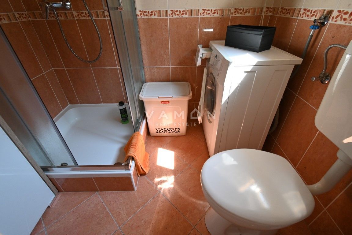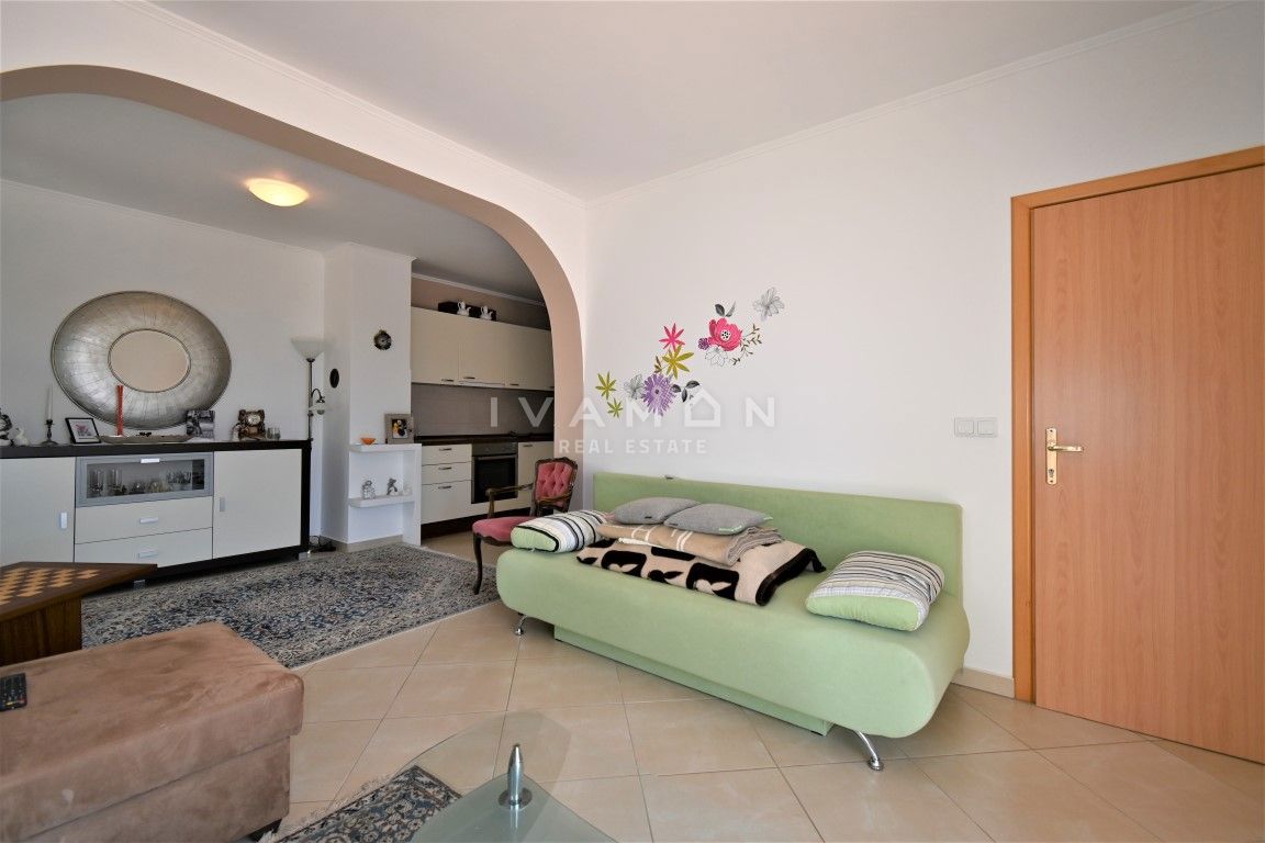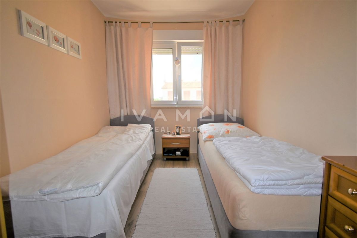 U mjestu udaljenom 3 km od centra Poreča i 2 km od plaže prodaje se lijepa i dobro održavana kuća s pogledom na more. Kuća je dvojna, no ima vlastiti ulaz te apsolutnu privatnost od pogleda i susjeda. Ima sveukupno 133 m2 raspoređenih na prizemlje i ka