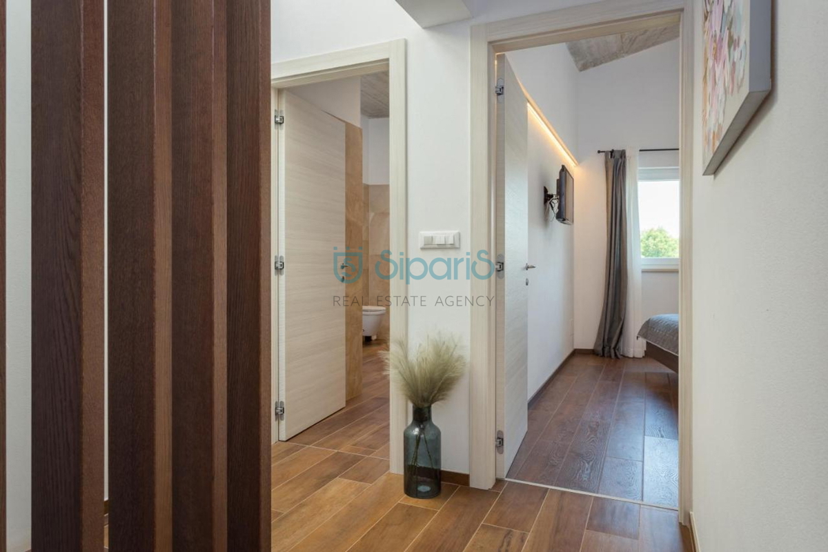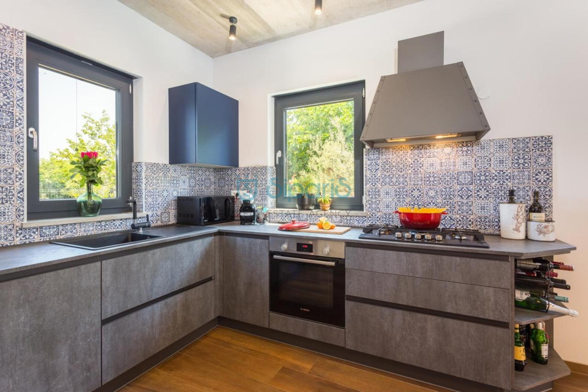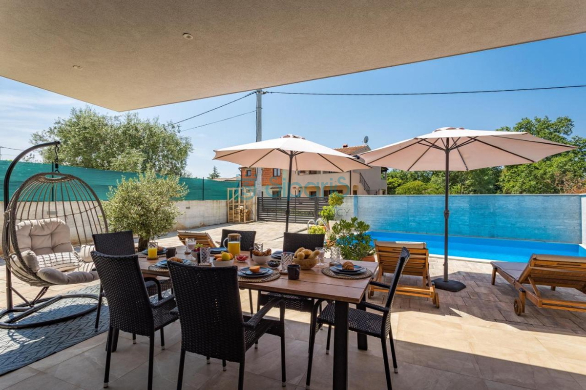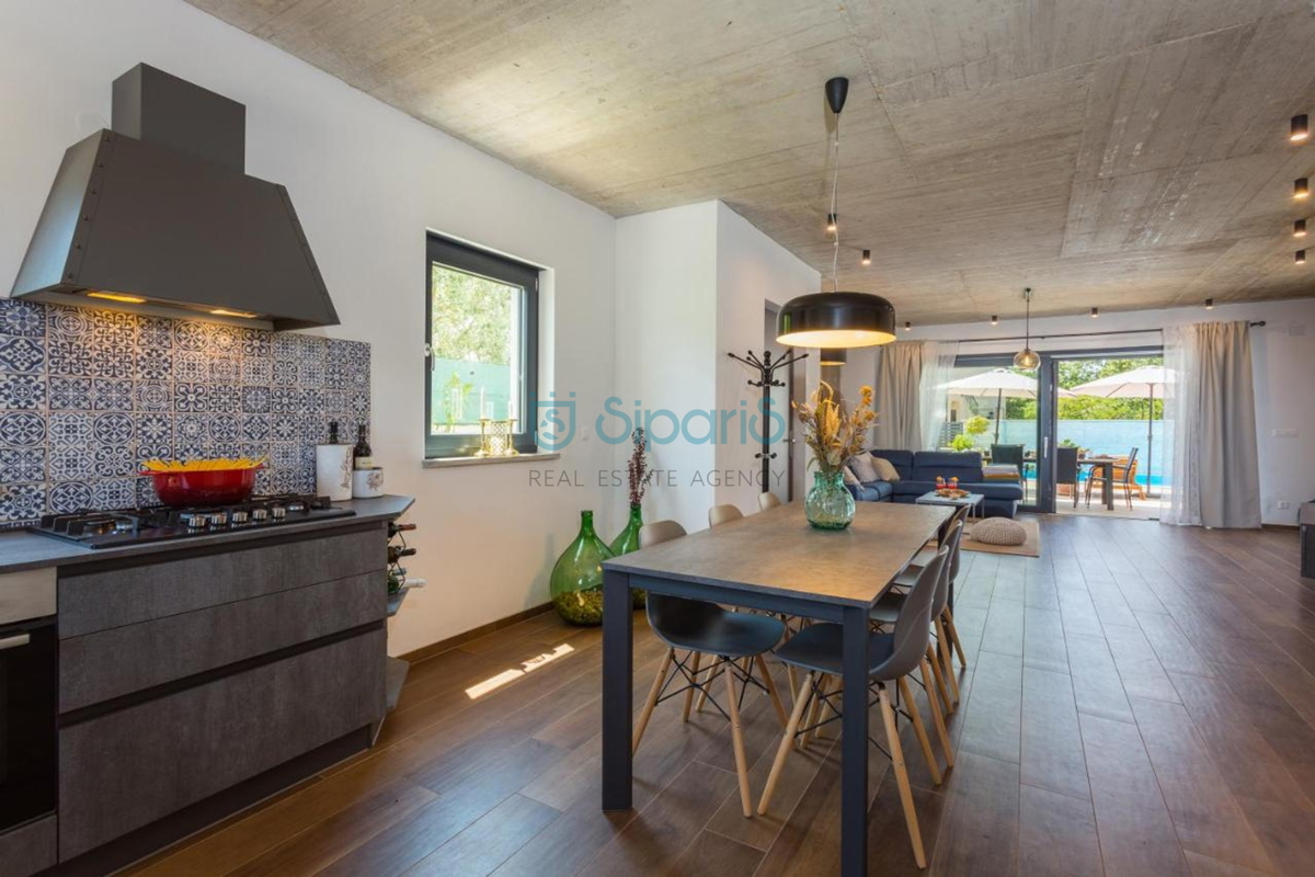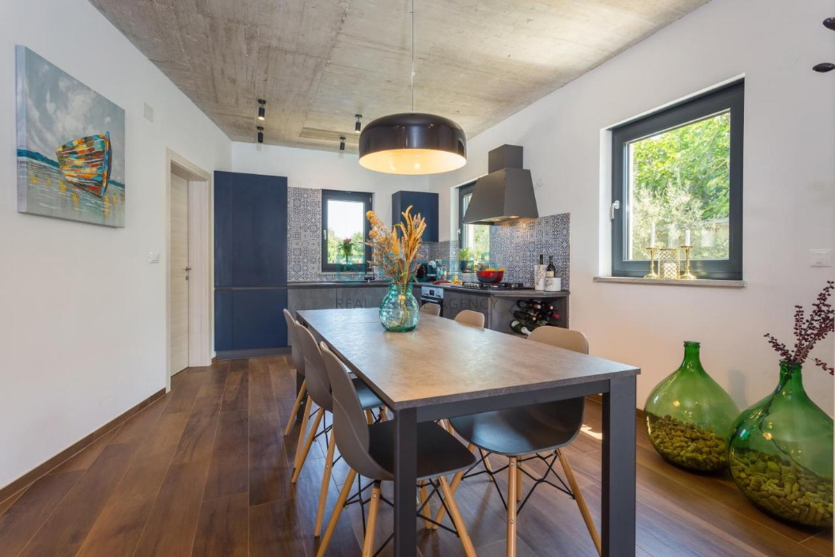Poreč, na prodaji je kuća sa bazenom udaljena samo 4 kilometara od grada Poreča. Definirana je kao jedna stambena jedinica čija je površina raspoređena na dvije uređene etaže. Na prvoj etaži smještena je moderna opremljena kuhinja sa blagavaonicom, p