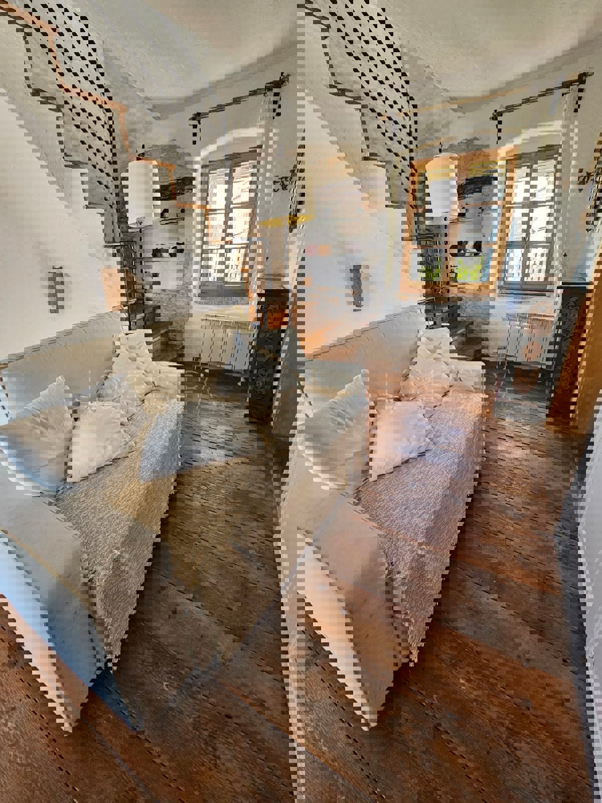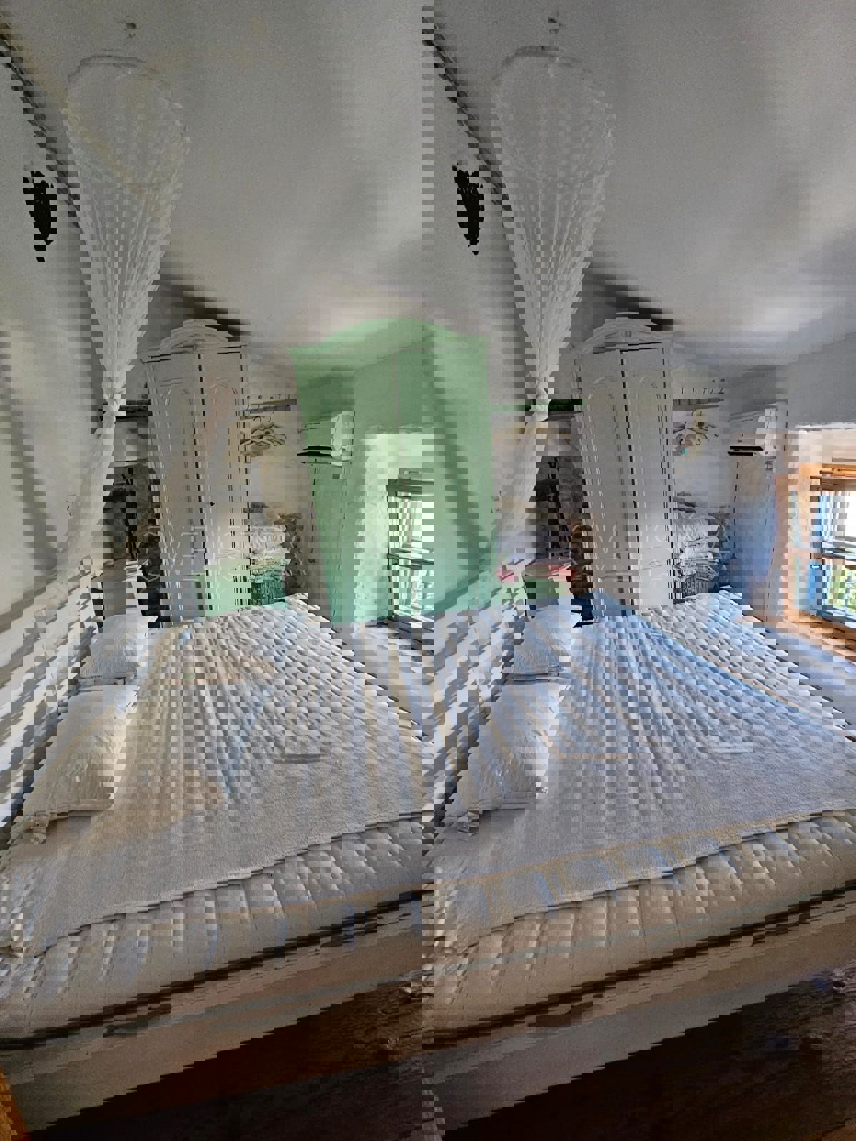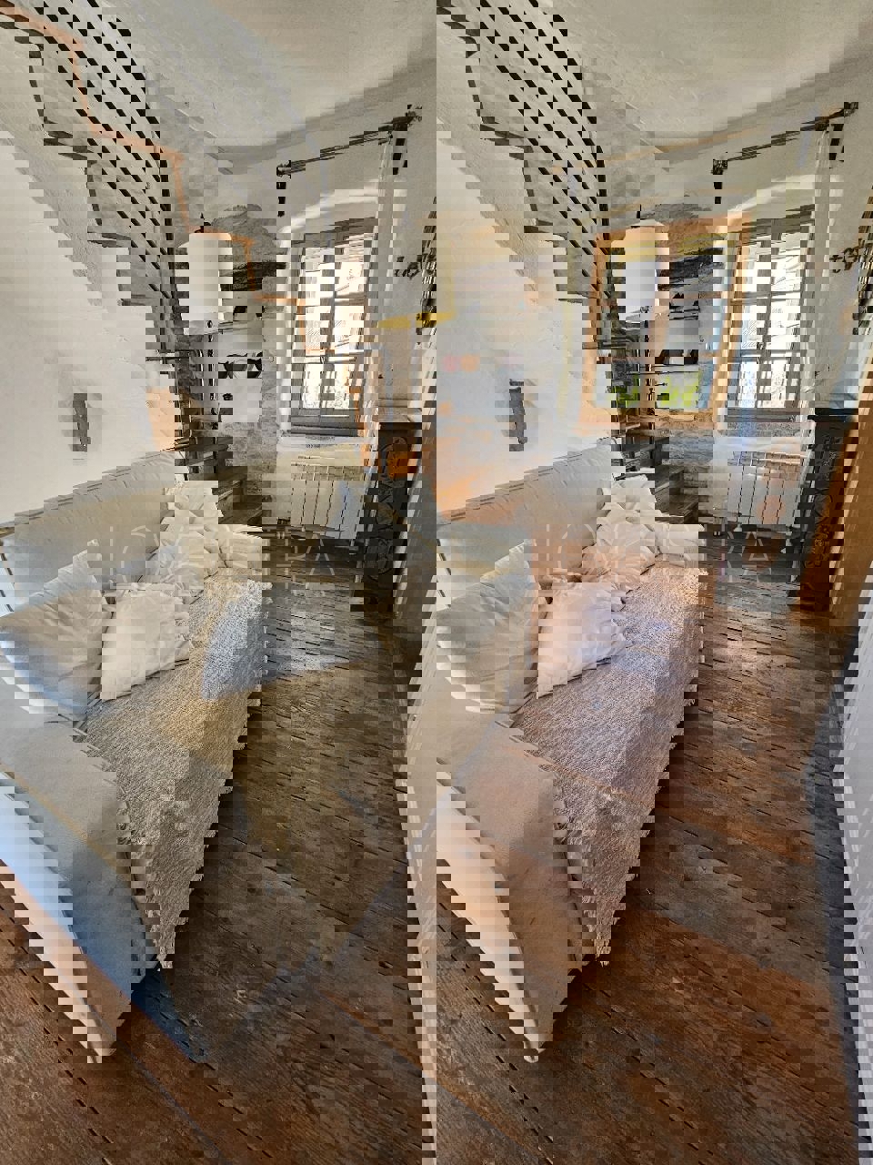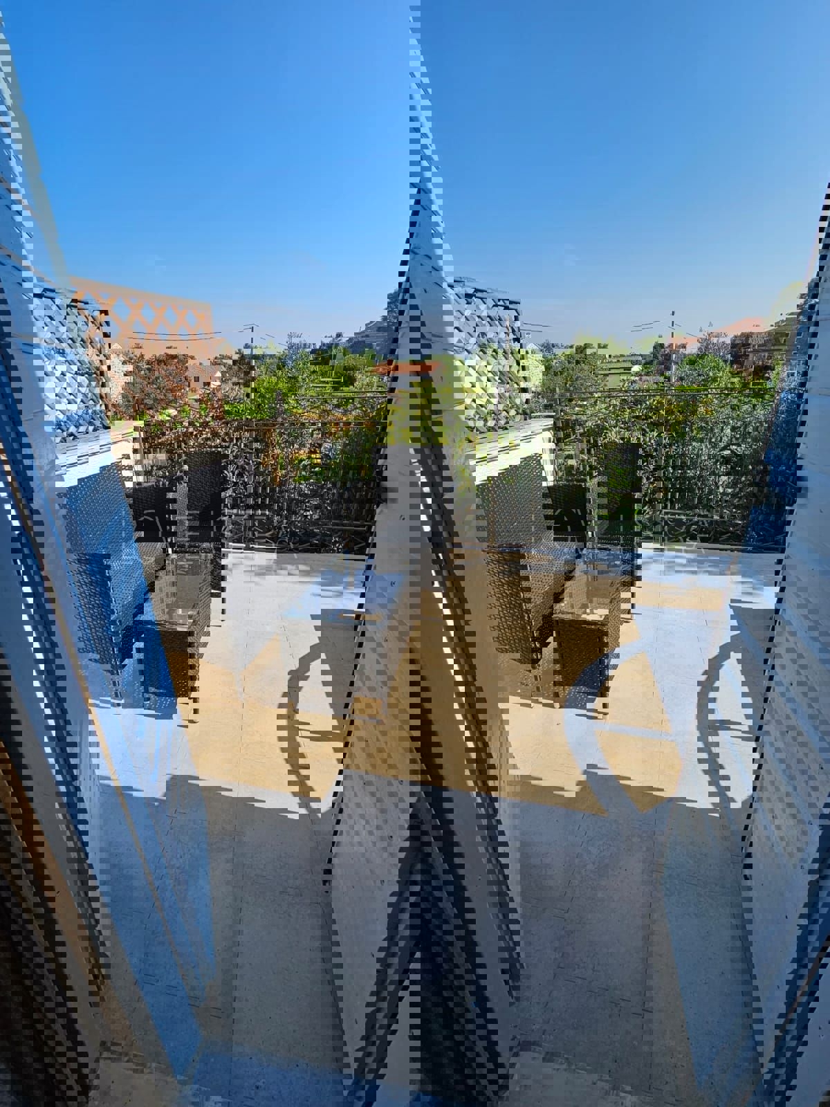Na samo 3 km od grada i mora smjestila se ova prekrasno uređena kamena kuća u nizu ukupne stambene površine 128 m2.Kuća je raspoređena na tri etaže od kojih se u prizemlju nalazi kuhinja s blagavaonicom, dnevni boravak , kupatilo, spremište i loggia.Na pr