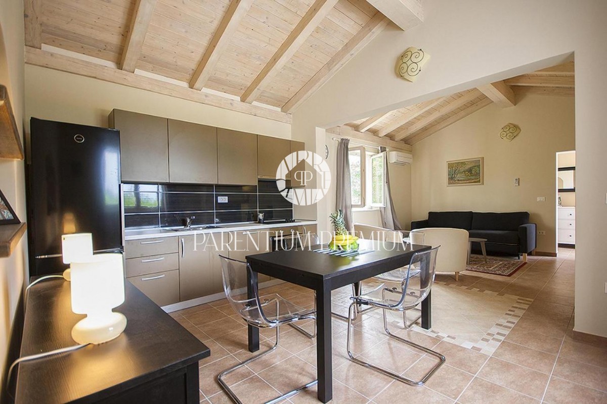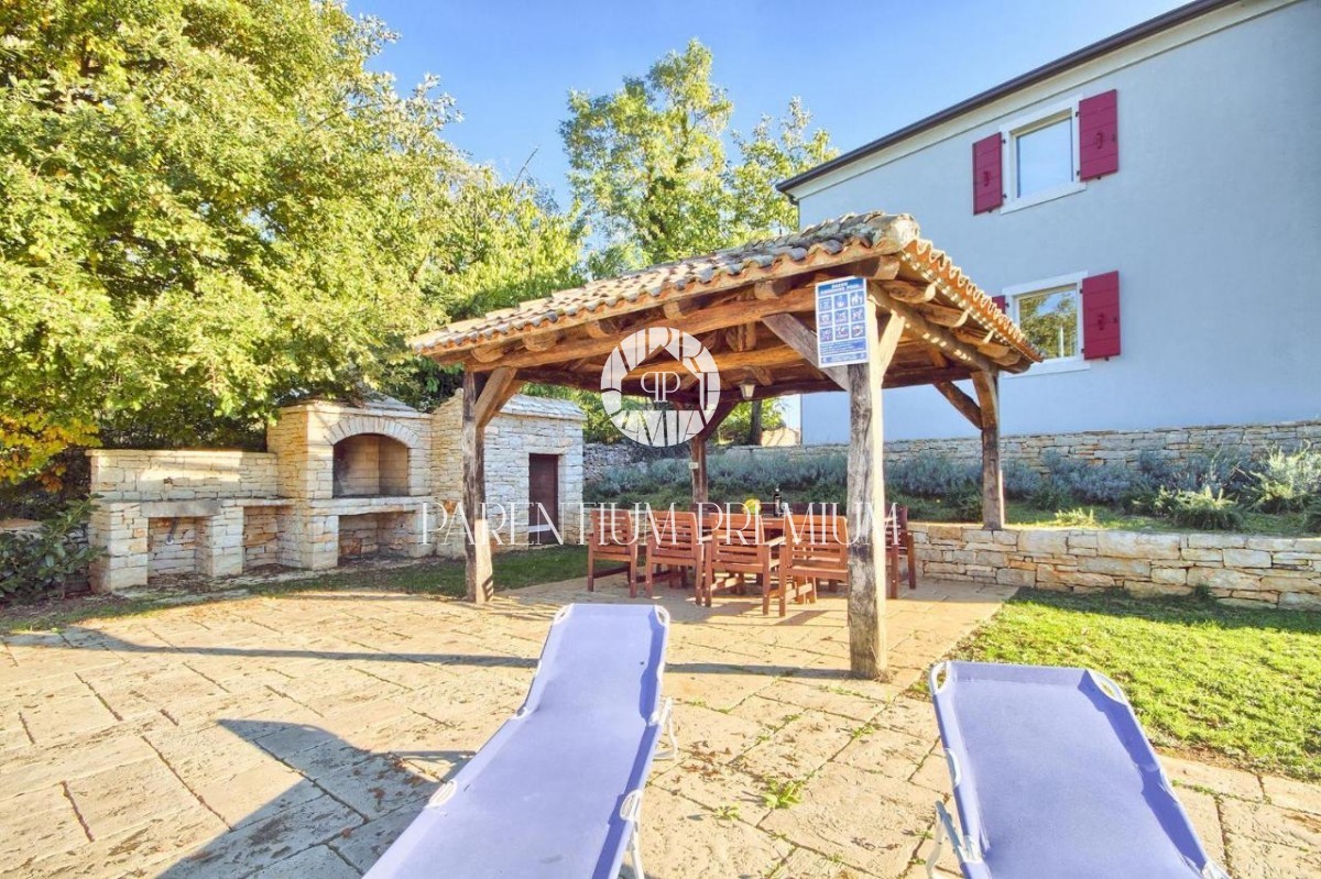 Poreč, Istra Na samo 15 km od prvih plaža, u malom selu koj pruža potpuni mir smjestila se ova prekrasna kuća sa dva zasebna stana. Kuća površine 170 m2, prostire se na dvije etaže od kojih svaka čini jednu stambenu jedinicu sa zasebnim ulazom. Svaki se