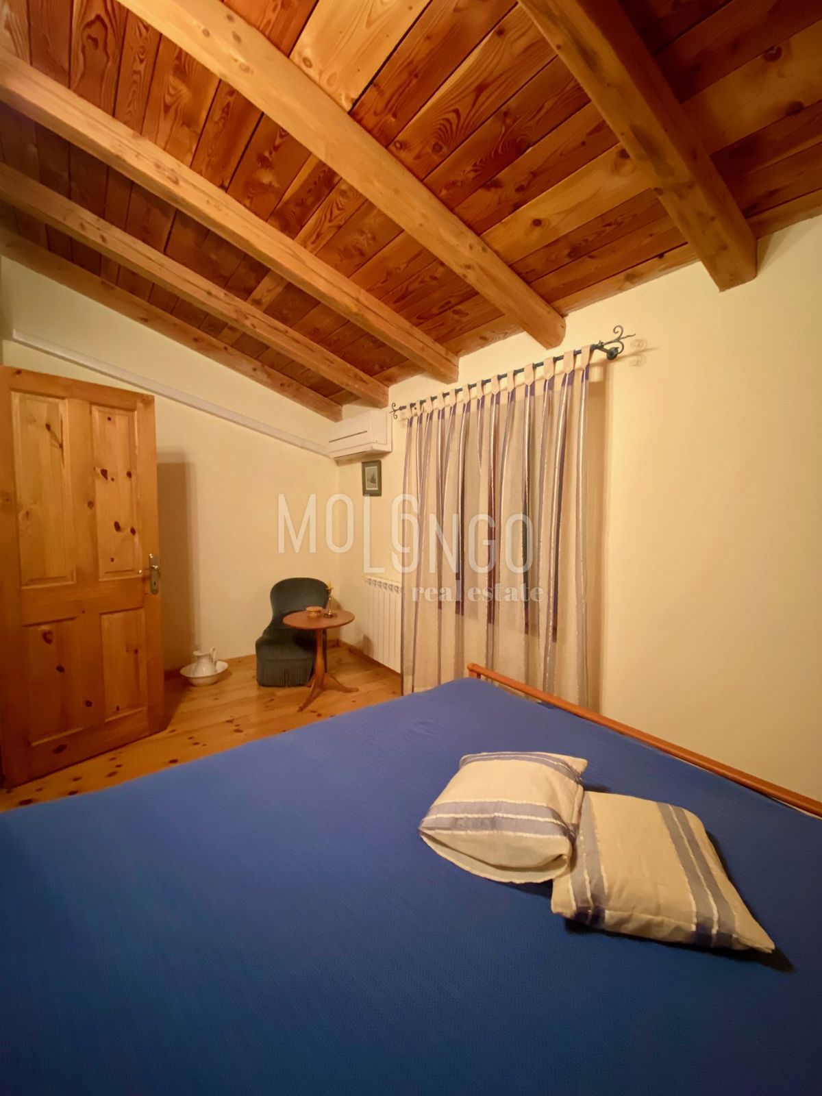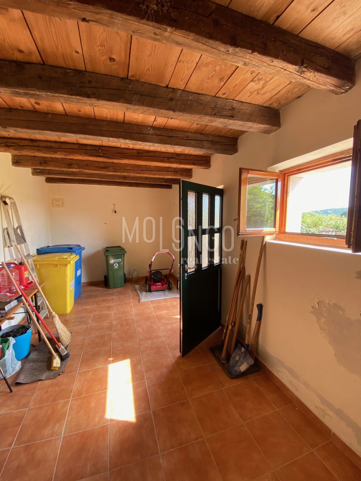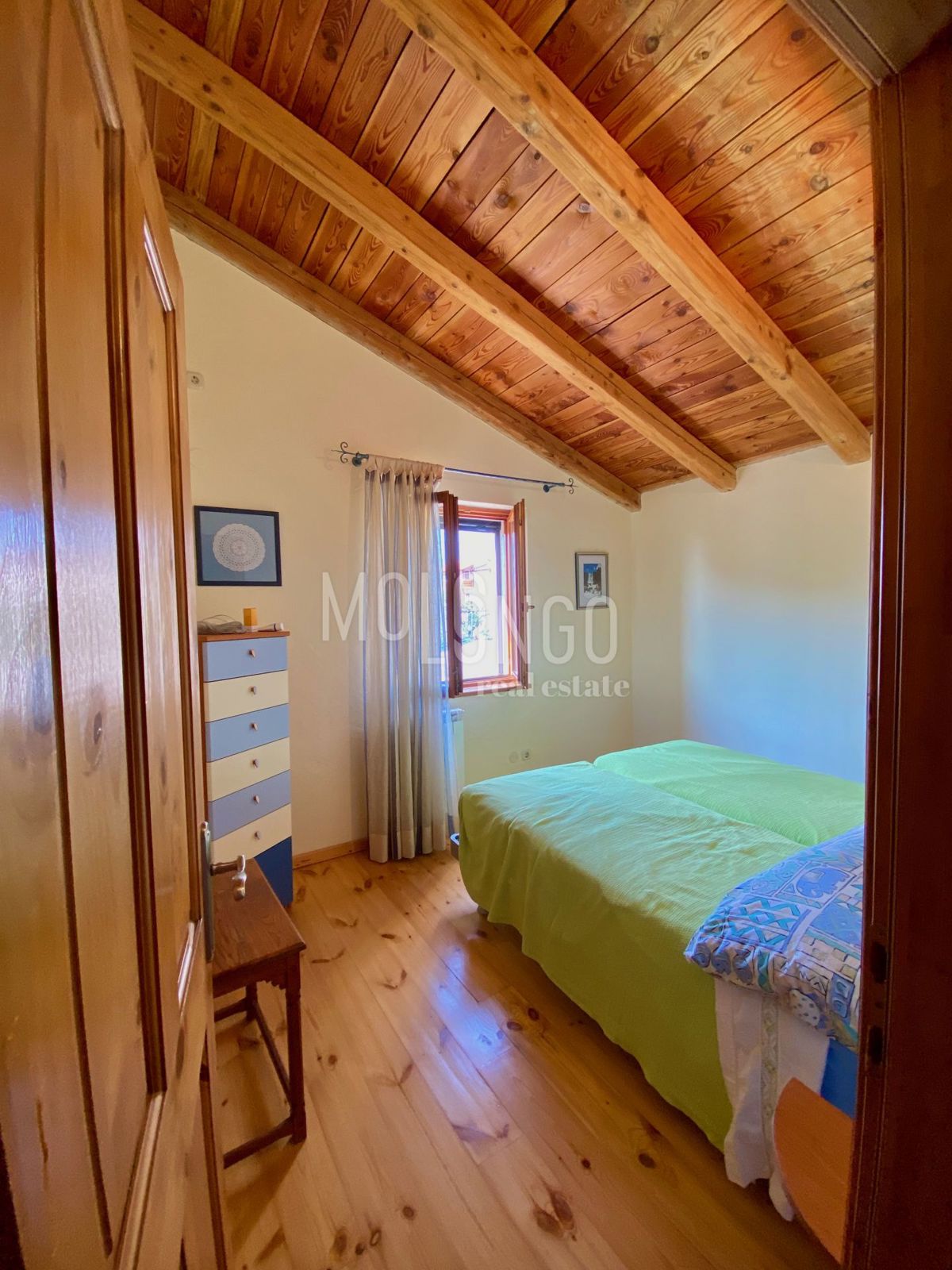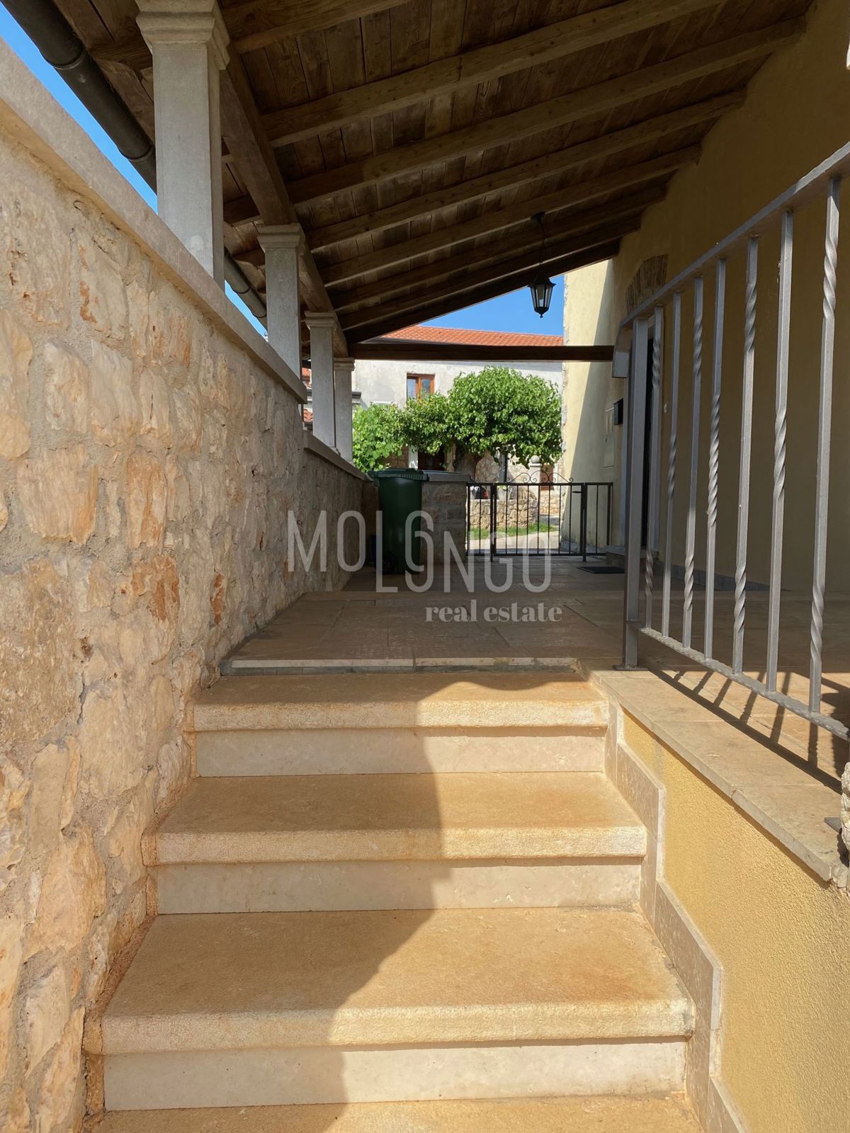 Samo 4 km od mora dobili smo u ponudu šarmantnu dvojnu kamenu kuću. Kuća je obnovljena prije par godina. Kuća se proteže na tri etaže. U prizemlju se nalazi dnevni boravak s kaminom, prostrana kuhinja i blagovaonica, sanitarni čvor, dok se iz dnevnog bor
