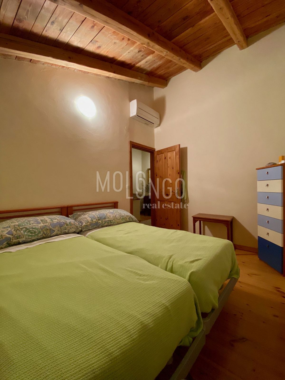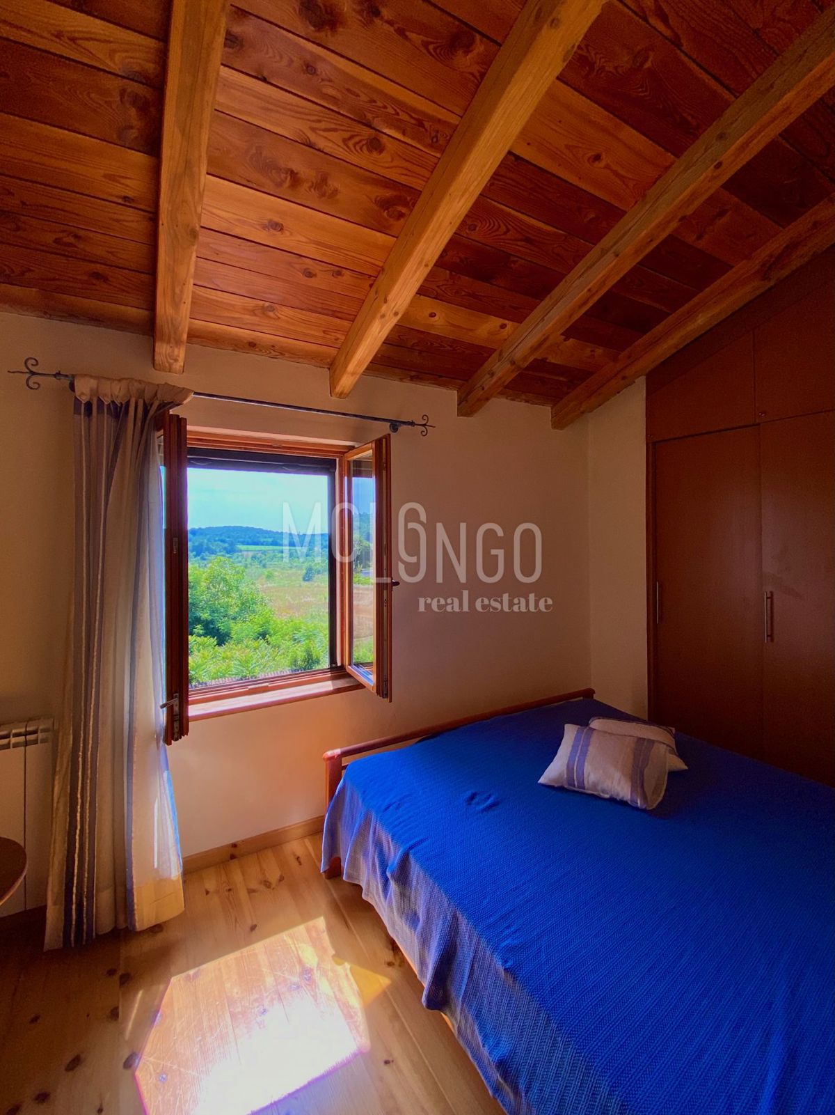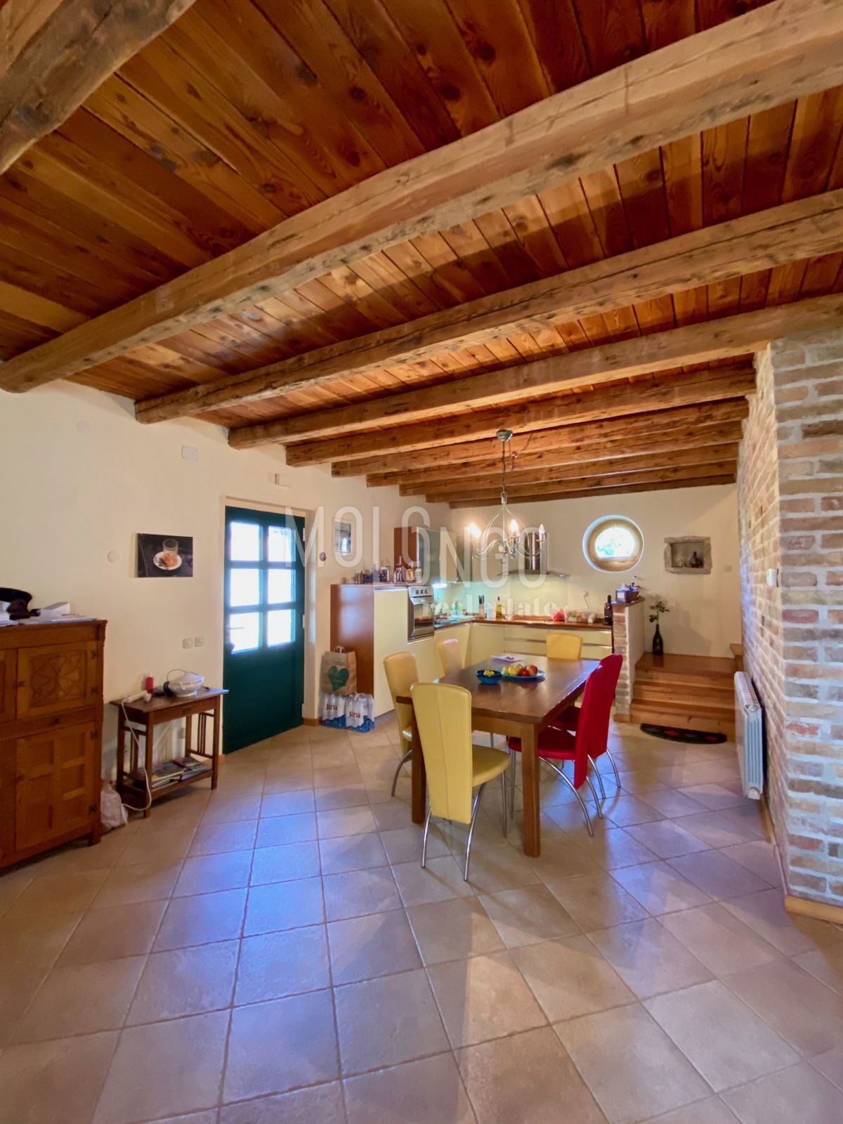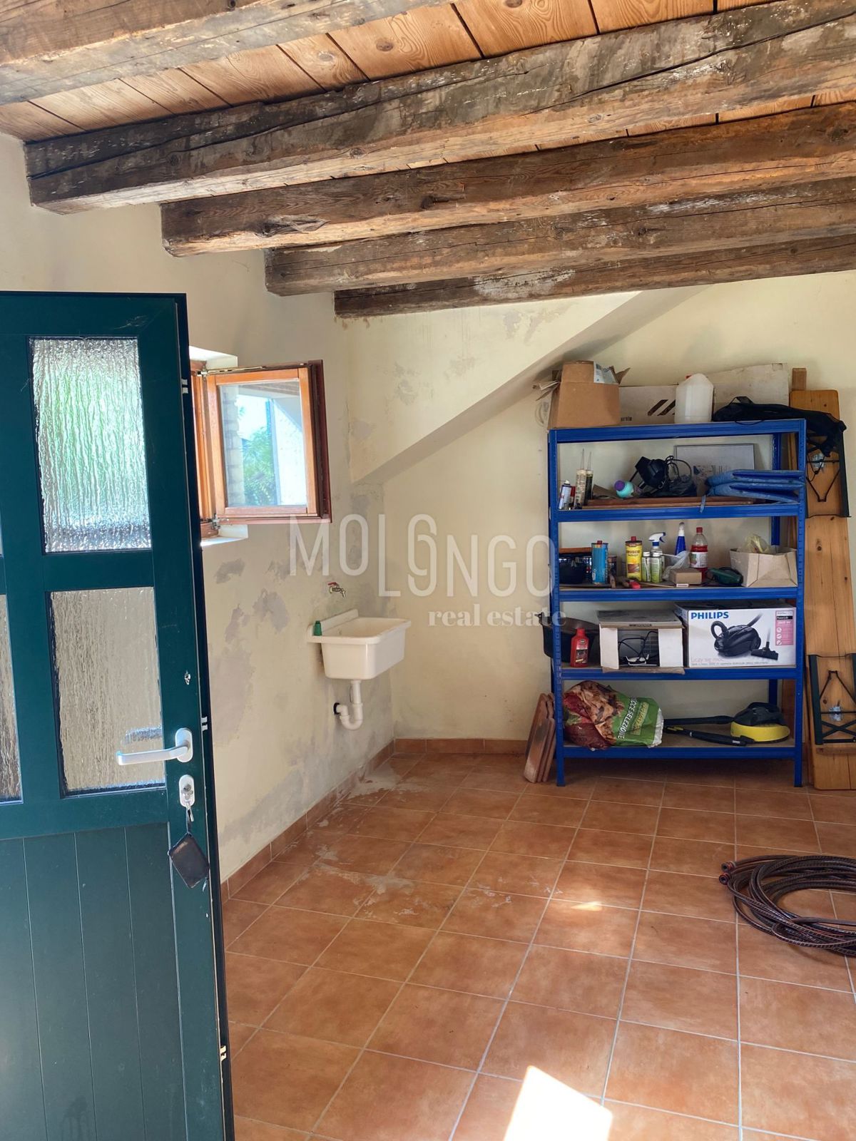 Samo 4 km od mora dobili smo u ponudu šarmantnu dvojnu kamenu kuću. Kuća je obnovljena prije par godina. Kuća se proteže na tri etaže. U prizemlju se nalazi dnevni boravak s kaminom, prostrana kuhinja i blagovaonica, sanitarni čvor, dok se iz dnevnog bor
