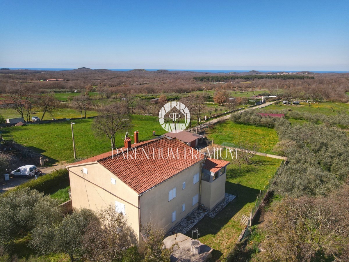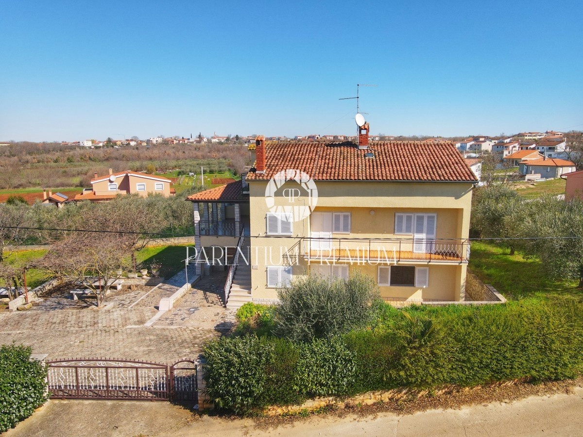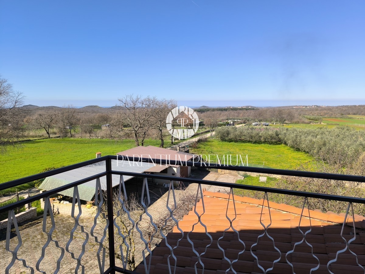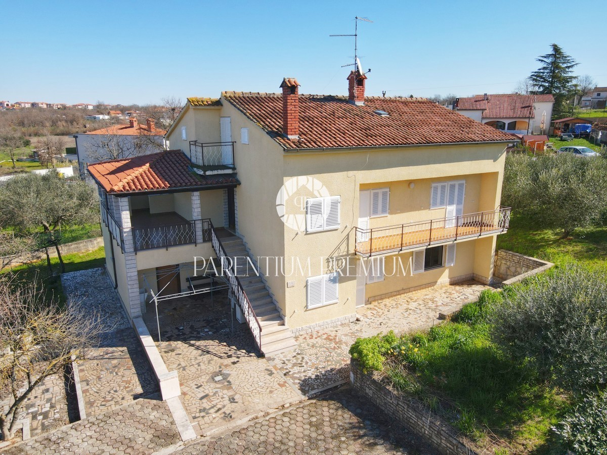 Istra, Poreč okolica Prodaje se kuća sa dva stana i panoramskim pogledom na okolinu i more. Kuća se prostire na 3 etaže i ima 333m2 brutto površine, a 282m2 netto površine. U prizemlju se nalazi koji se sastoji od ulaznog hodnika, prostranog dnevnog bora