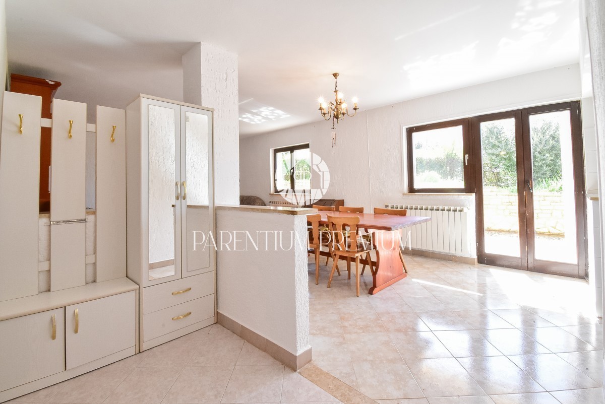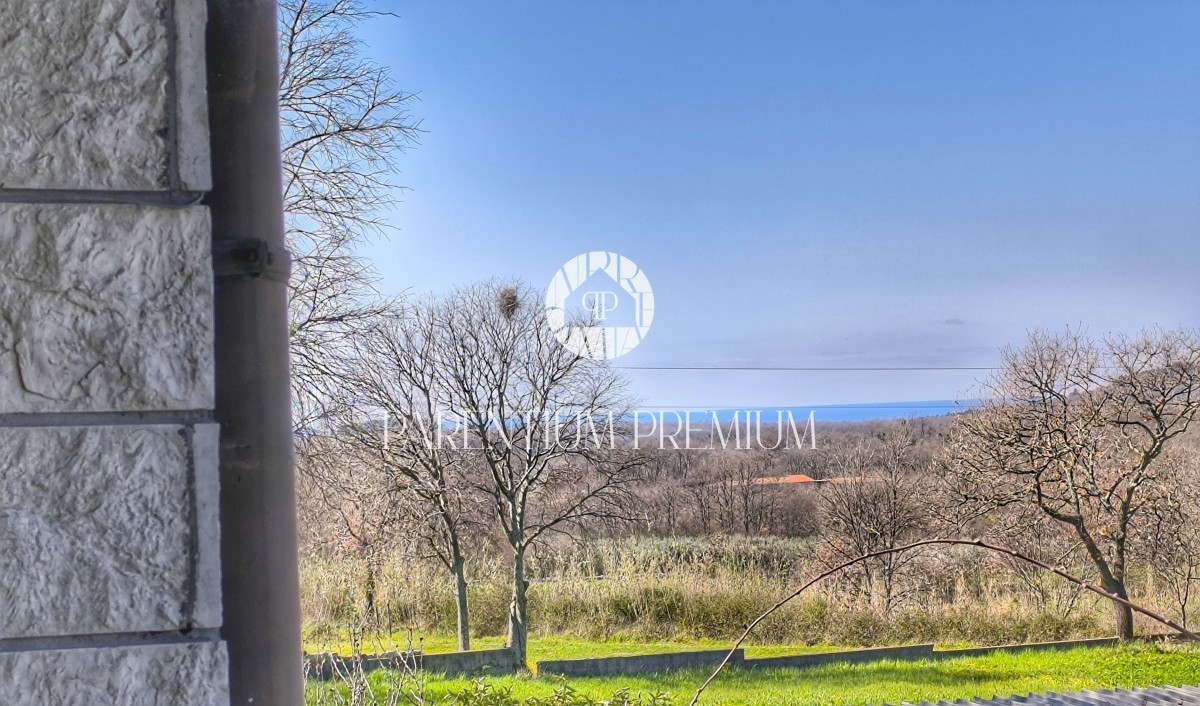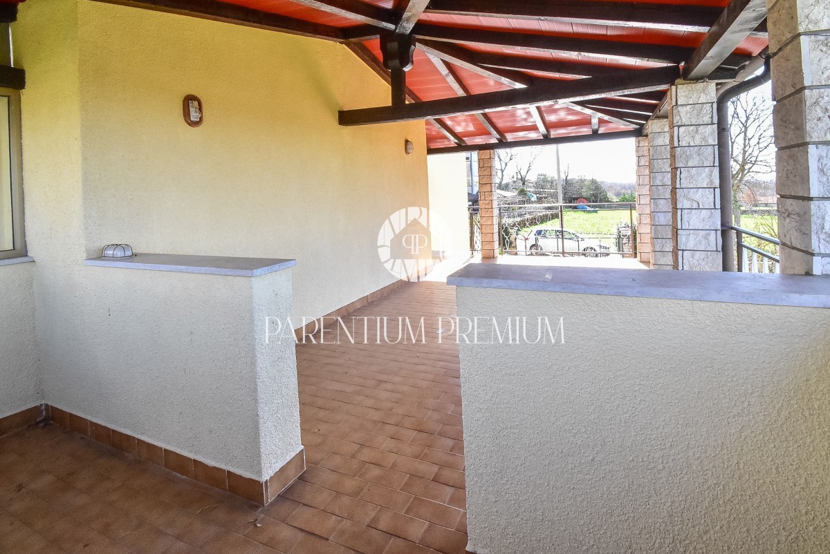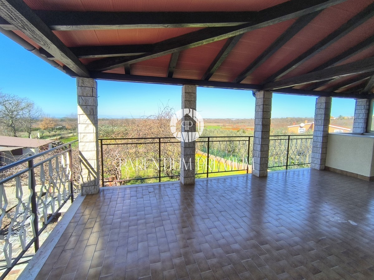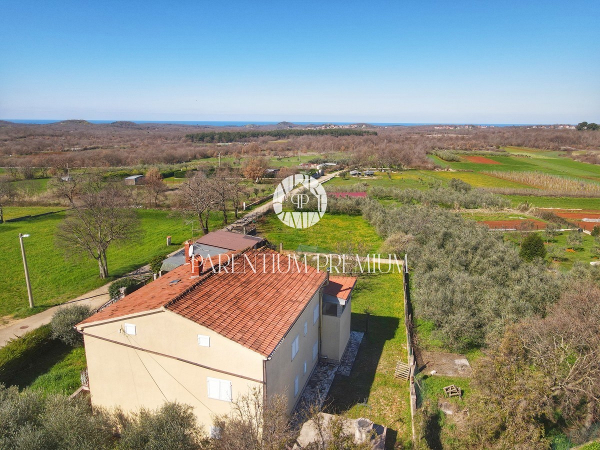 Istra, Poreč okolica Prodaje se kuća sa dva stana i panoramskim pogledom na okolinu i more. Kuća se prostire na 3 etaže i ima 333m2 brutto površine, a 282m2 netto površine. U prizemlju se nalazi koji se sastoji od ulaznog hodnika, prostranog dnevnog bora