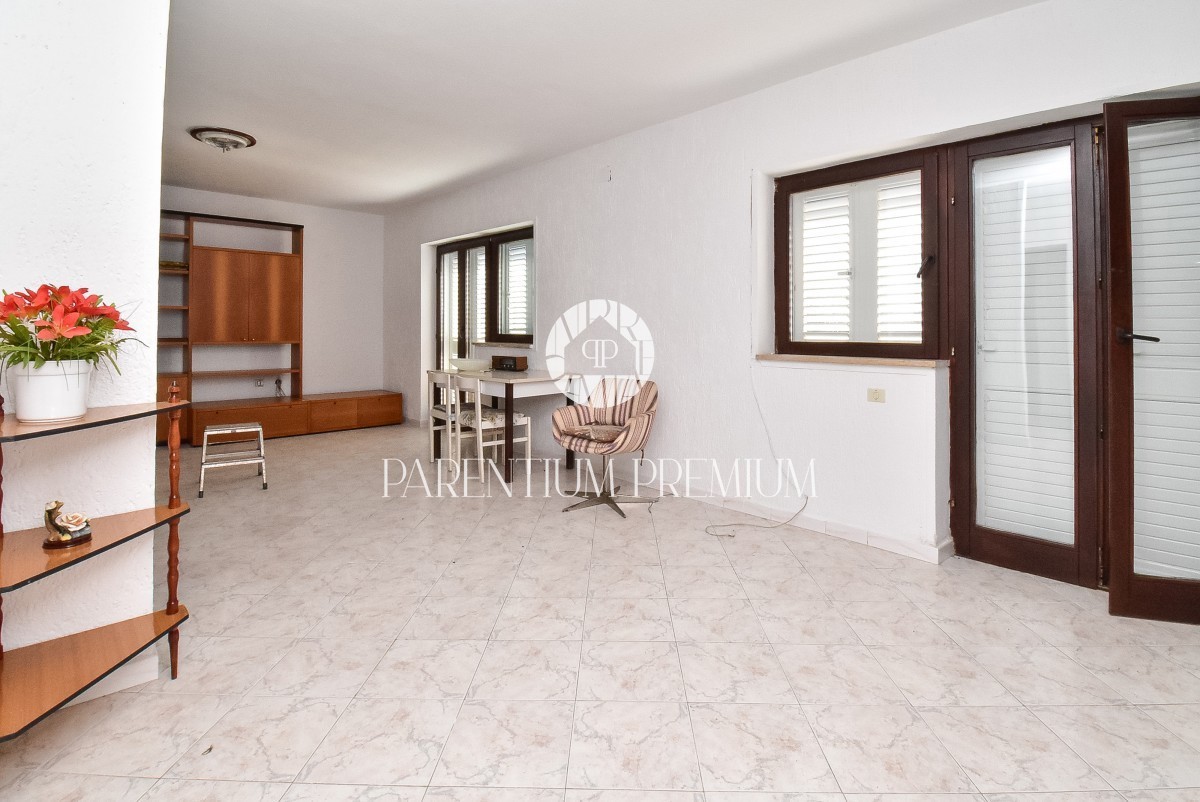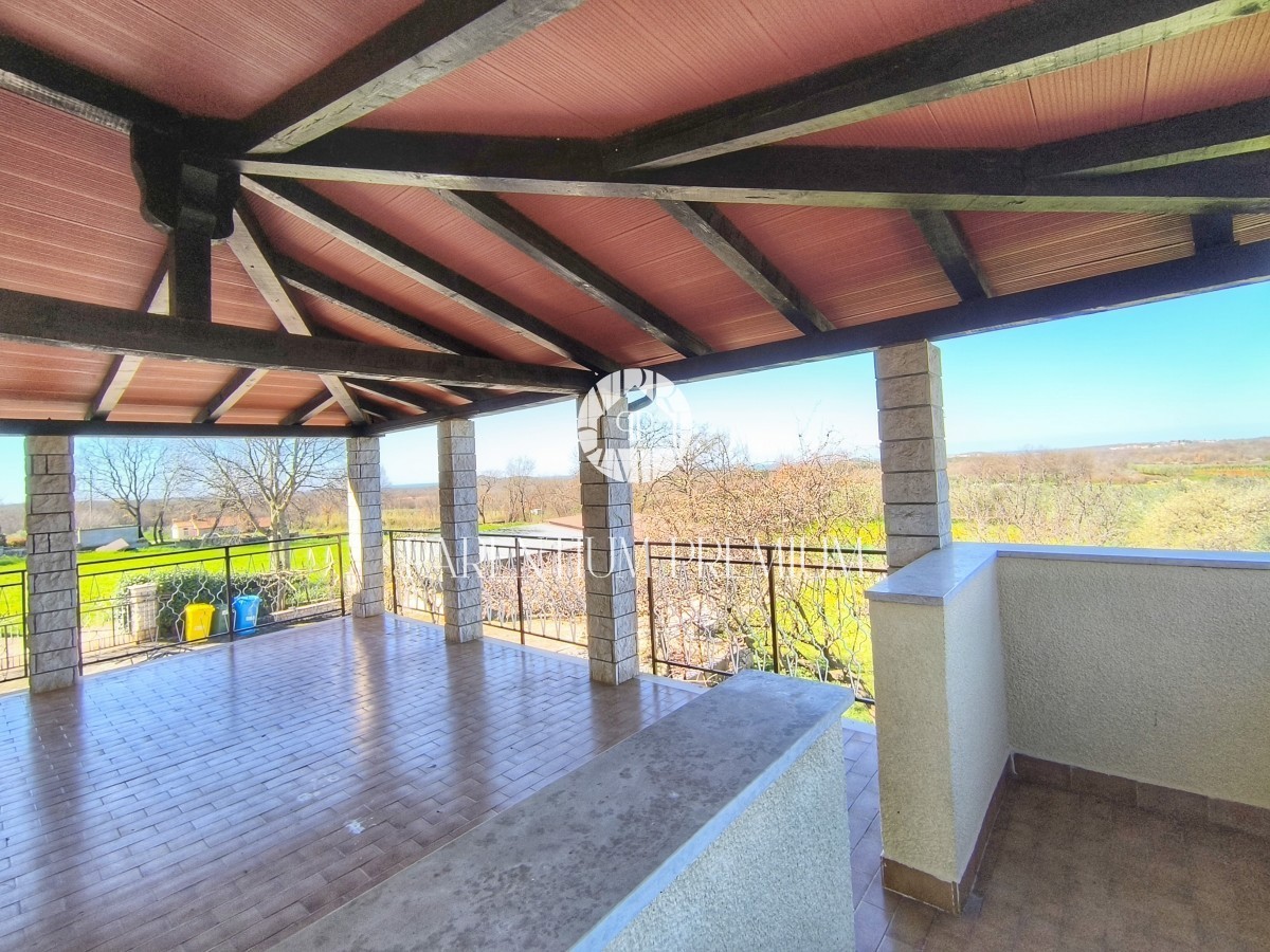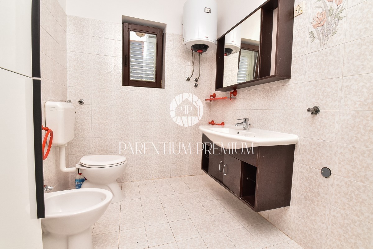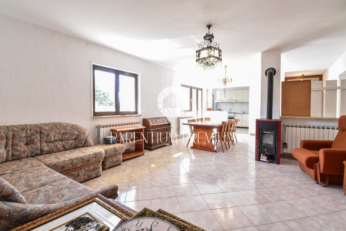 Istra, Poreč okolica Prodaje se kuća sa dva stana i panoramskim pogledom na okolinu i more. Kuća se prostire na 3 etaže i ima 333m2 brutto površine, a 282m2 netto površine. U prizemlju se nalazi koji se sastoji od ulaznog hodnika, prostranog dnevnog bora