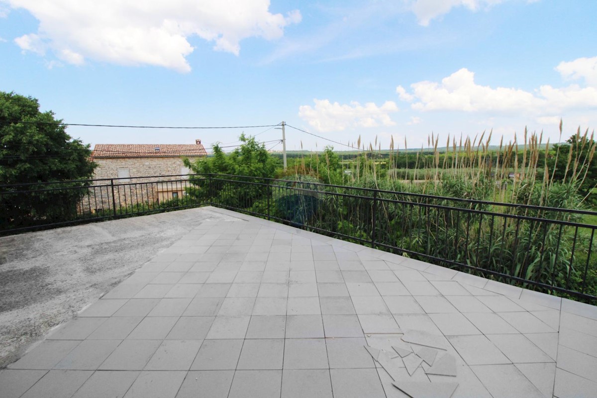Prodaje se nedovršena, samostojeća kuća smještena u malom mjestu na udaljenosti od 6 km od Poreča i mora. Površine je 258 m2 s lijepo uređenom okućnicom od 911 m2. Trenutno se u prizemlju nalazi ulazni hodnik, dnevni boravak s blagovaonom i kuhinjom, spre