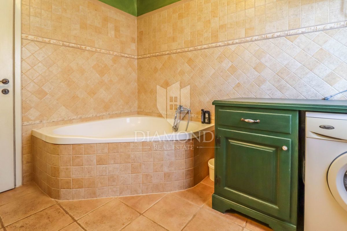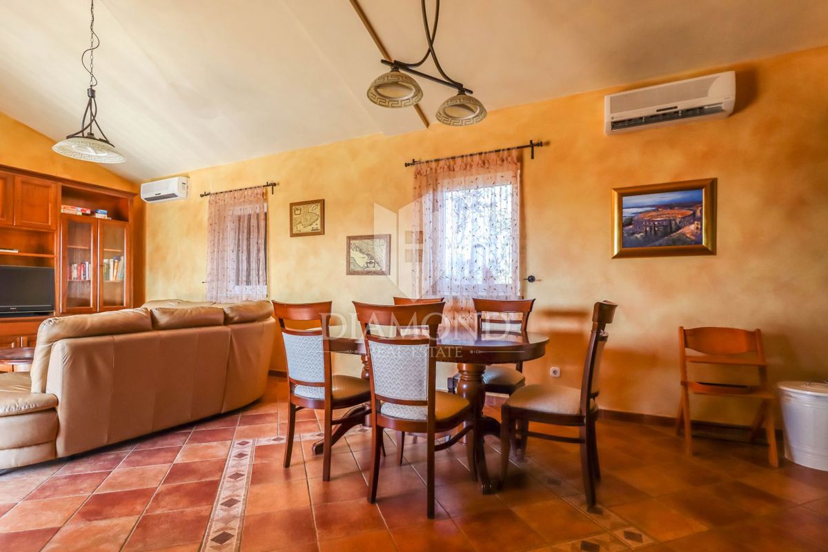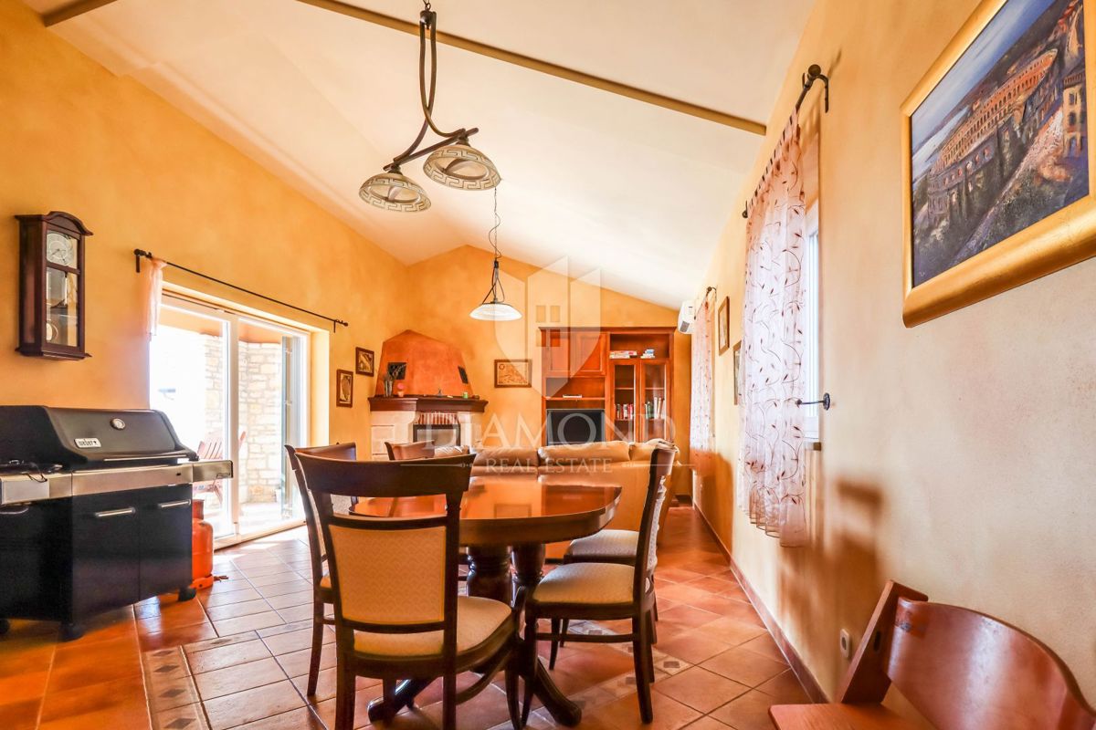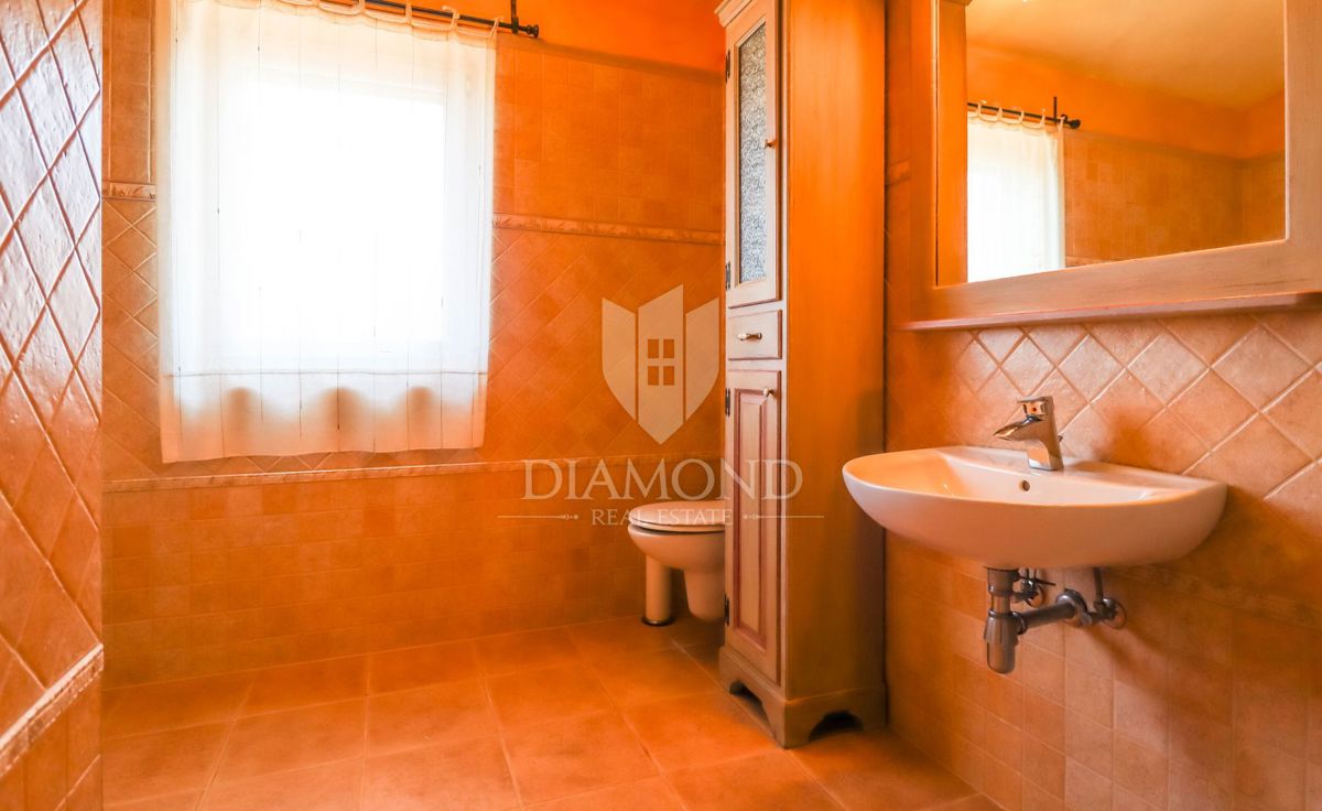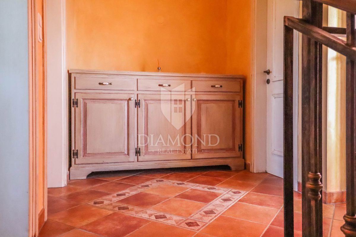 Poreč, okolica Prodaje se kamena kuća sa bazenom u mirnom mjestu udaljenom od grada Poreča 8km i 5km od prvih plaža. Kuća se smjestila na zemljištu od 750m2 i njena površina iznosi 175m2. Kuća se prostire kroz dvije etaže. Prizemlje kuće sastoji se od