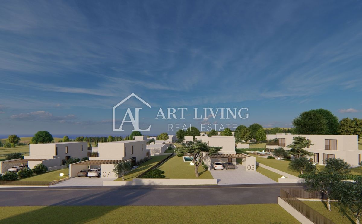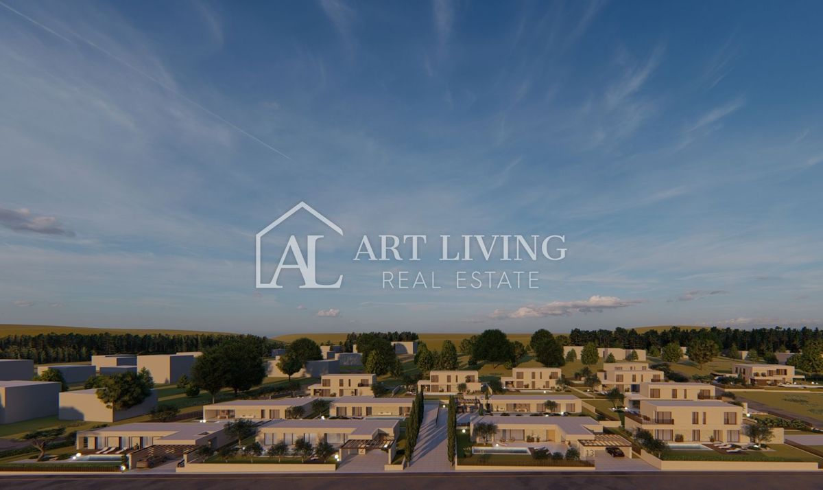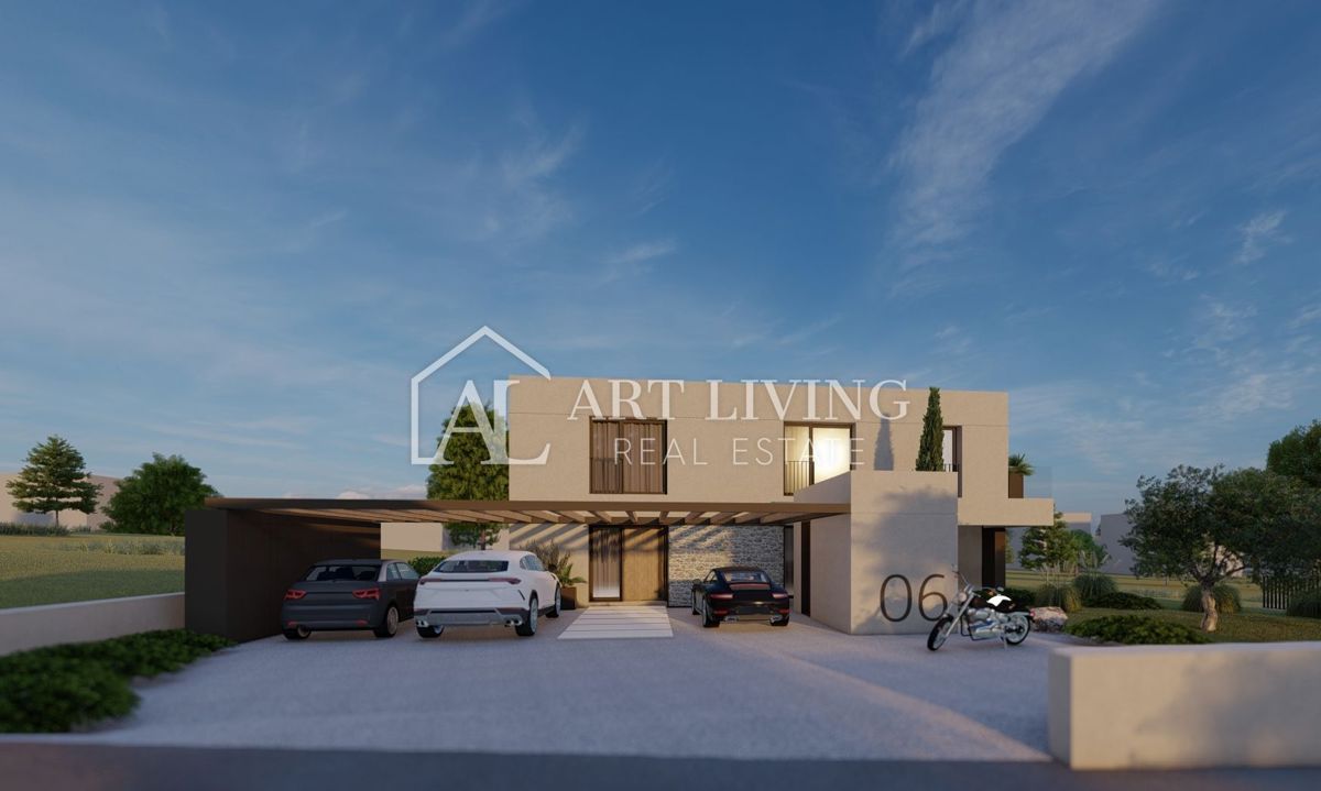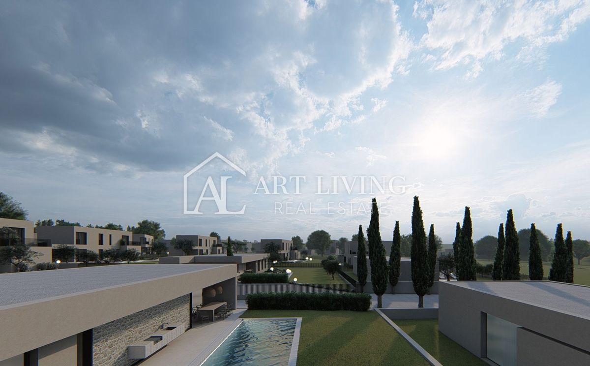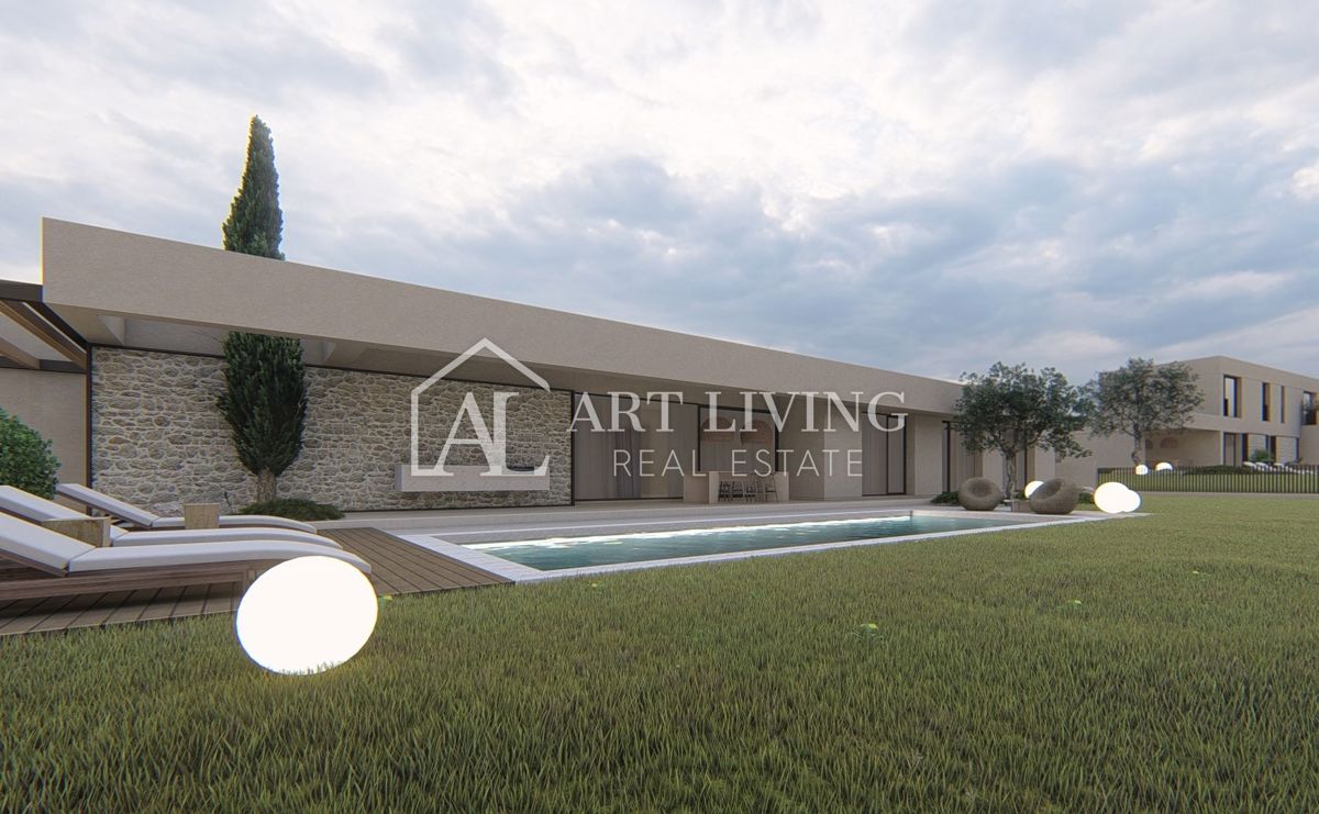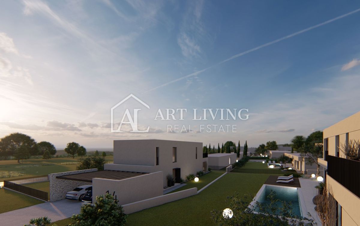 Poreč-okolica, prodaje se luksuzna vila u novom rezidencijalnom naselju u okolici Poreča. Ovo luksuzno naselje od ukupno 14 villa dizajnirano u modernom mediteranskom arhitektonskom stilu savršeno se uklapa u okoliš svojom arhitekturom i vrtovima, s po
