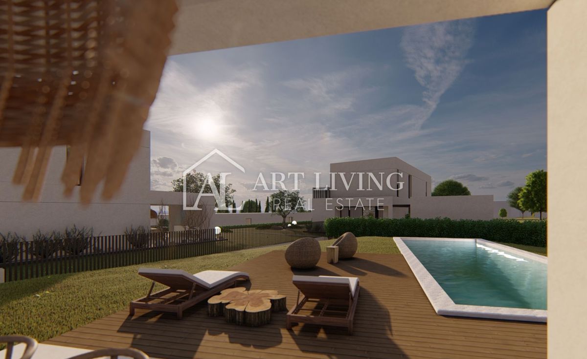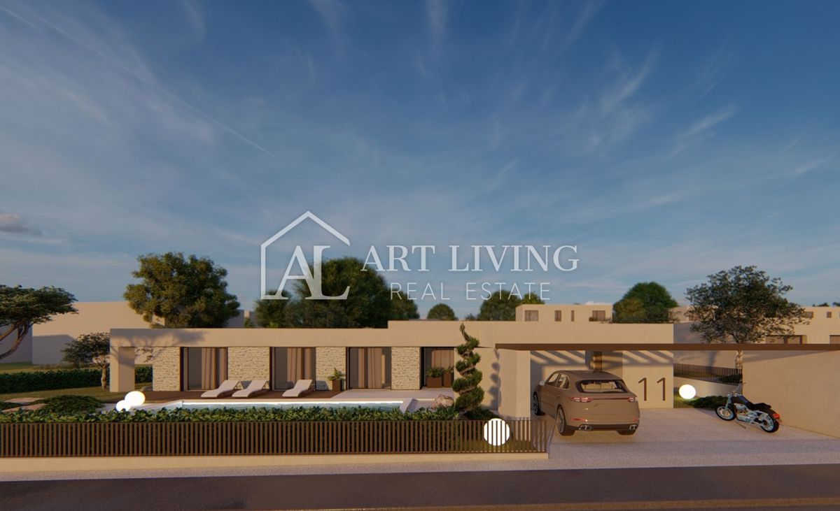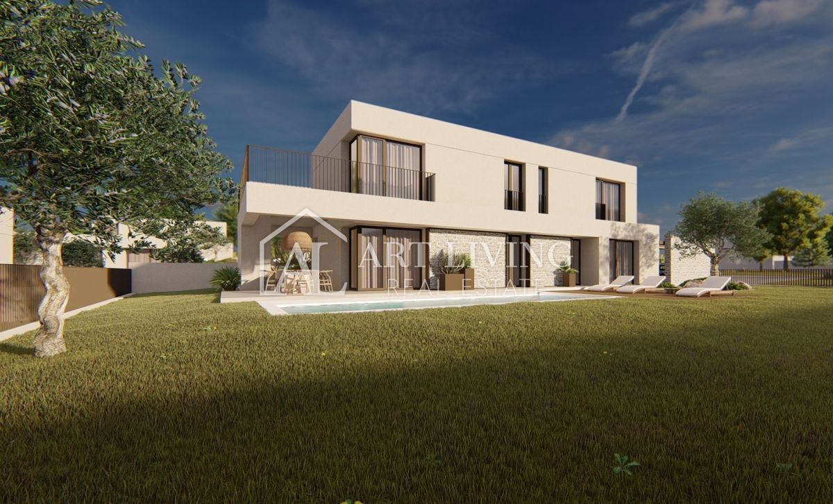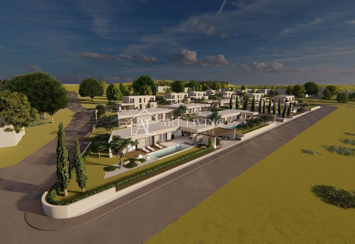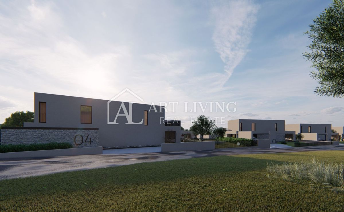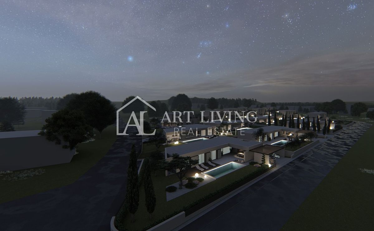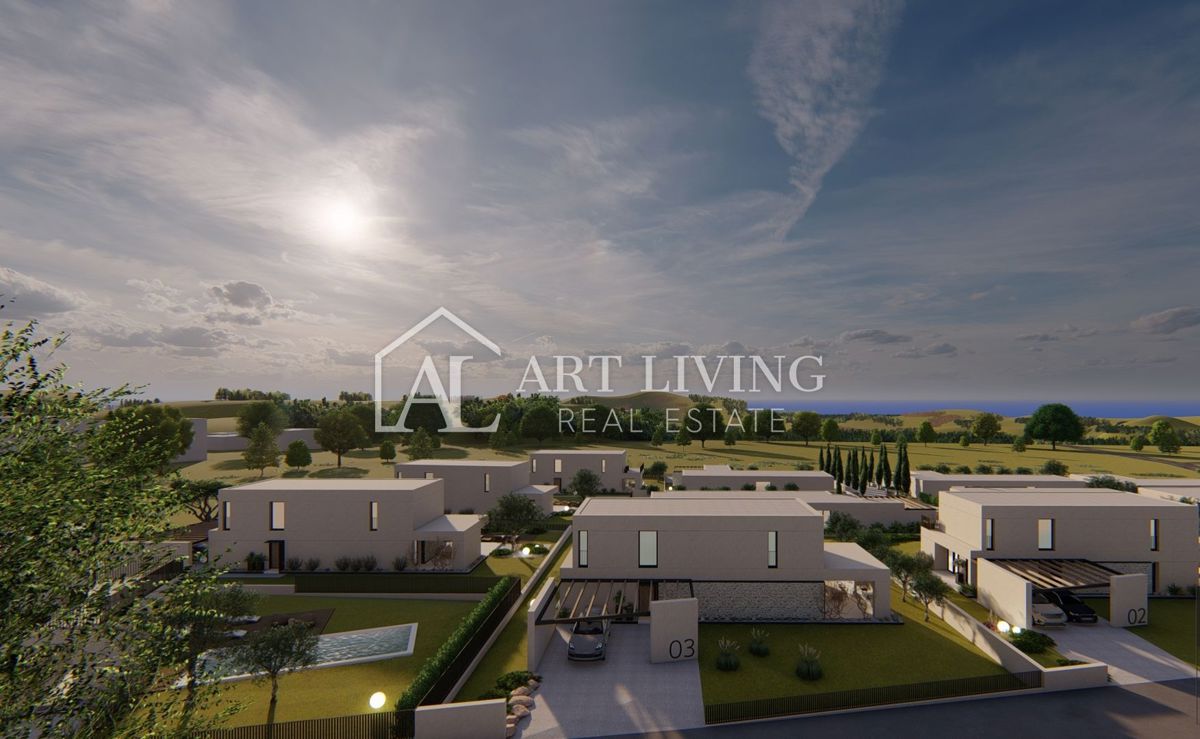 Poreč-okolica, prodaje se luksuzna vila u novom rezidencijalnom naselju u okolici Poreča. Ovo luksuzno naselje od ukupno 14 villa dizajnirano u modernom mediteranskom arhitektonskom stilu savršeno se uklapa u okoliš svojom arhitekturom i vrtovima, s po