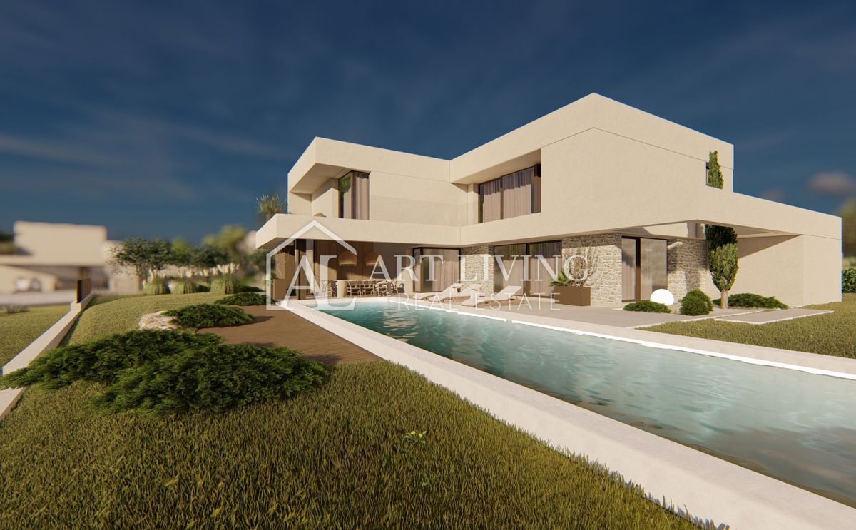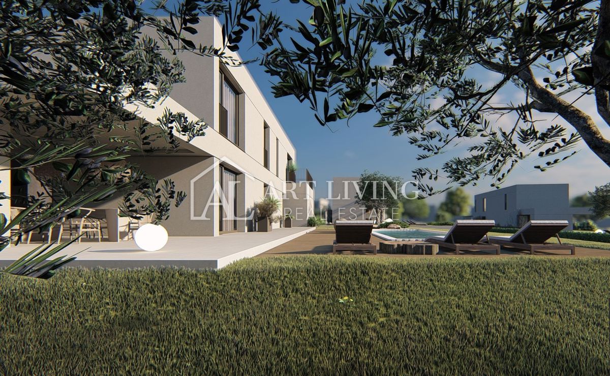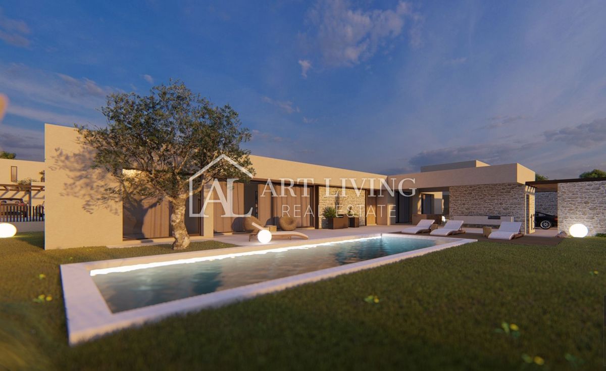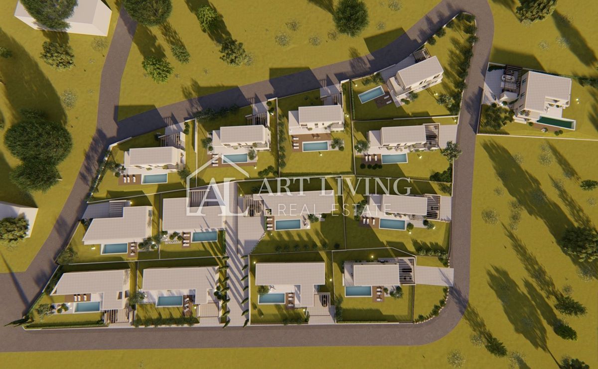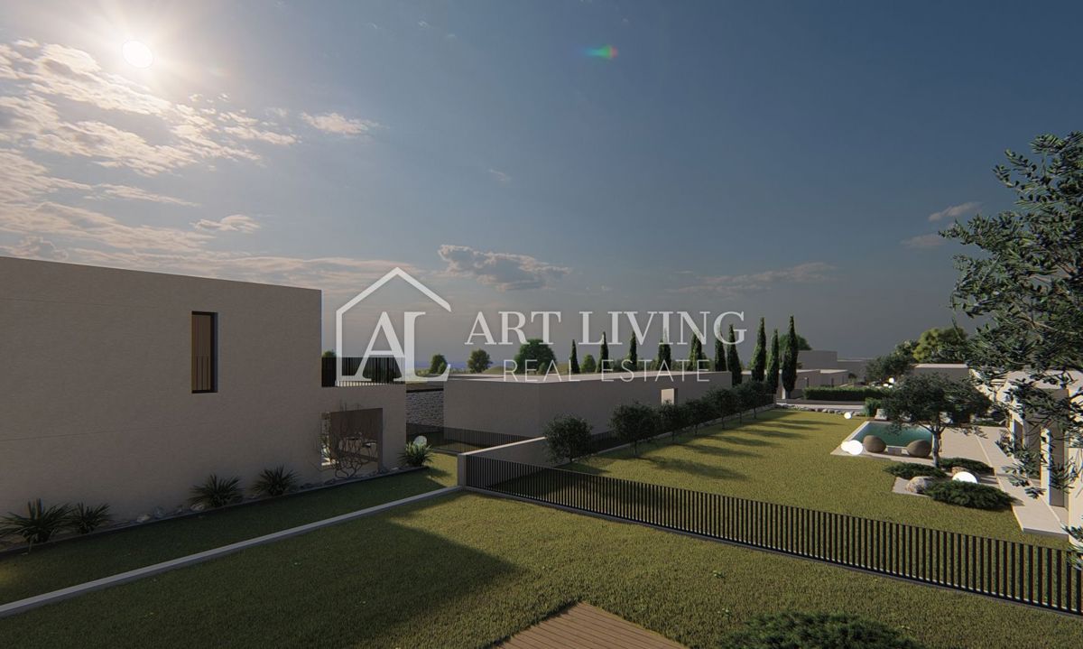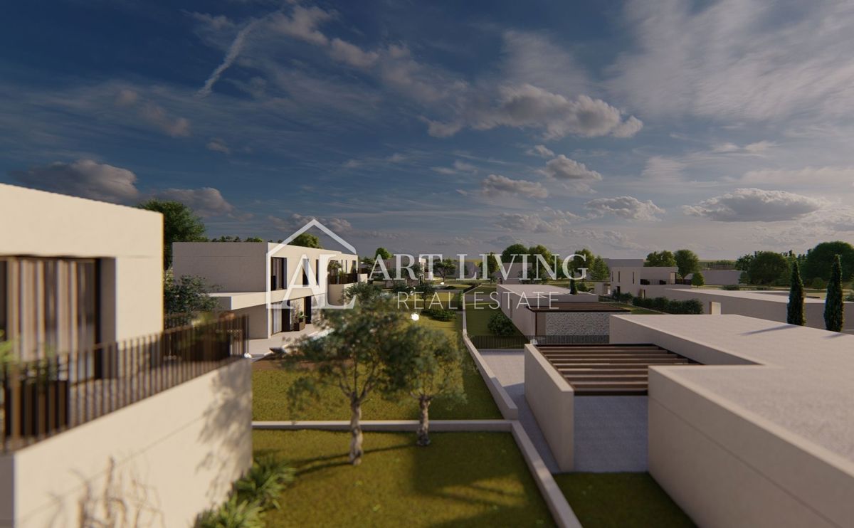 Poreč-okolica, prodaje se luksuzna vila u novom rezidencijalnom naselju u okolici Poreča. Ovo luksuzno naselje od ukupno 14 villa dizajnirano u modernom mediteranskom arhitektonskom stilu savršeno se uklapa u okoliš svojom arhitekturom i vrtovima, s po