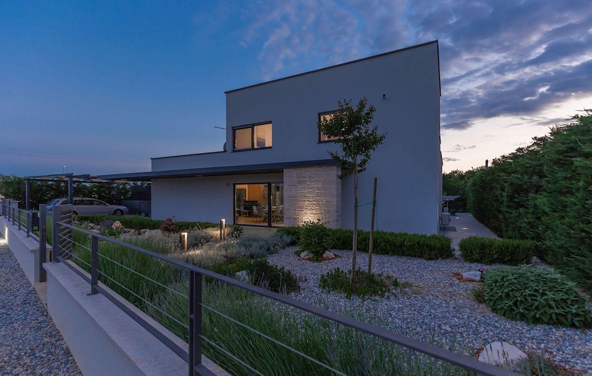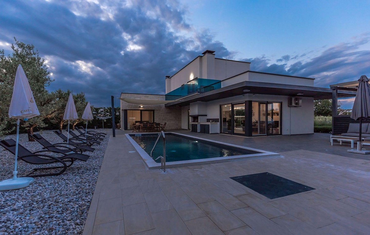 Prodaje se prekrasna villa! Samostojeća vila s bazenom izgrađena je 2018. godine na parceli od 851 m2. Sastoji se od prizemlja i kata te podzemne etaže. Na podzemnoj etaži se nalazi velika konoba s kaminom za druženja, sauna, prostor za fitness i praona.