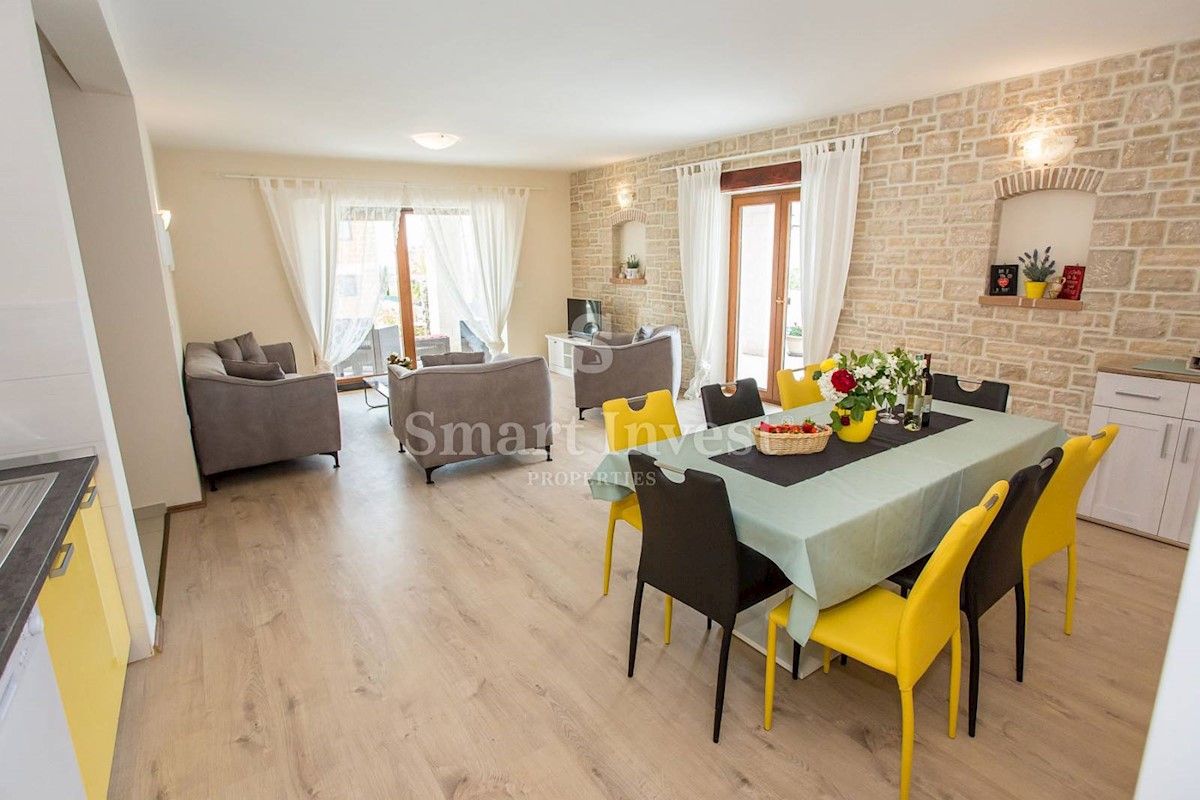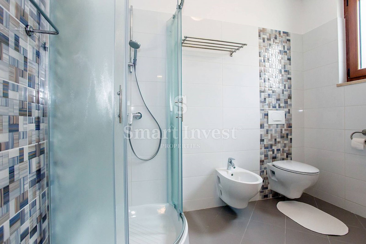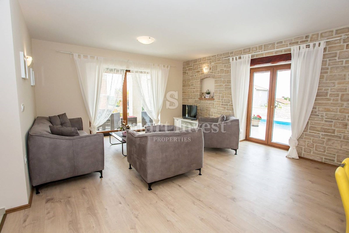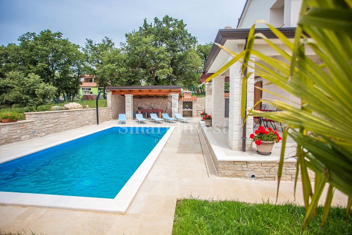 POREČ – 7 km od mora, prekrasna nova vila sa bazenom i pogledom na more u okolici Poreča, 7 km od mora i 11 km od centra Poreča. Vila stambene površine 180 m2 nalazi se na parceli od 464 m2, 4 spavaće sobe, 3 kupaonice. U prizemlju se nalazi prostrani d