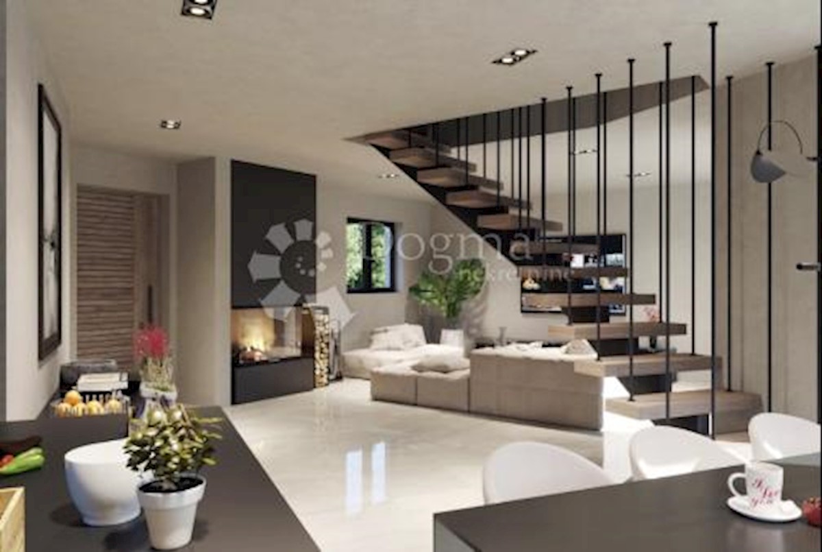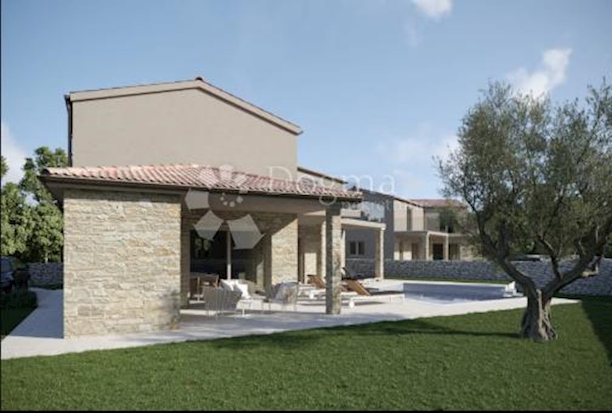 Ova predivna villa smještena je na uzvisini, svega 17km od Poreča i lijepih plaža. Villa je u fazi izgradnje i predviđeni rok završetka je 12/2022. Villa se sastoji od prizemlja i 1. kata. Prizemlje se sastoji od prostranog dnevnog boravka koji ima izlaz