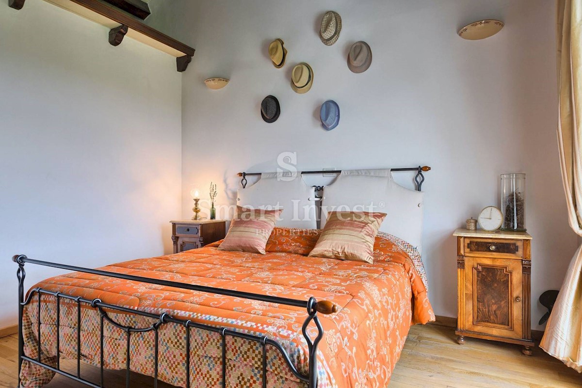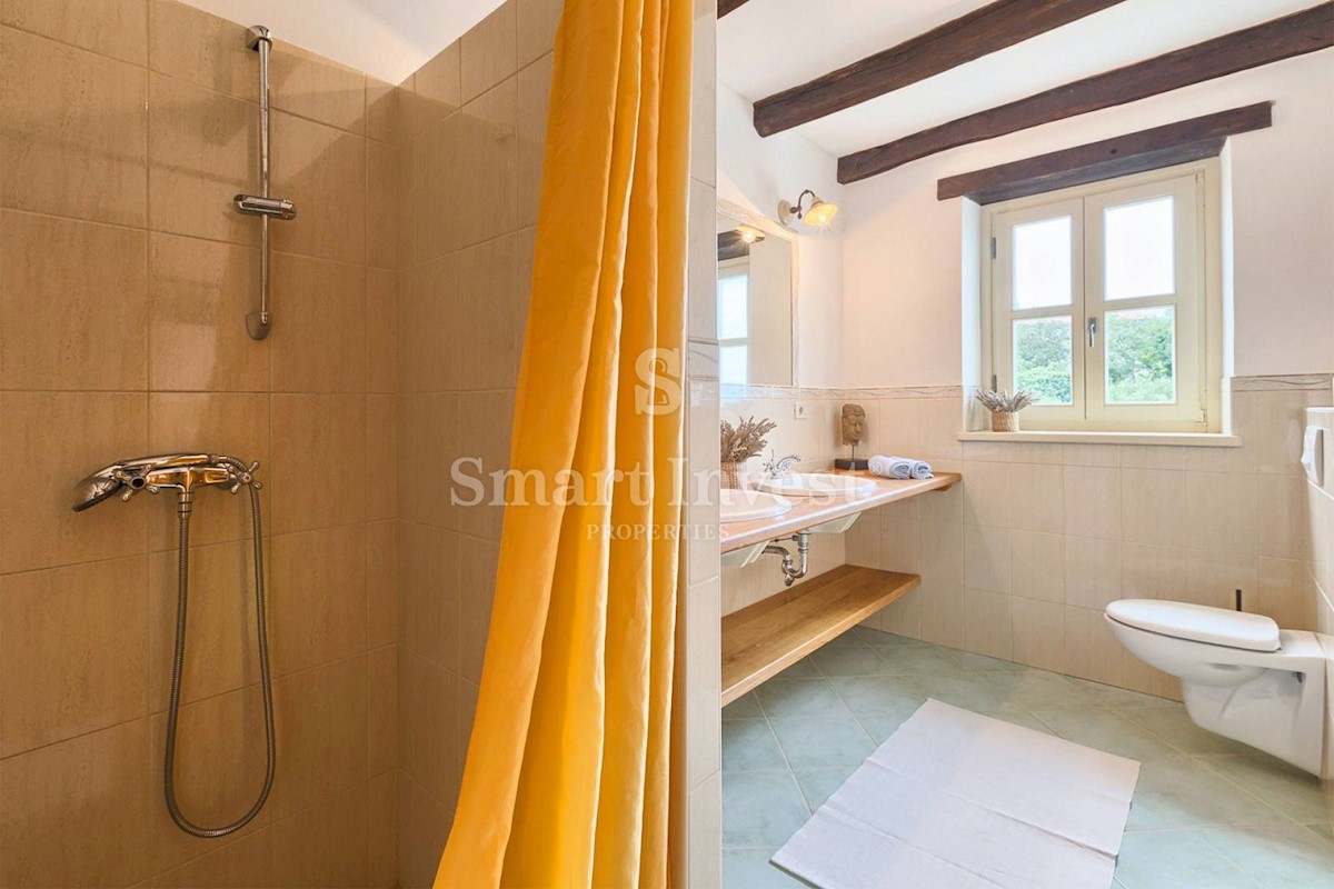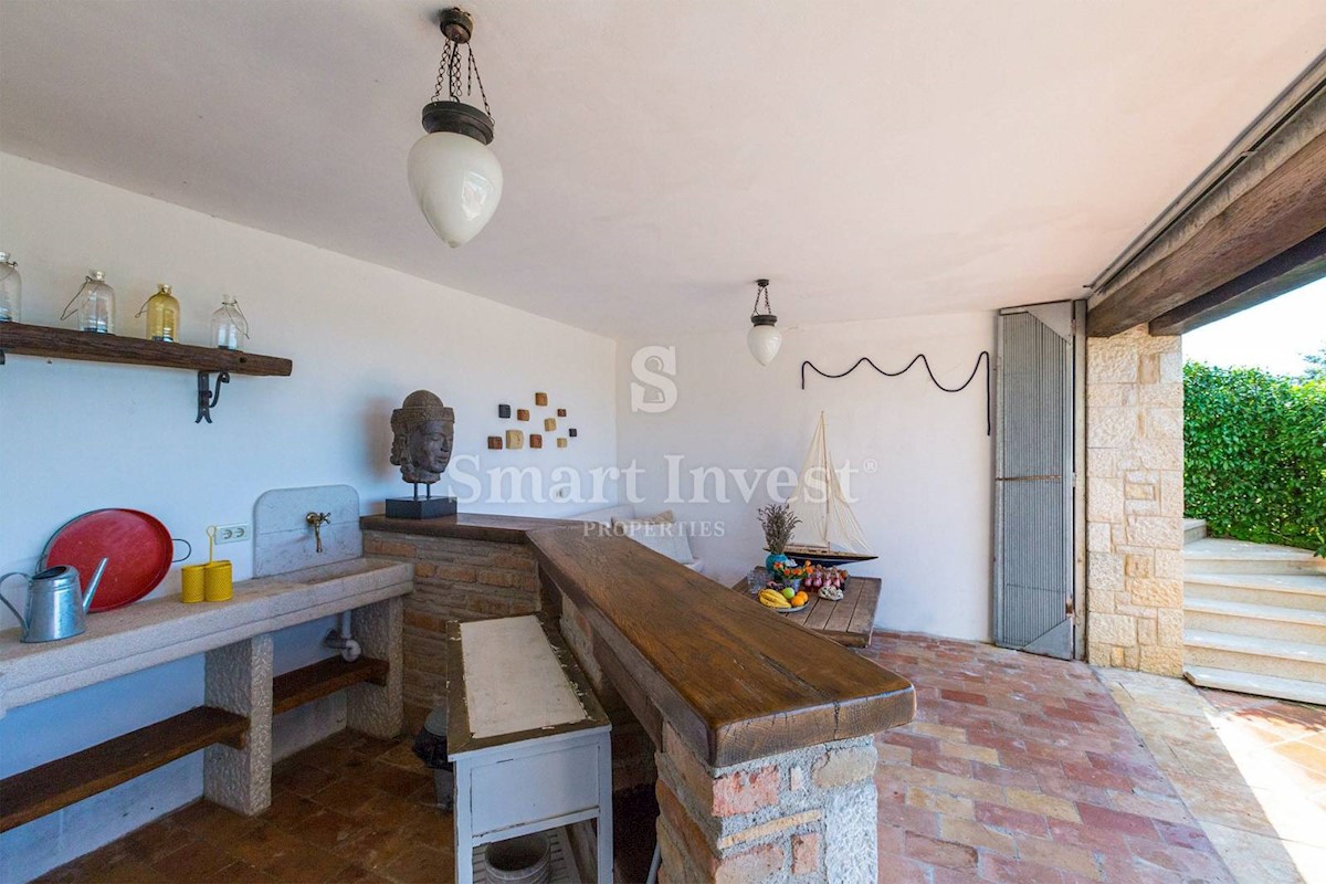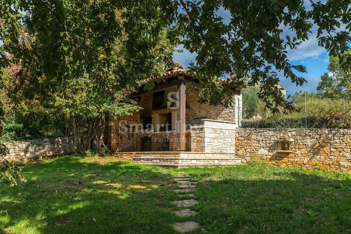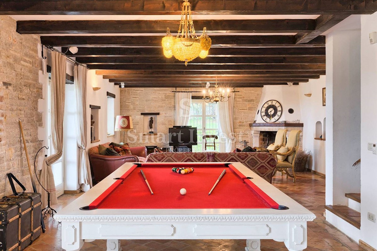 JEDINSTVENA KAMENA VILA S POGLEDOM NA MORE U SRCU ZELENE ISTRE Na prodaju je luksuzno opremljena kamena vila s grijanjim infinity bazenom i očaravajućim pogledom na more i zelenilom na iznimnoj lokaciji u malom Istarskom selu svega 20 minuta vožnje udalj