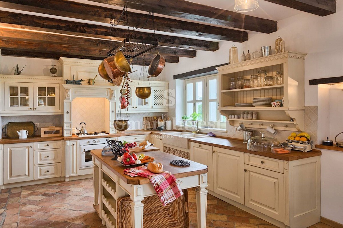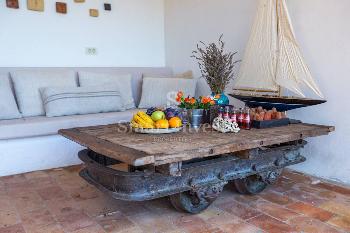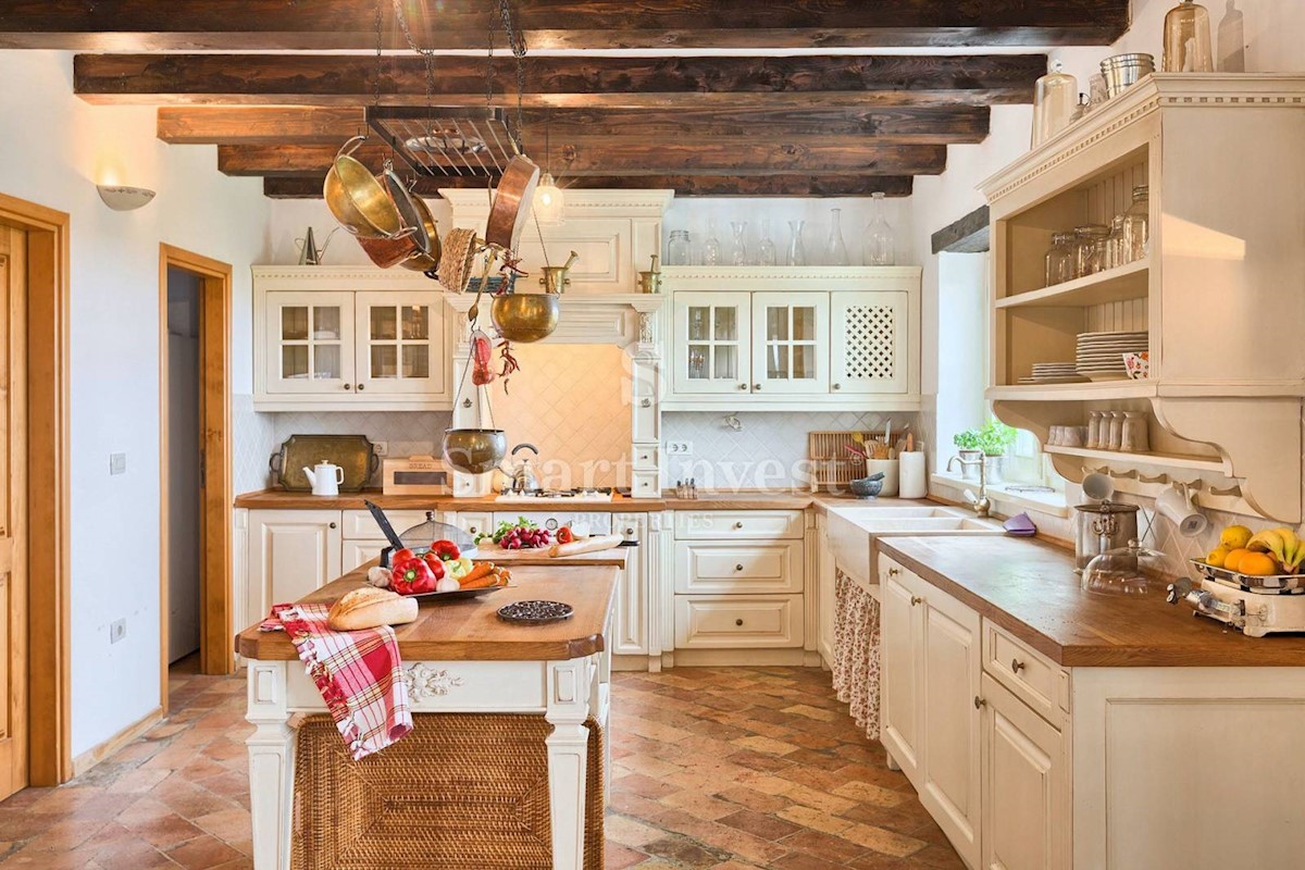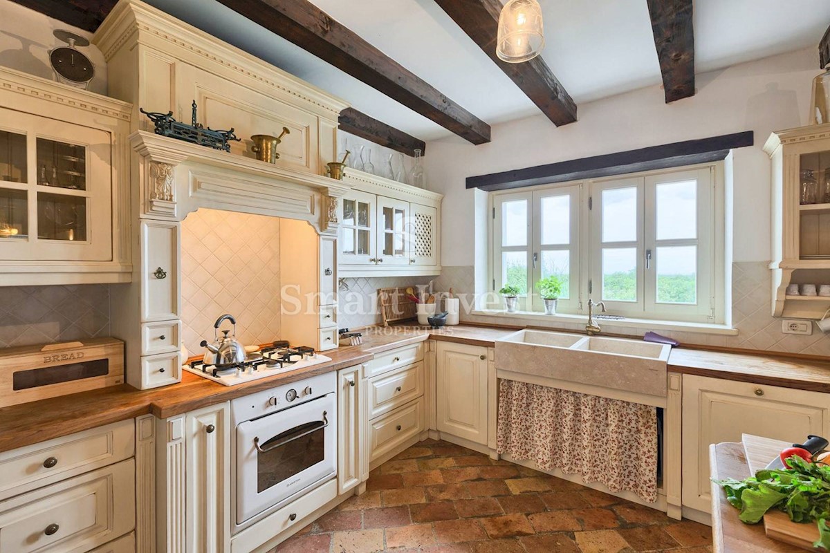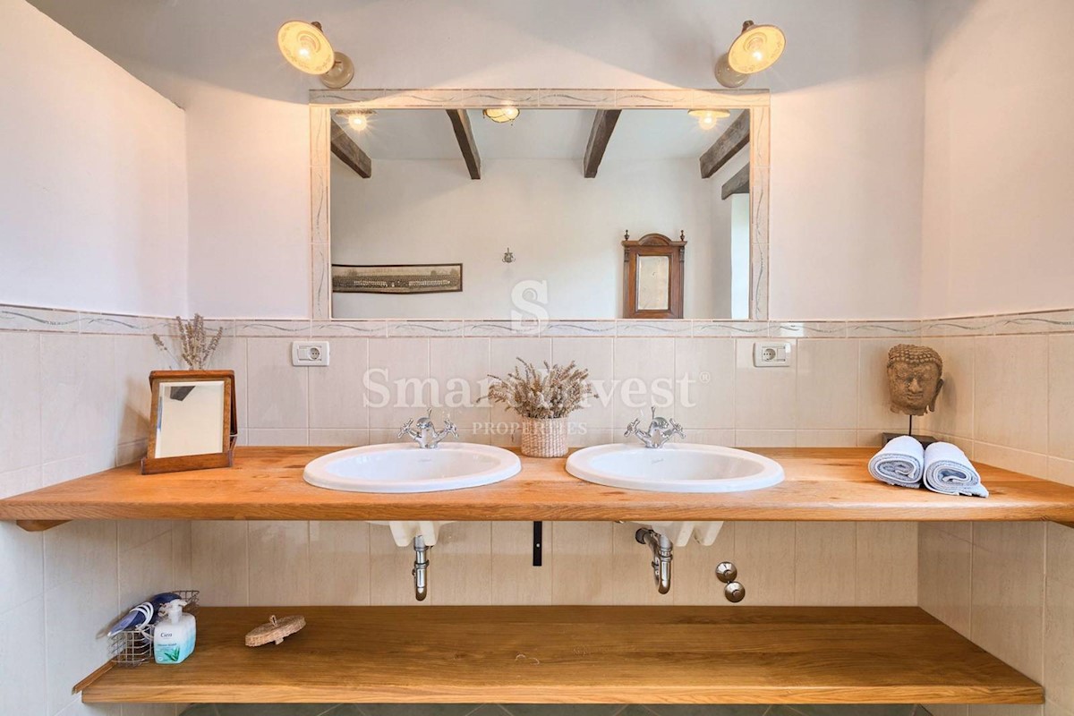 JEDINSTVENA KAMENA VILA S POGLEDOM NA MORE U SRCU ZELENE ISTRE Na prodaju je luksuzno opremljena kamena vila s grijanjim infinity bazenom i očaravajućim pogledom na more i zelenilom na iznimnoj lokaciji u malom Istarskom selu svega 20 minuta vožnje udalj