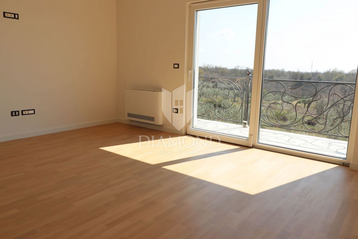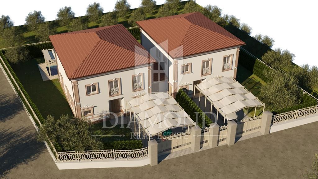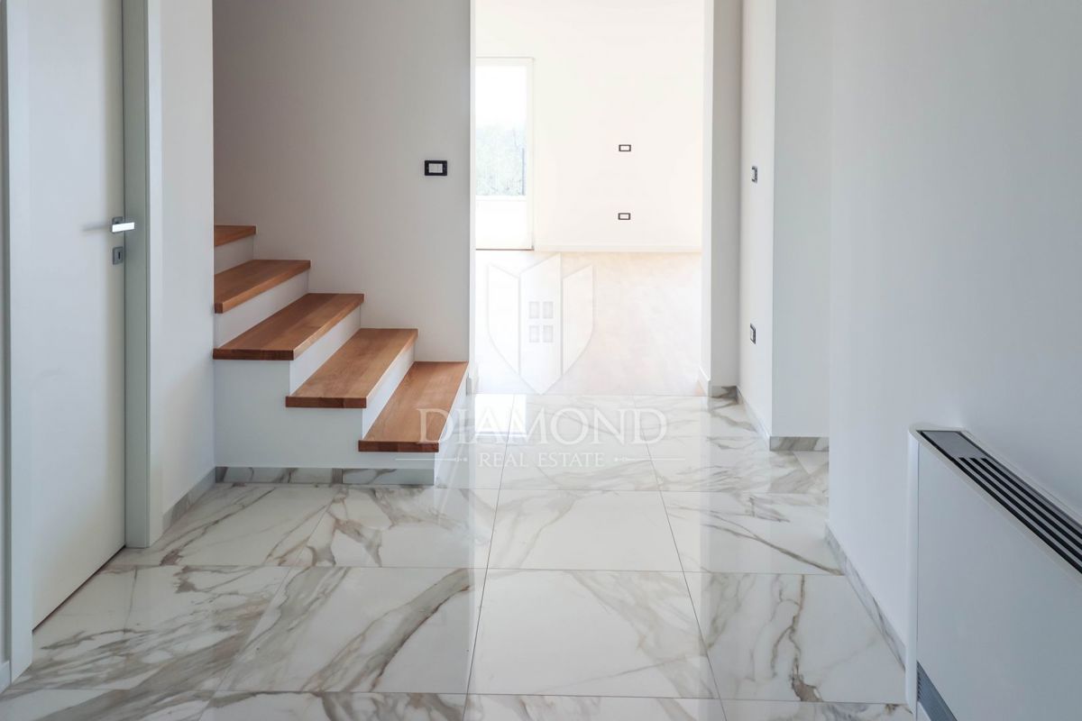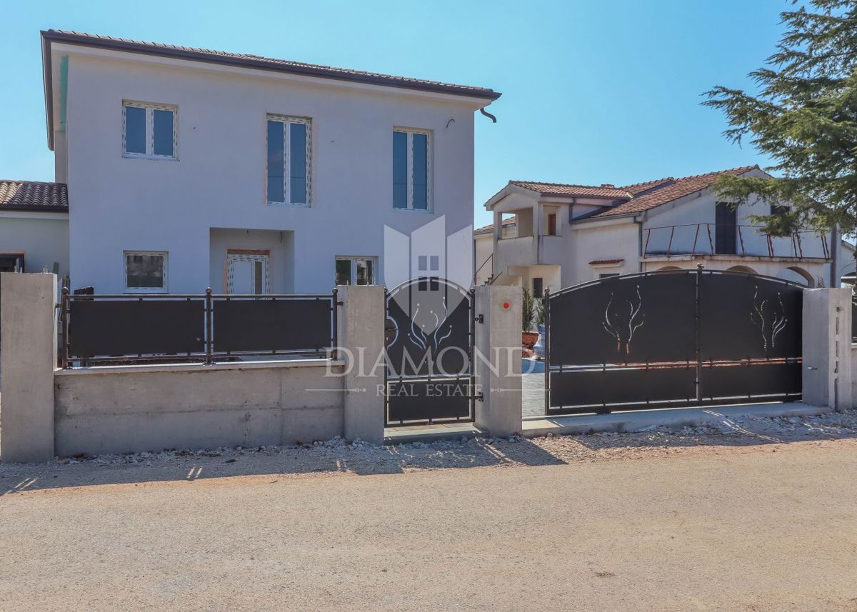 Poreč, okolica, moderna kuća interesantnog stila! U mirnoj ulici predgrađa grada Poreča prodaje se kuća interesantnog stila sa pogledom na more. Kuća se nalazi na odličnoj lokaciji i udaljena je samo 7 km od centra Poreča i njegovih plaža plaža. U prizem