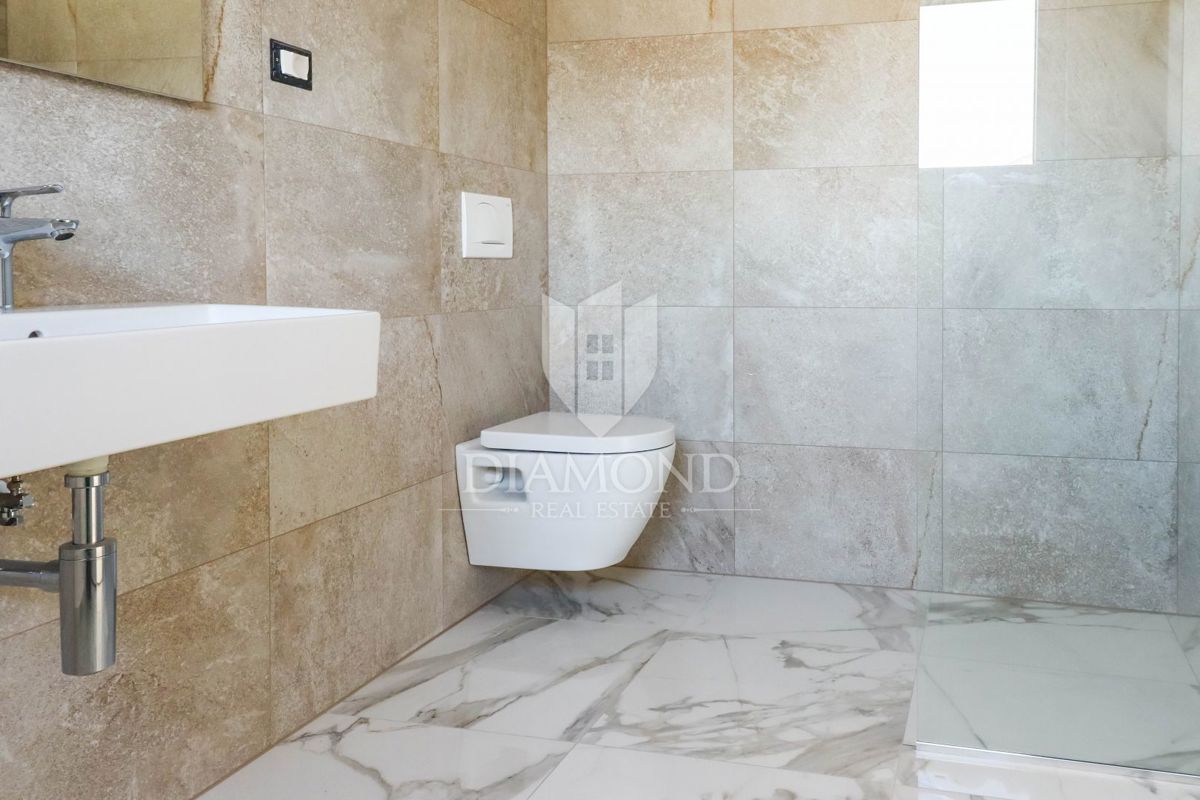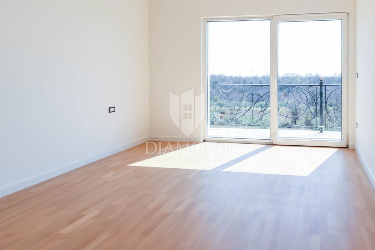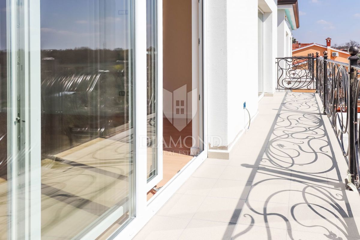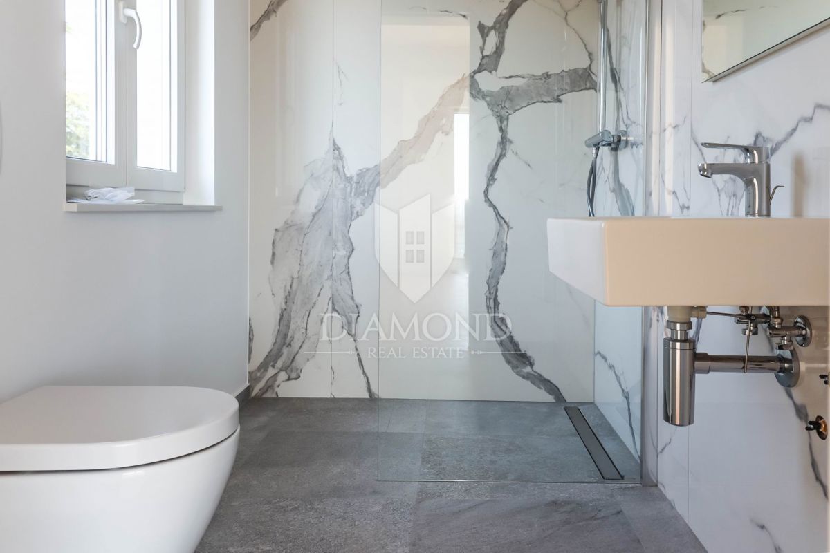 Poreč, okolica, moderna kuća interesantnog stila! U mirnoj ulici predgrađa grada Poreča prodaje se kuća interesantnog stila sa pogledom na more. Kuća se nalazi na odličnoj lokaciji i udaljena je samo 7 km od centra Poreča i njegovih plaža plaža. U prizem