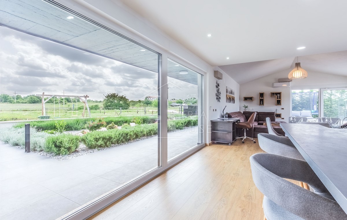 Istra, Poreč, okolica Nedaleko od Poreča prodajemo predivno izgrađenu vilu 2018. godine. Nalazi se na posebno mirnoj lokaciji okružena prirodom i svega par kuća. Na svega par minuta vožnje nalaze sve poznati visokocijenjeni restorani, vinarije te trgovin
