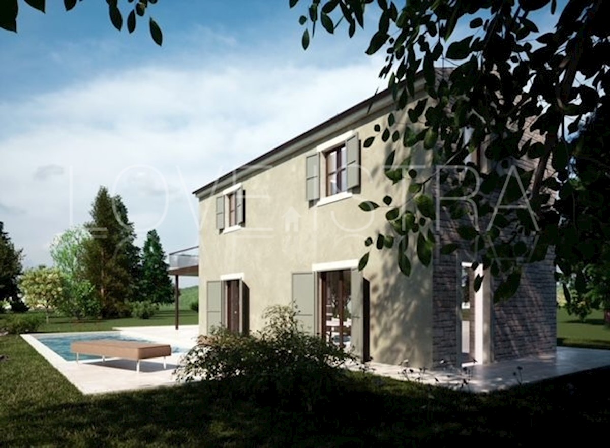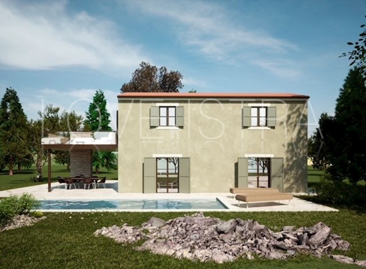 Kuća od 130m2 na 3 etaže, okućnica od 570m2 i bazen od 35m2. Smještena na jednoj od najboljih lokacija u okolici Poreča, mjestu udaljenom 3 km do prvog većeg gradića u kojem su svi sadržaji potrebni za ugodan život ( trgovine, restorani, škola, bolnica.