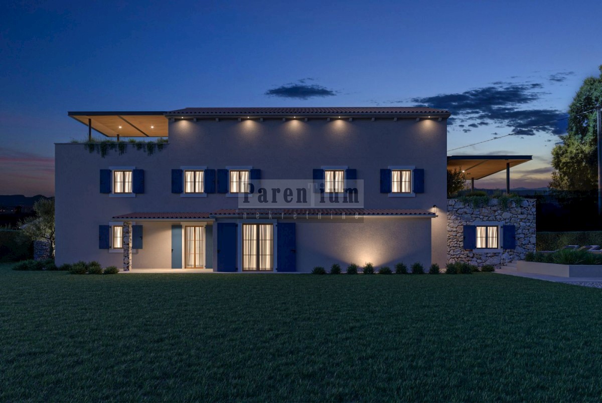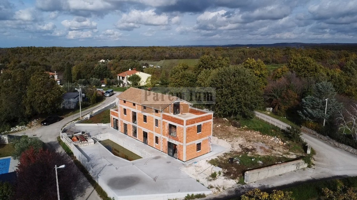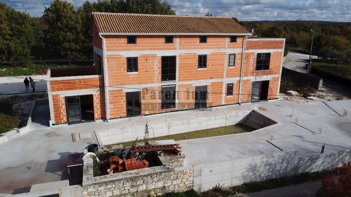 Poreč, okolica u mirnom mjestu, prodaje se vila sa bazenom u izgradnji. Ukupna površina kuće je 320m2, sastoji se od prizemlja, prvog kata i potkrovlja. U prizemlju kuće nalazi se ulazni predprostor, garderoba, tehnička soba, gostinjski wc, kuhinja, blag