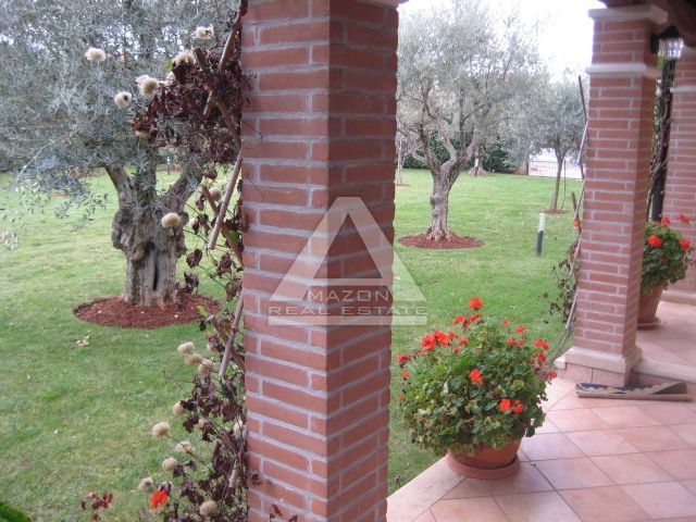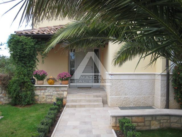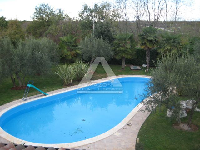 Poreč - na prodaju prekrasna villa sa bazenom! Kuća ima 450 m2, sastoji se od vinoteke u podrumu te dodatne prostorije kao vešeraj, wc, soba predviđena za fitness i saunu, u prizemlju su kuhinja, dnevni boravak, 2 kupaone, 2 spavaće sobe, terase te izlaz