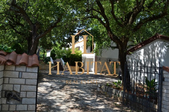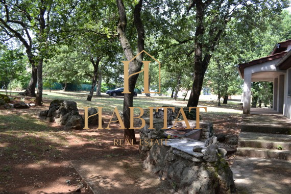 Kuća samostojeća od 350 m2 potpuno opremljenog stambenog prostora sa pripadajućom parcelom/terenom od 3.500 m2. Parcela je potpuno urbanizirana i spremna za gradnju, ishodovana je građevinska dozvola kao i projektno rješenje za gradnju više elitnih objeka