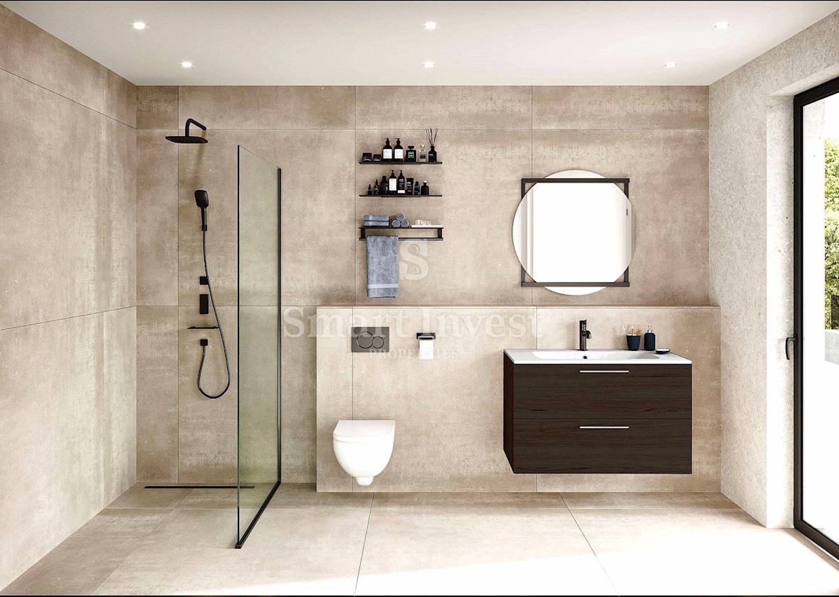 ISTRA - POREČ, Na prodaju je luksuzna vila s bazenom, wellnesom, raskošnom krovnom terasom te prekrasnim pogledom na more na odličnoj lokaciji svega 5 minuta vožnje udaljenoj od mora i plaža. Predviđeni rok završetka radova u 05/2023. RASPORED I OPREMA