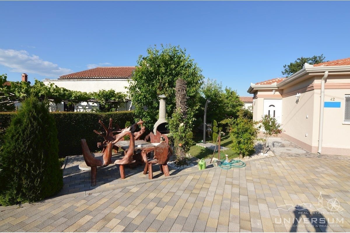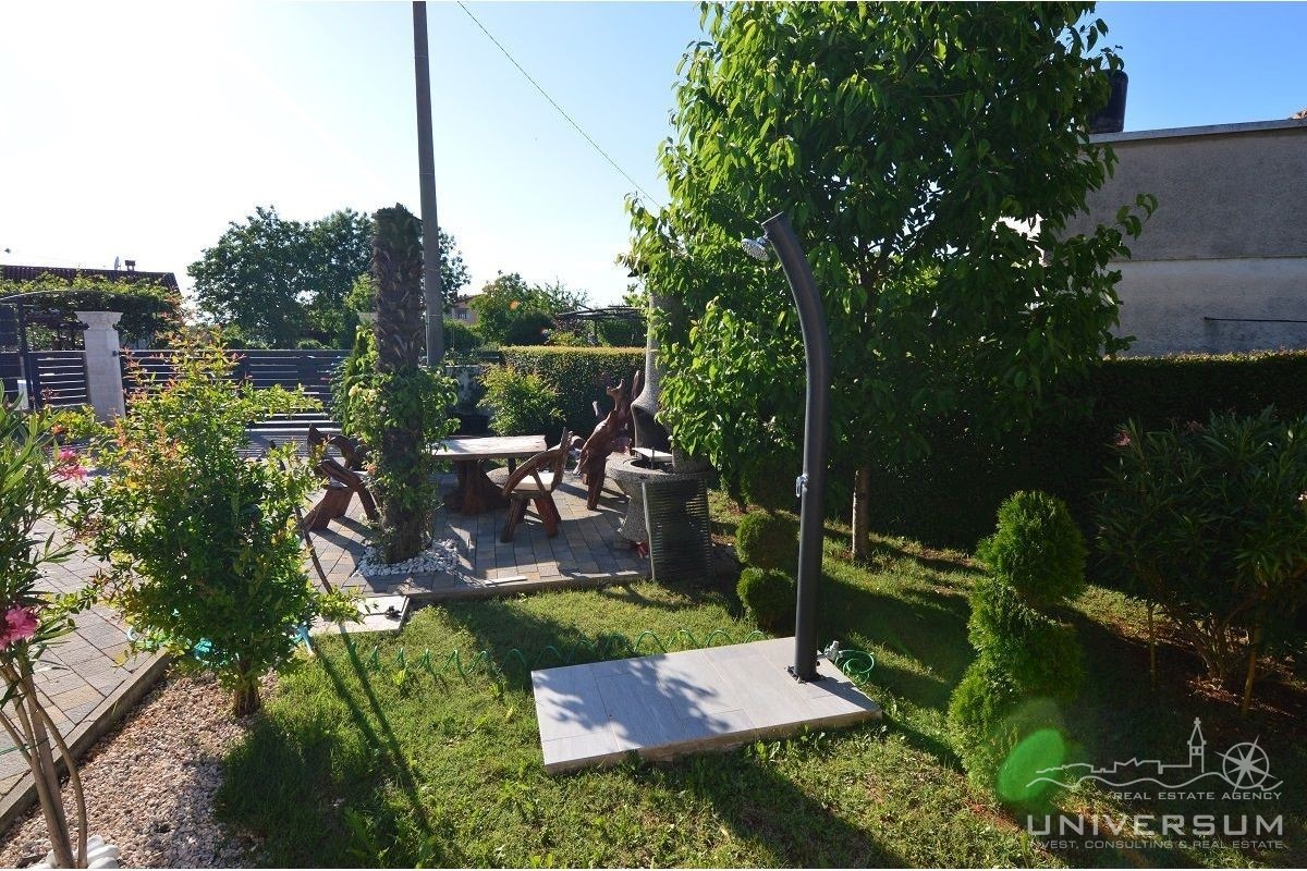 Prodajem šarmantnu kuću u okolici Poreč Prodaje se šarmantna kuća u okolici Poreča. Površina kuće je 103 m2 te je opremljena sa opremom visoke kvalitete (kuhinja marke JOOP). Sastoji se od predsoblja, kuhinje s blagovaonicom, dnevnog boravka, kupatila,