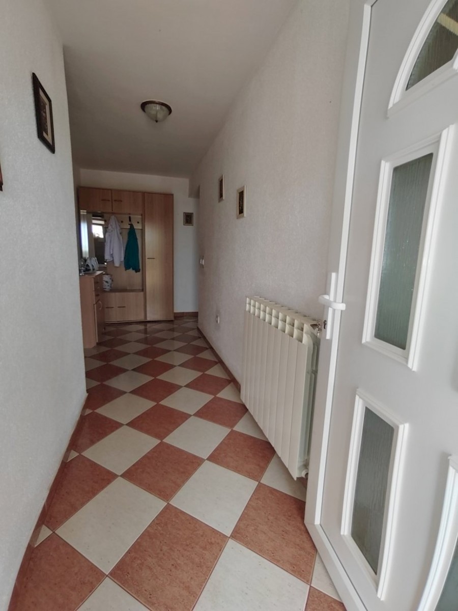 Ca. 14 km od Poreča i mora, u okolici Višnjana- Prizemnica sa velikom okućnicom na 5100 m2 , od čega 2406 m2 urbaniziranog + 2700 m2 poljoprivrednog. Sastoji se od dvije terase, hodnika, 3 spavaće, kupaone , toalet, kuhinja dnevni boravak i blagovaona. Gr