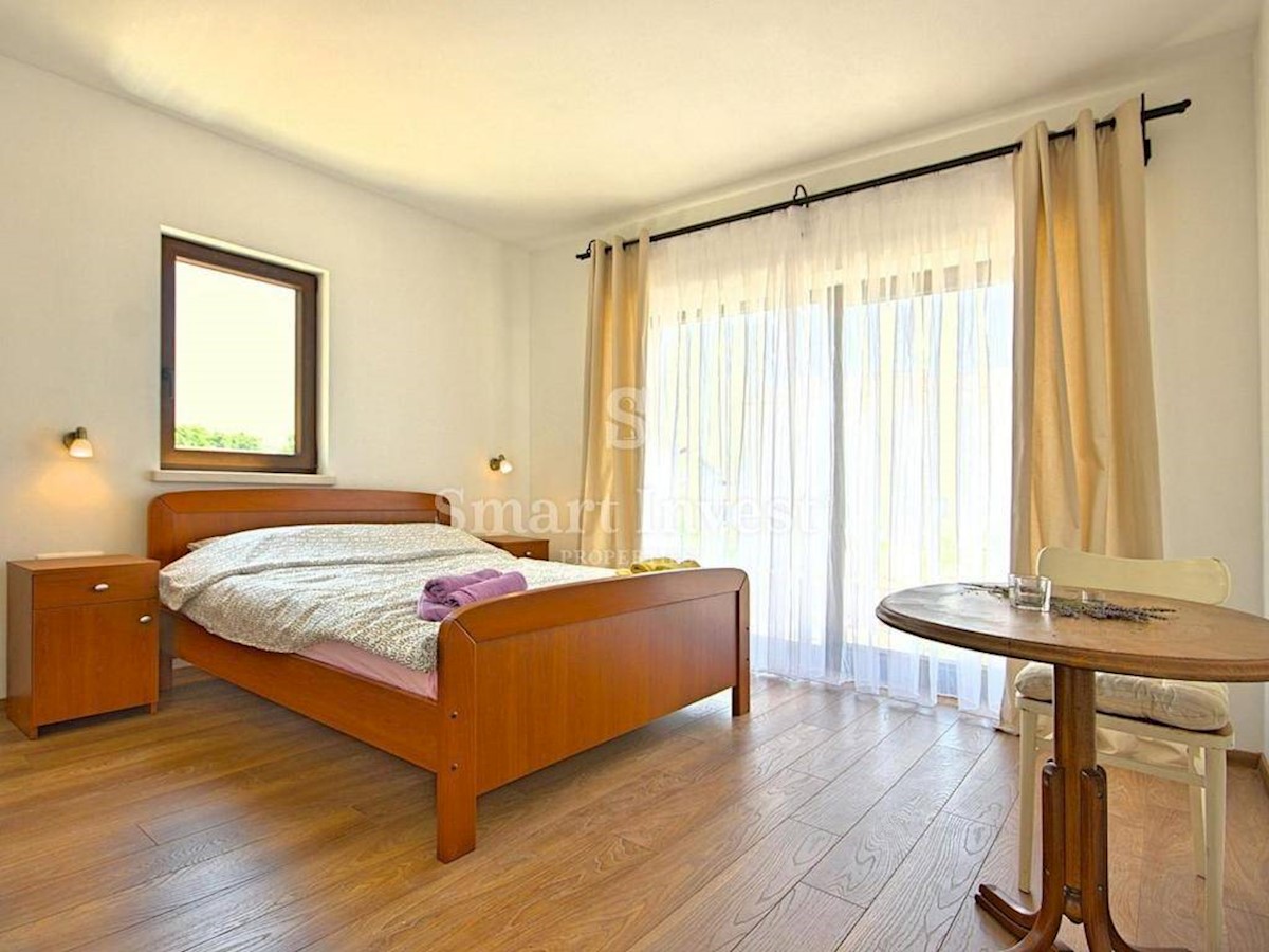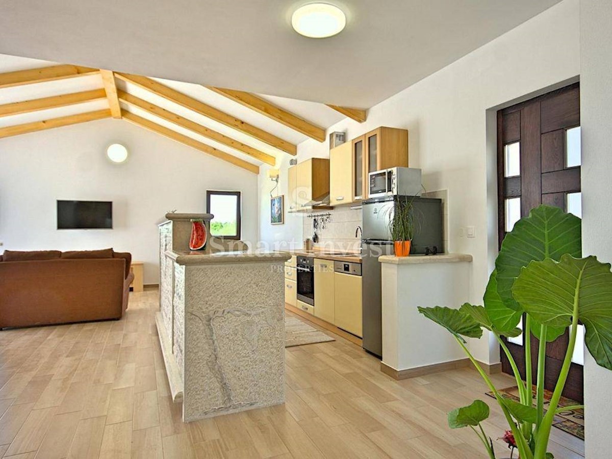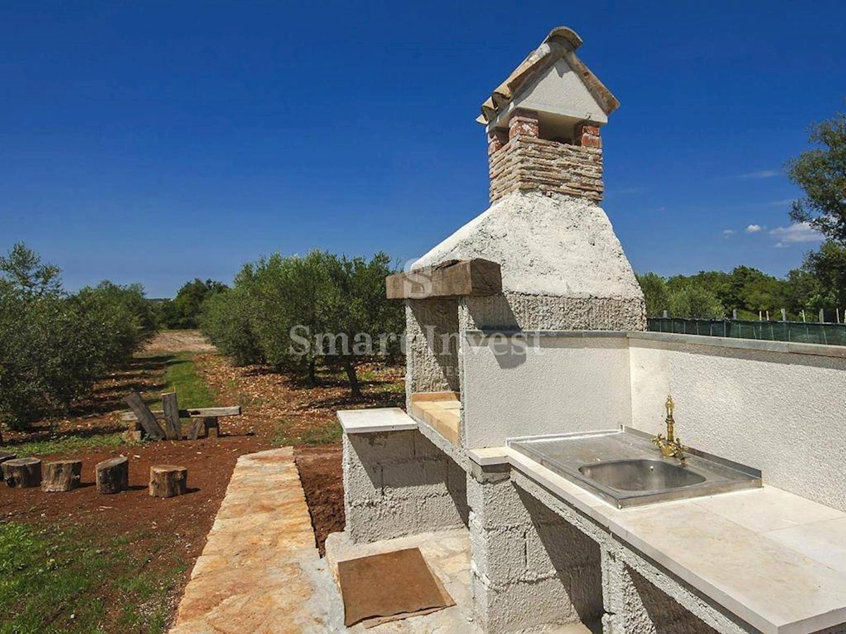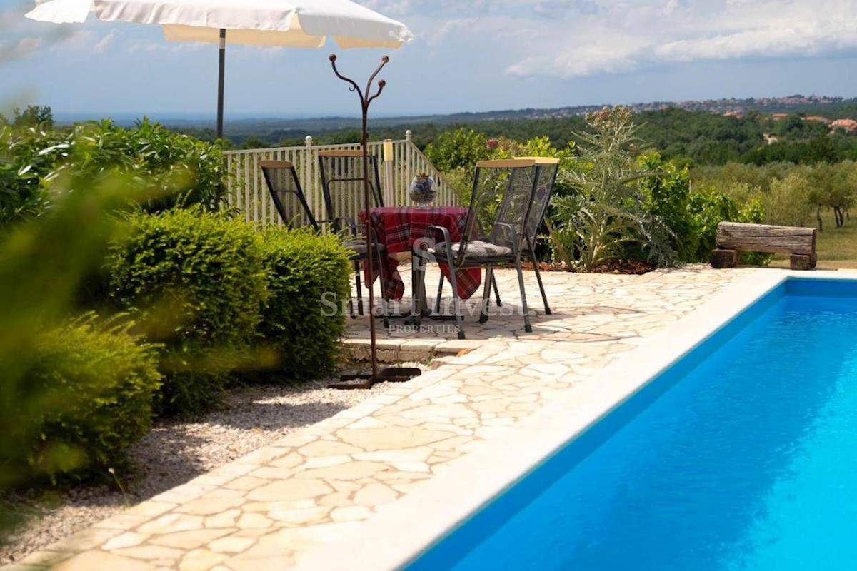 POREČ OKOLICA Kuća za odmor za 6 osoba na fantastičnoj lokaciji na rubu sela s panoramskim pogledom na more! Samo 13 kilometara od Poreča i njegovih plaža te raznovrsnih sadržaja. Ova šarmantna istarska vila smještena je u bajkovitom krajoliku u zaleđu